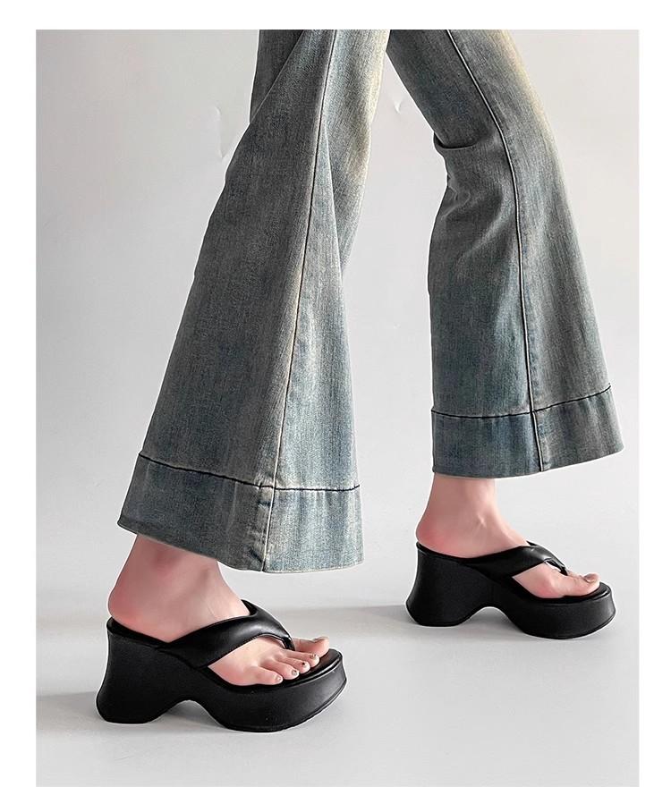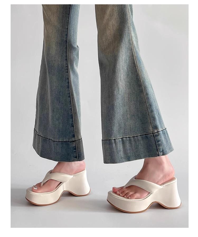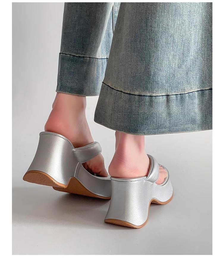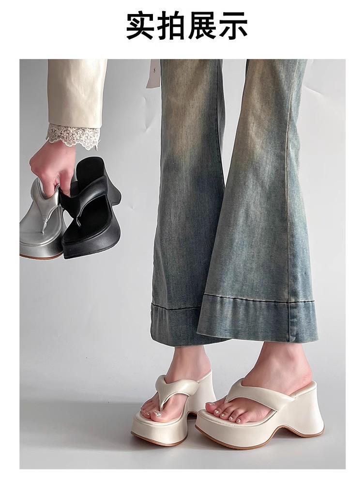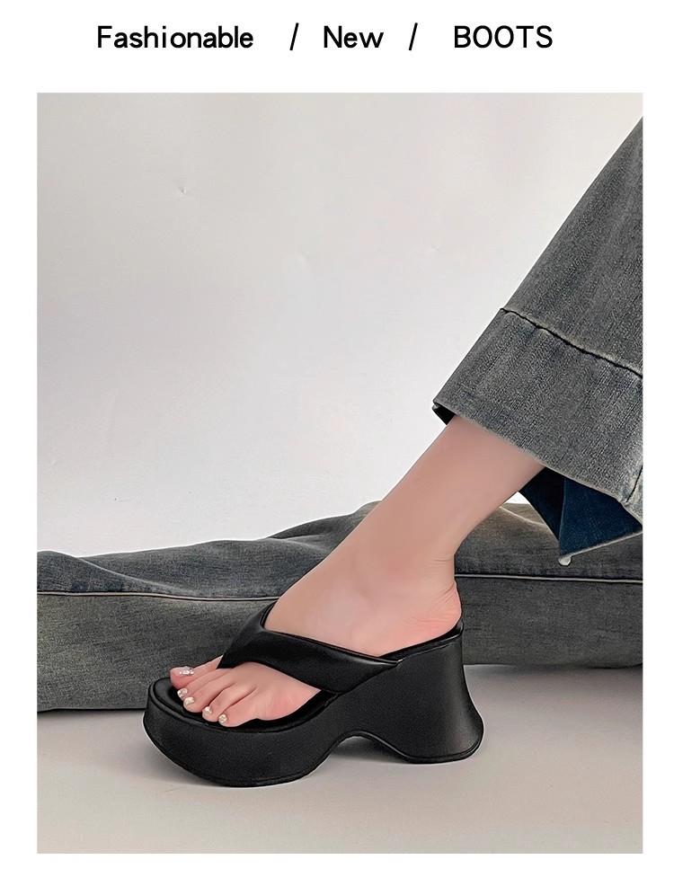 Primavera y Verano Nuevas Pantuflas de Moda Simple Elegante Estilo Dulce Punta Redonda Plataforma Suela Chanclas de Mujer Cool para Exterior