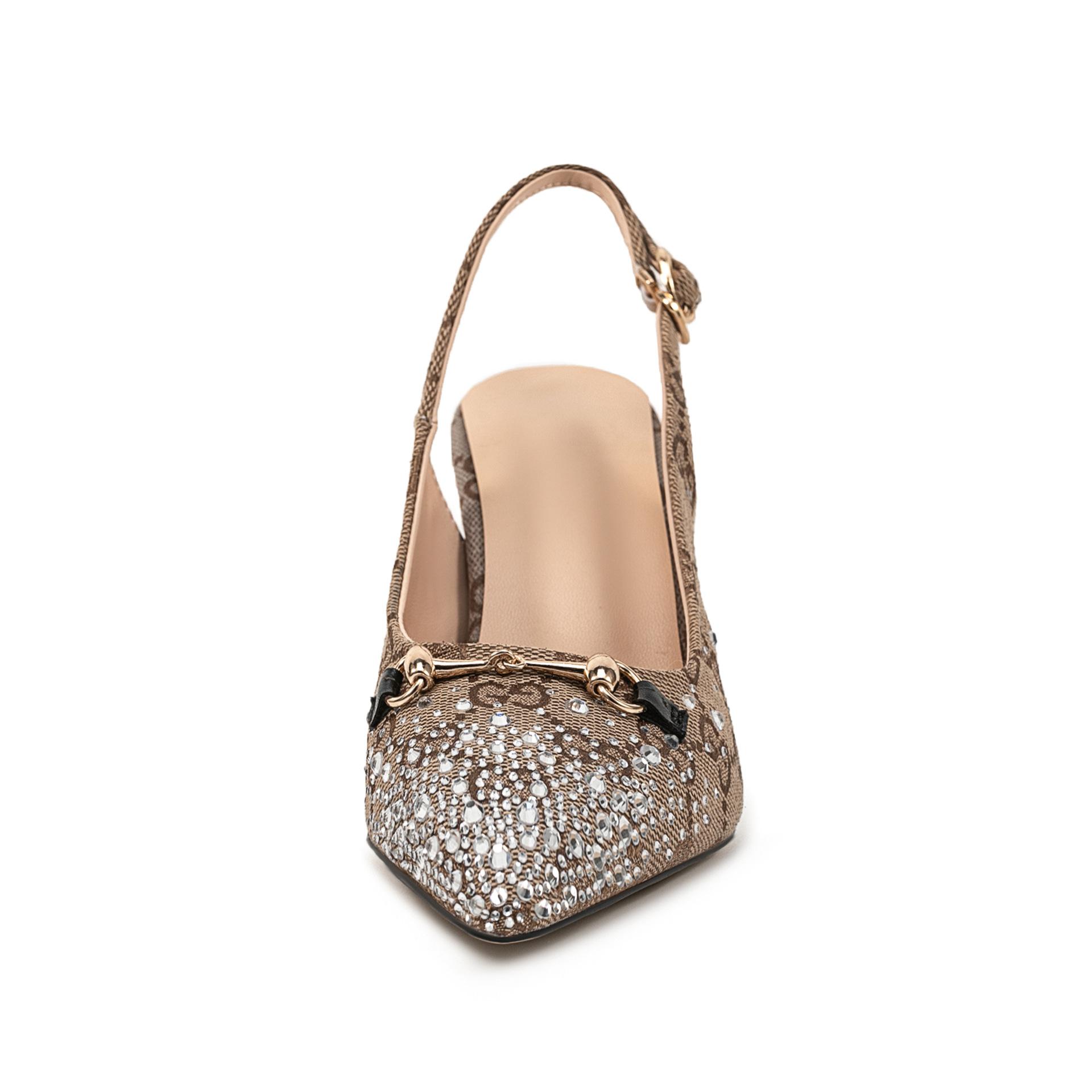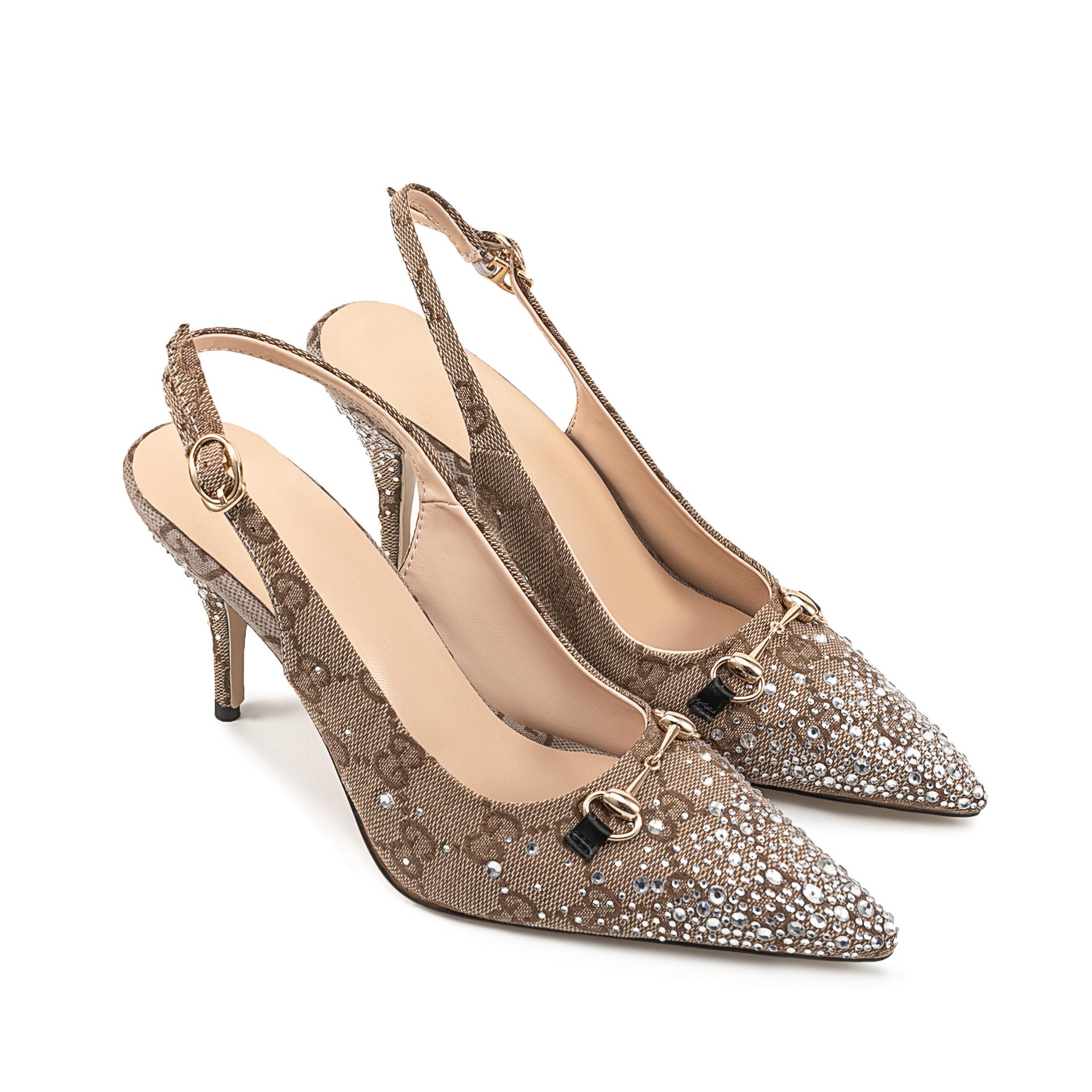 2025 Exportación Estilo Europeo y Americano Punta Afilada Tacones Altos de Aguja Sandalias de Moda Transfronteriza con Tiras de Pedrería para Mujer
