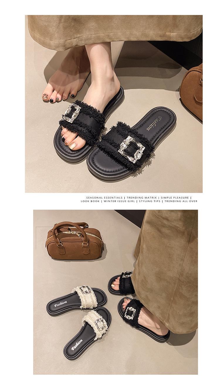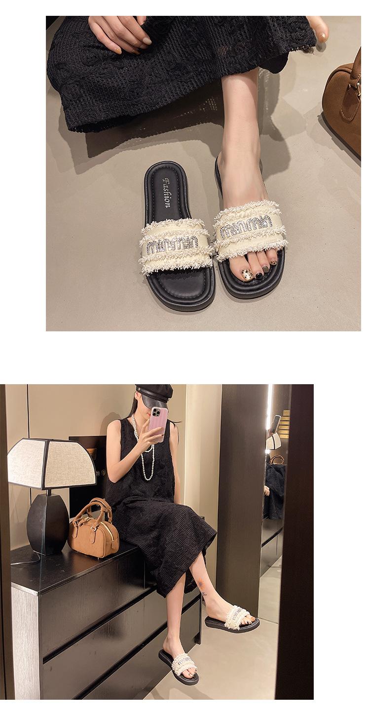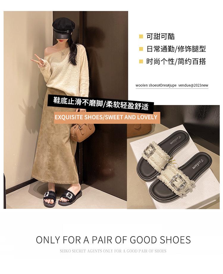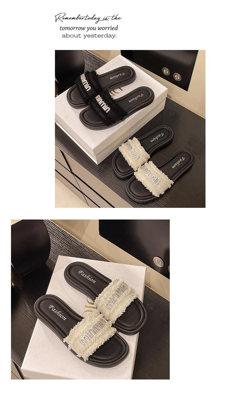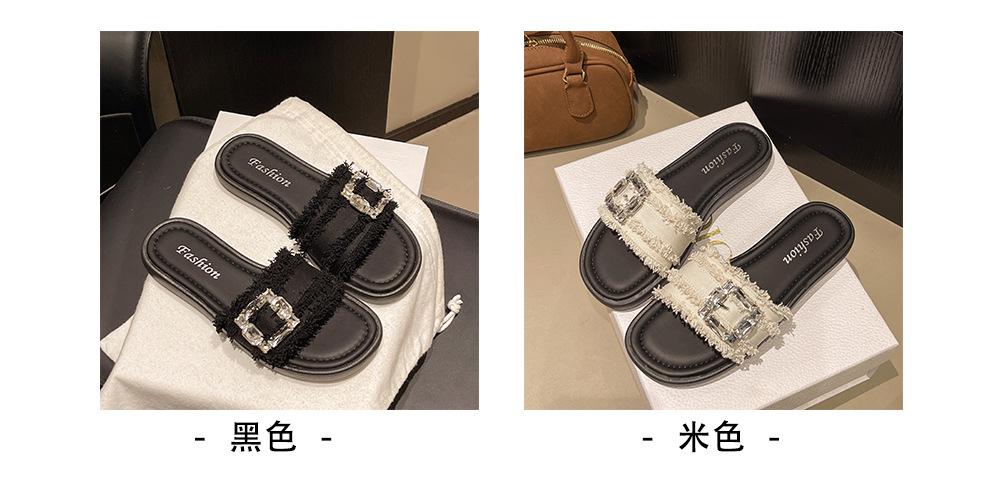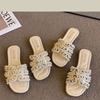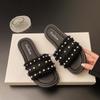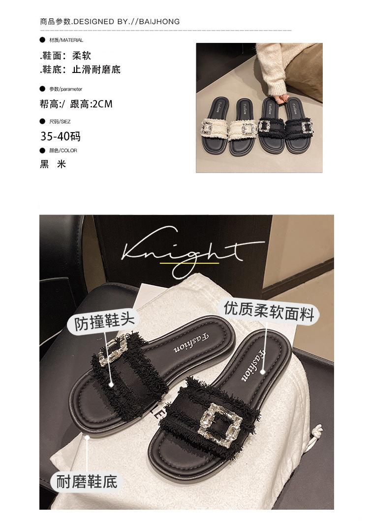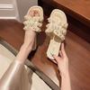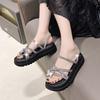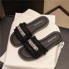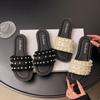 Sandalias de playa francesas de suela plana, venta al por mayor, una palabra nueva, zapatillas rojas de red, ropa de verano para mujer, estilo de diamantes de imitación, moda