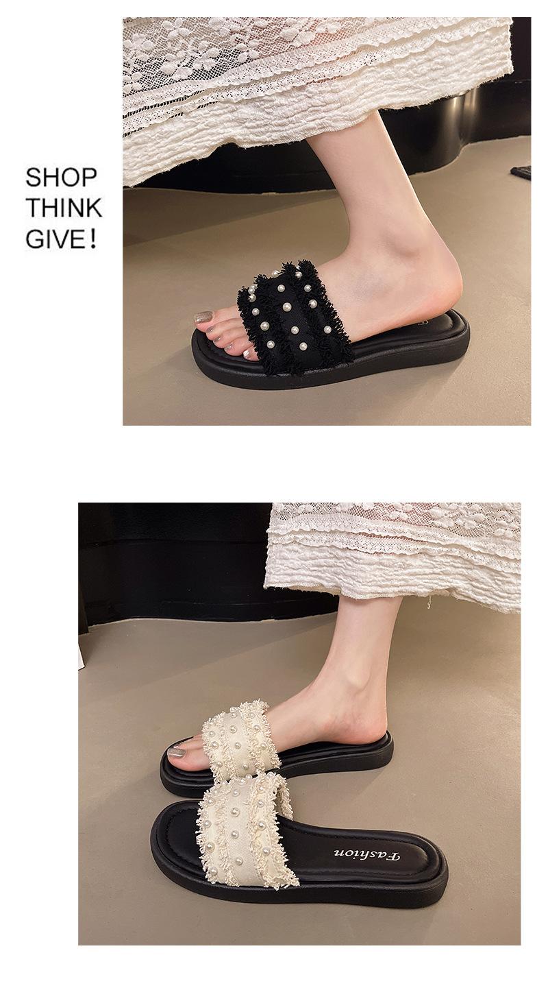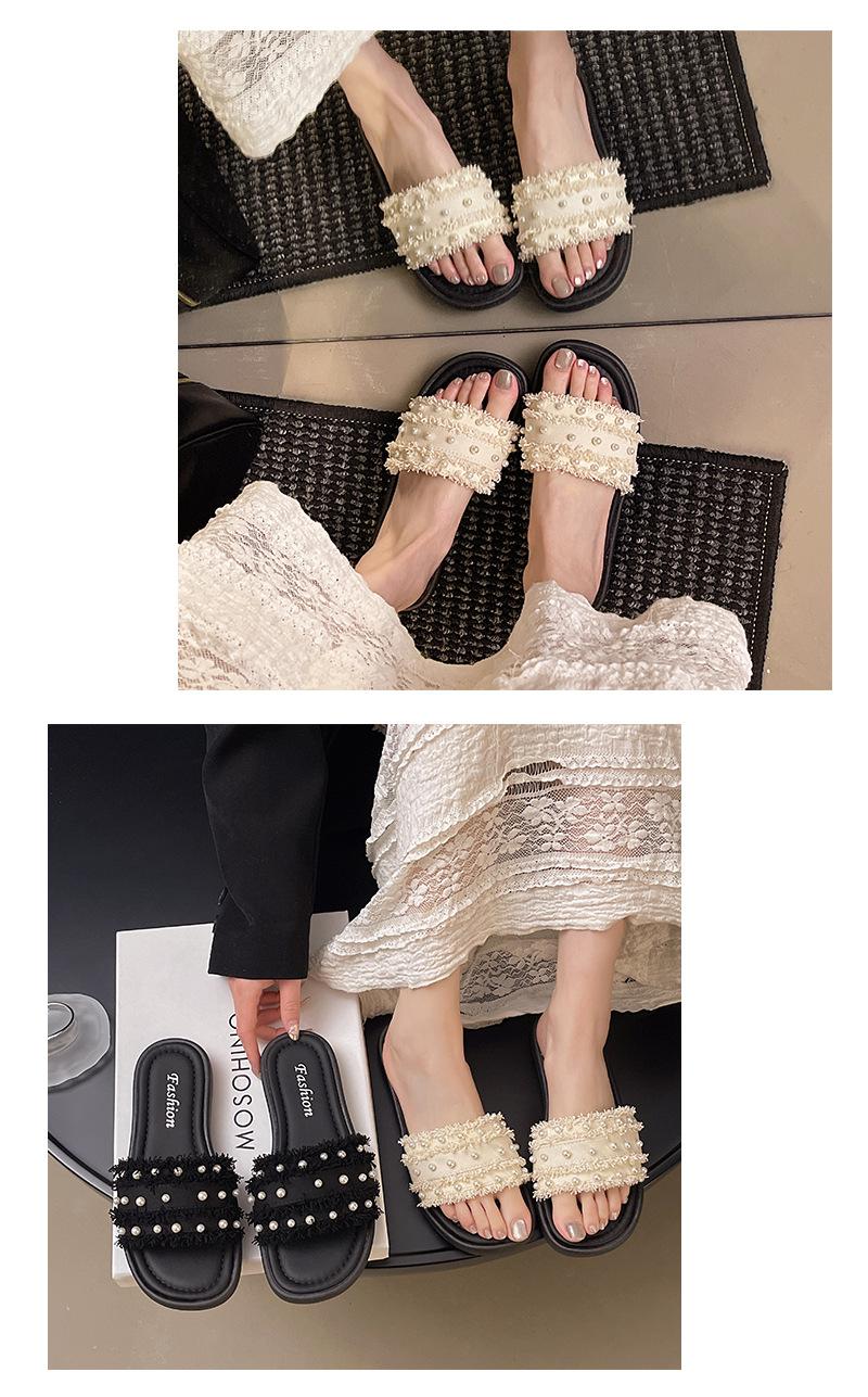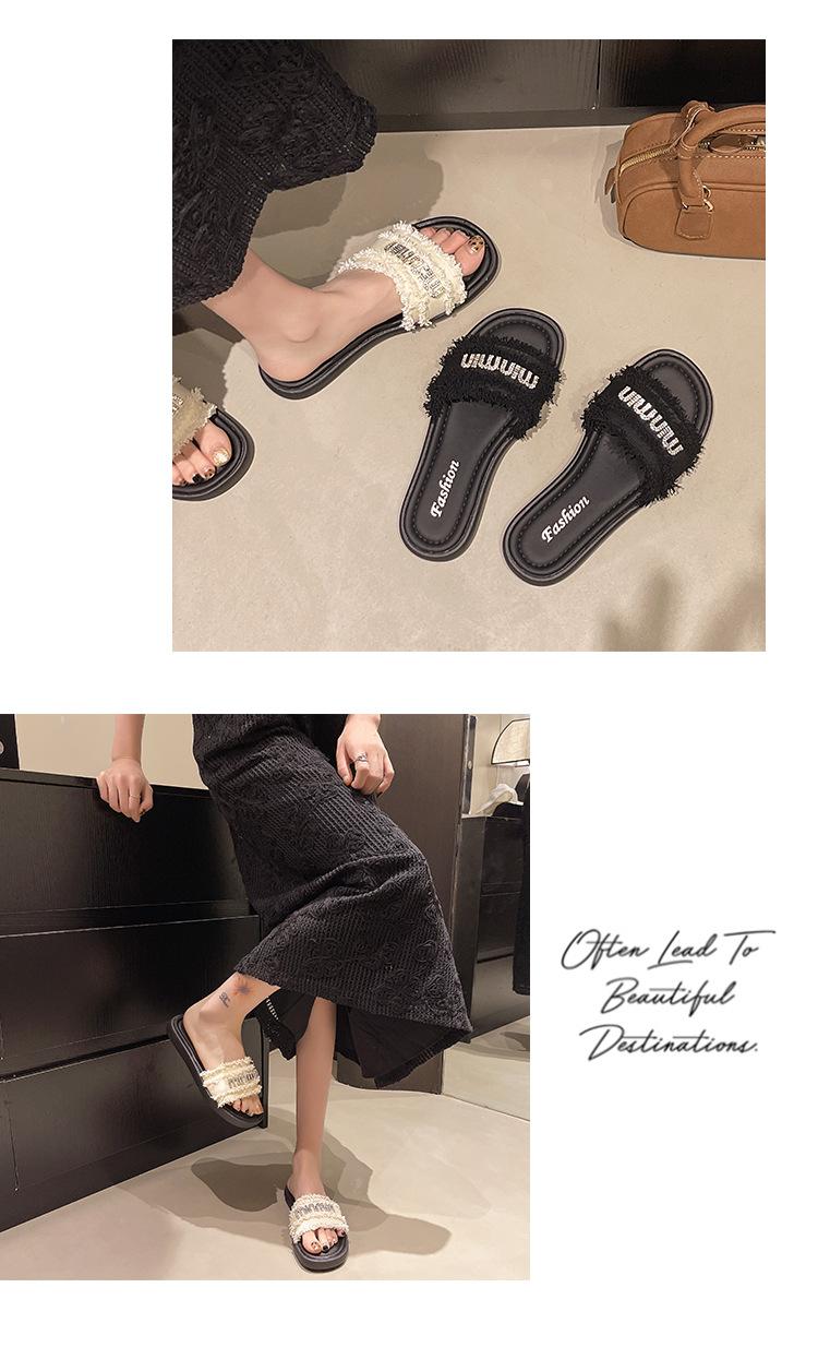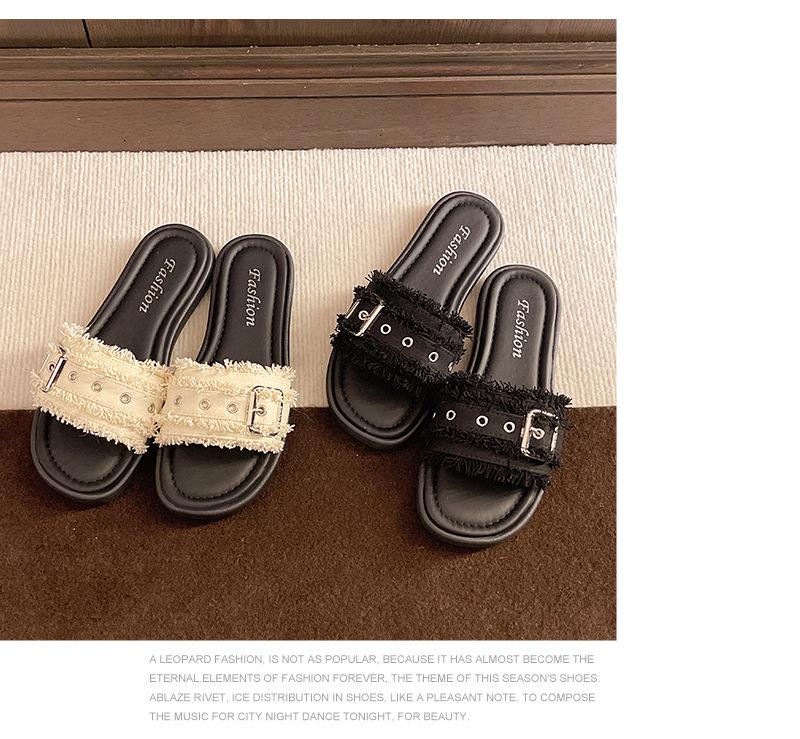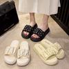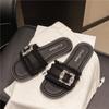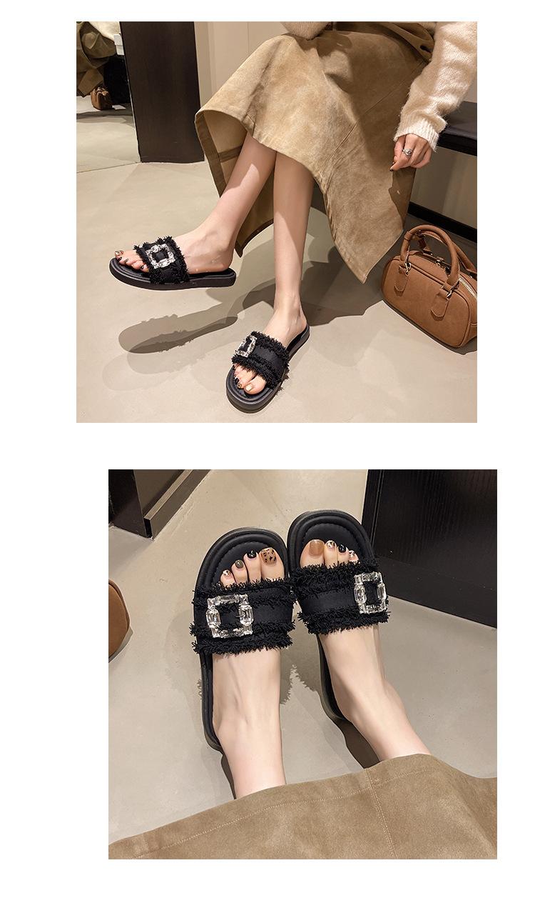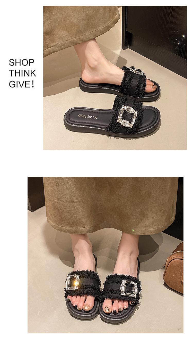 Sandalias de playa francesas de suela plana, venta al por mayor, una palabra nueva, zapatillas rojas de red, ropa de verano para mujer, estilo de diamantes de imitación, moda