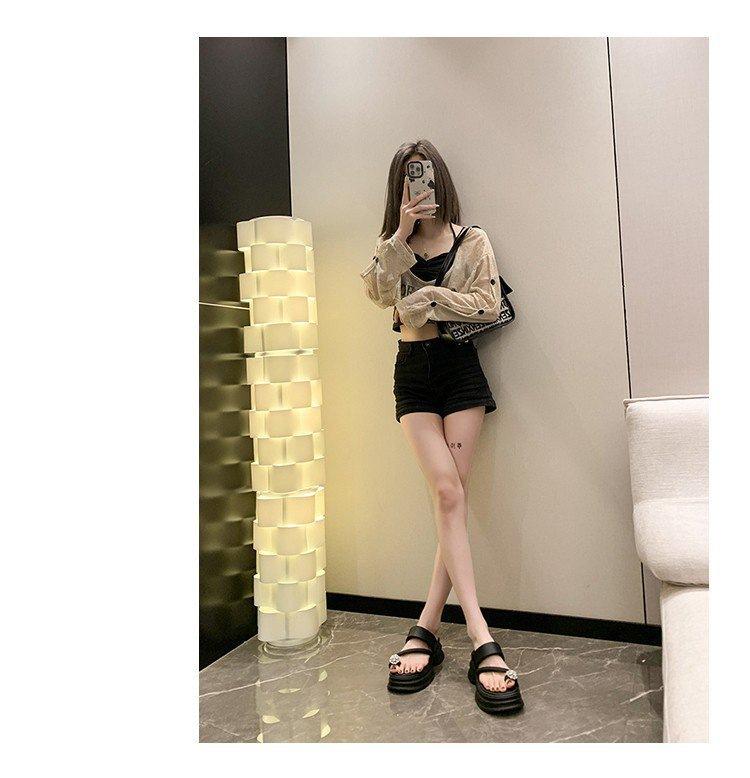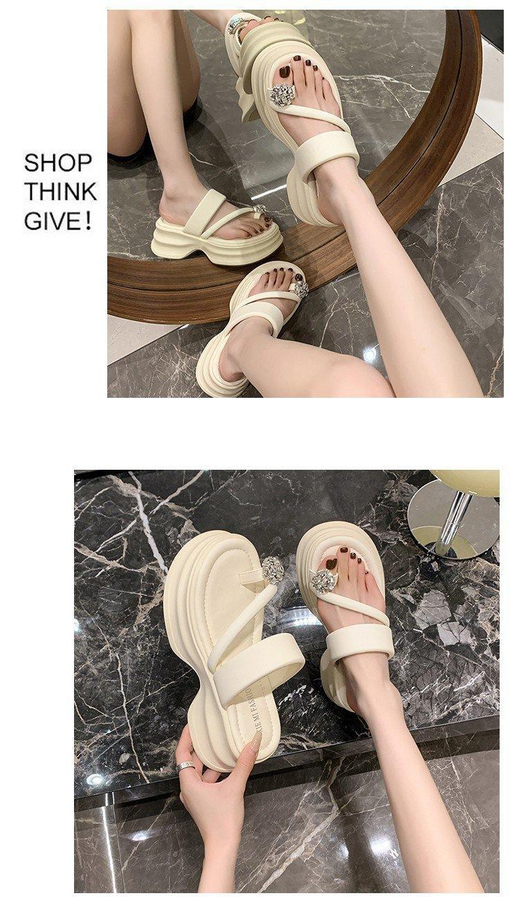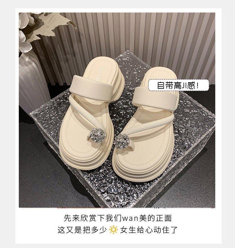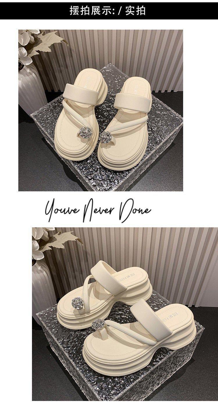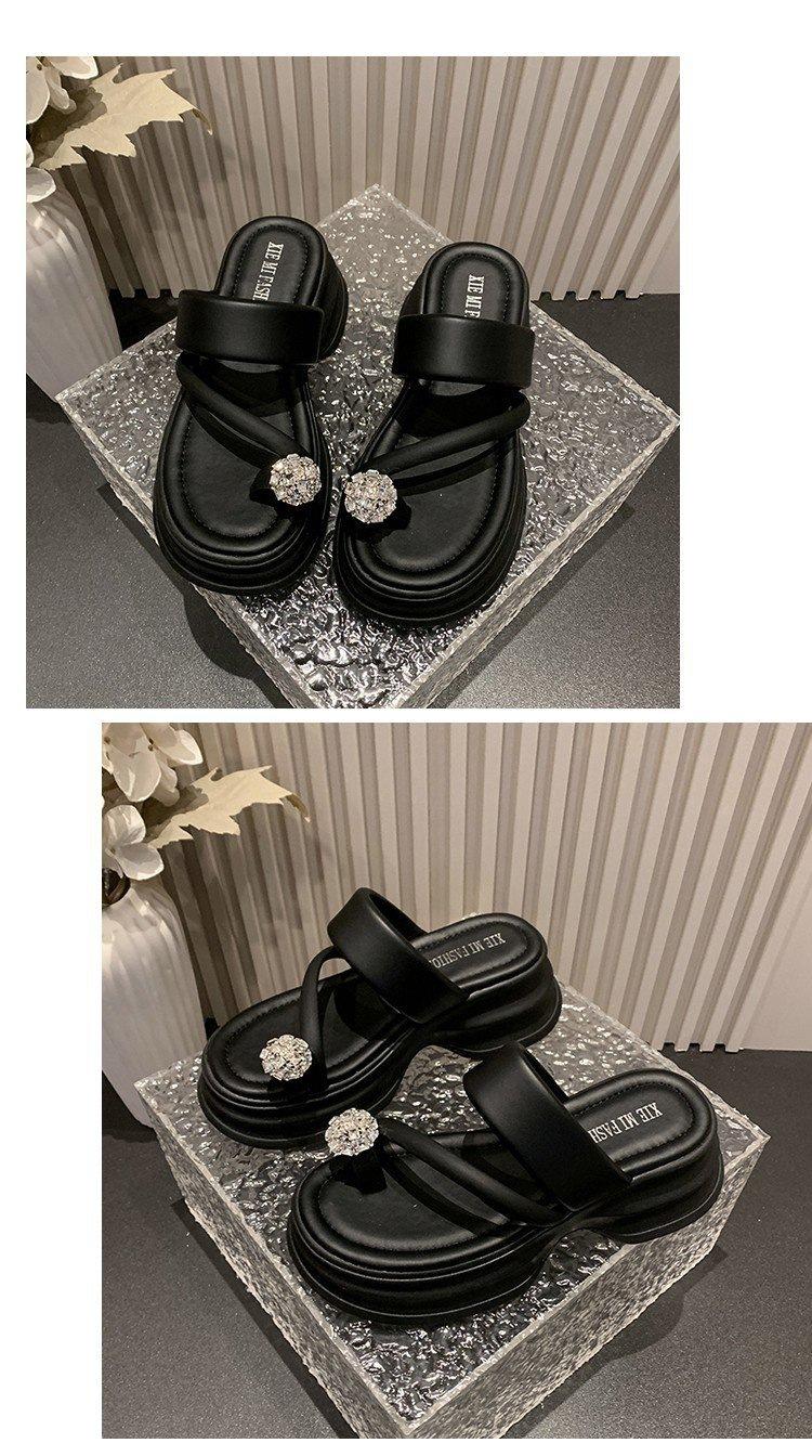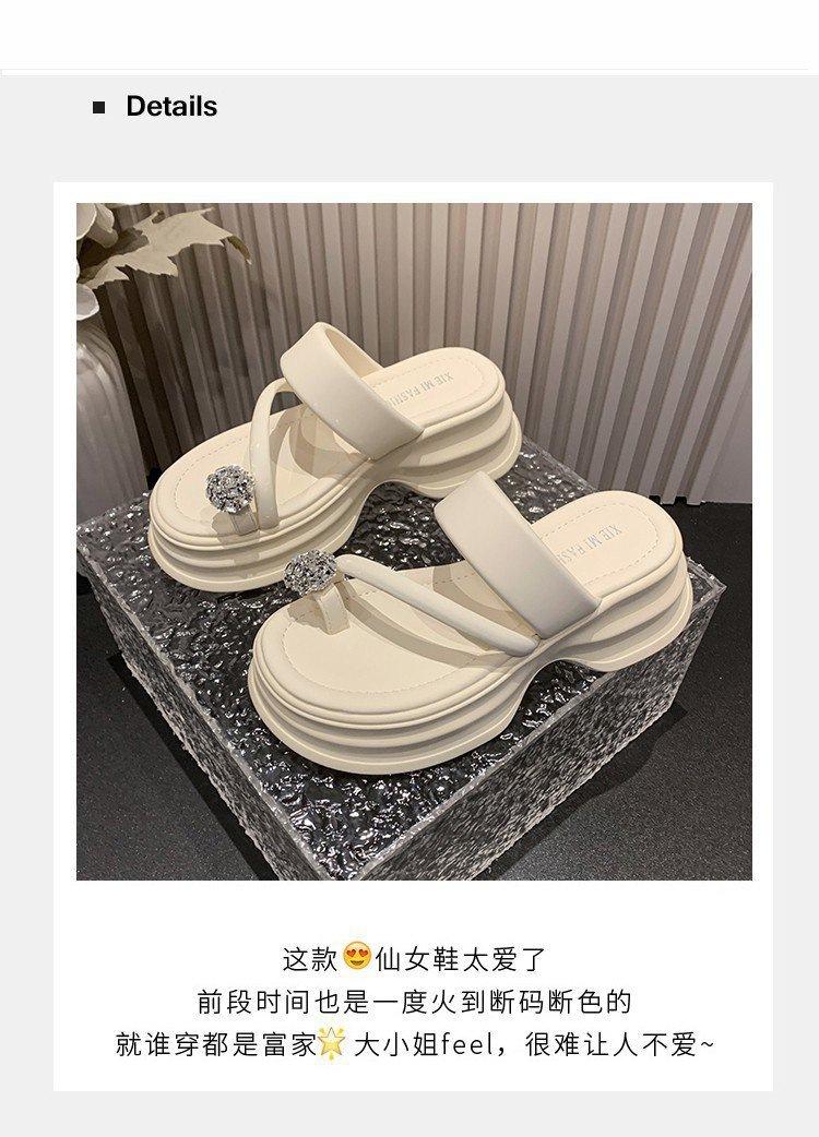 Hermosas Sandalias y Pantuflas de Verano para Mujer 2025 Nuevas con Pedrería en la Puntera, Plataforma Gruesa, Playa Costera, Pantuflas para Mujer