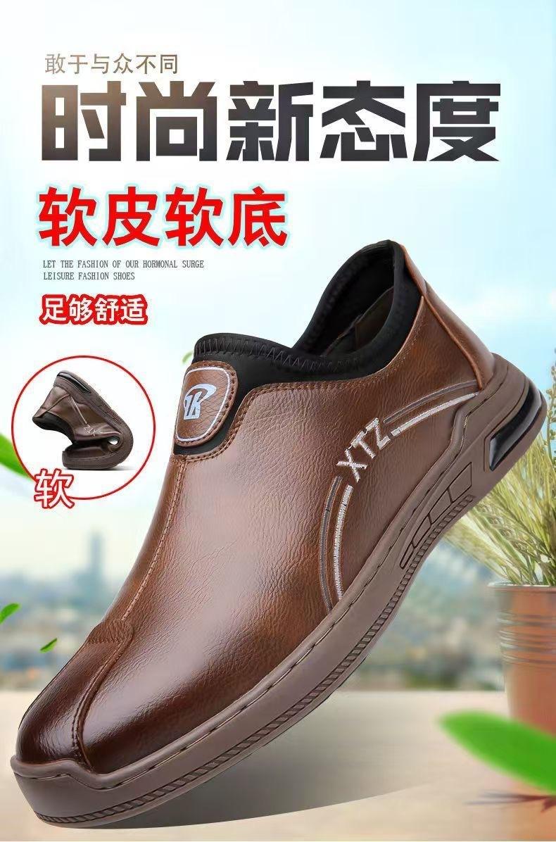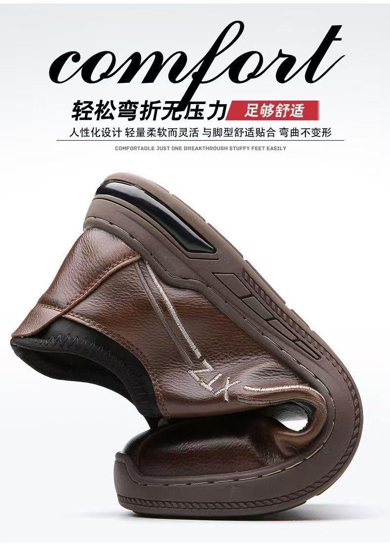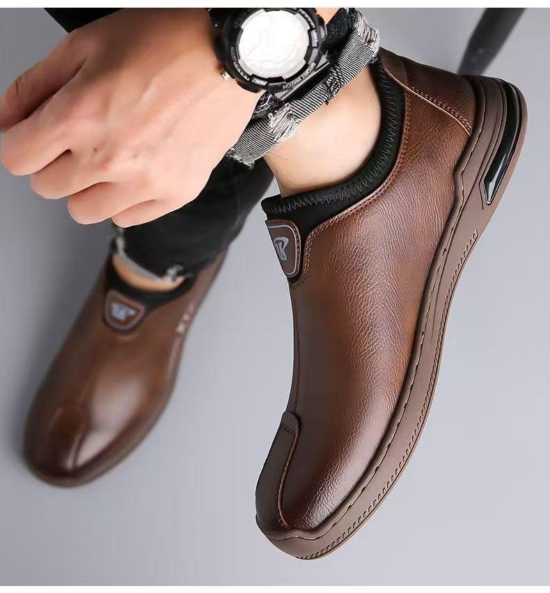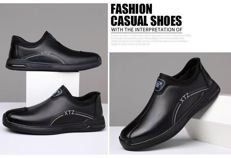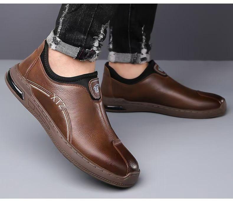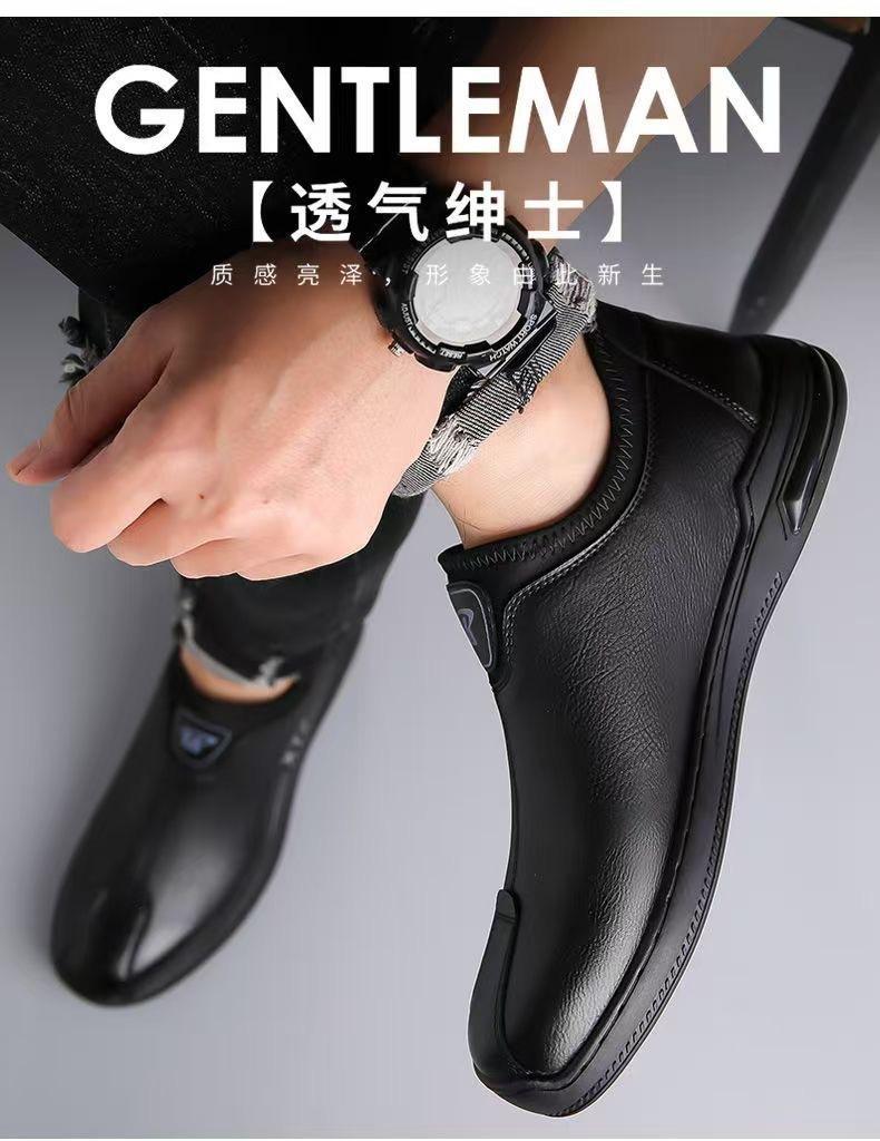 Zapatos de hombre, zapatos casuales de primavera, zapatos de cuero de estilo británico para hombres de negocios, zapatos de suela blanda para personas de mediana edad y mayores, zapatos sin cordones, zapatos de papá