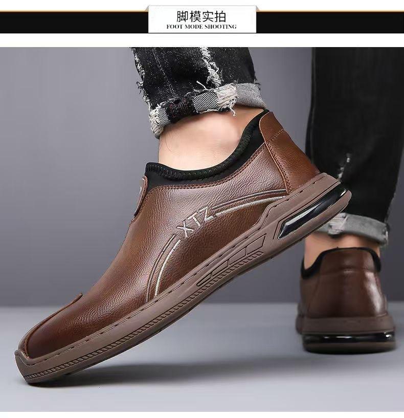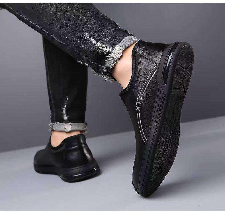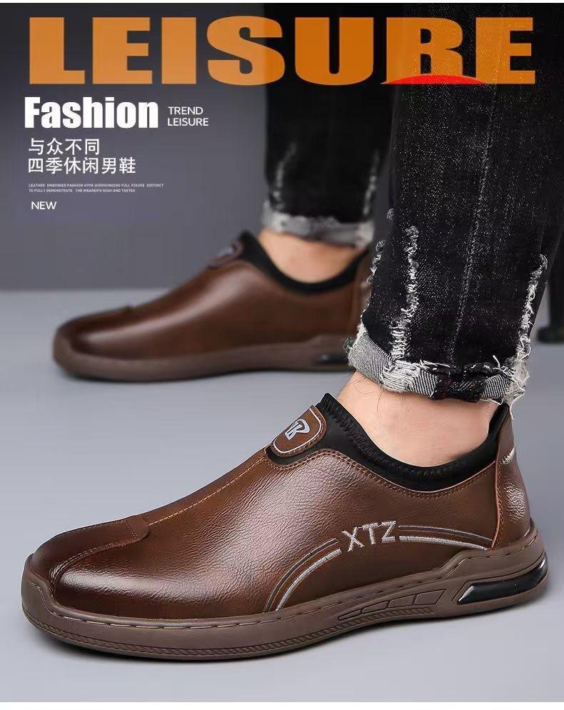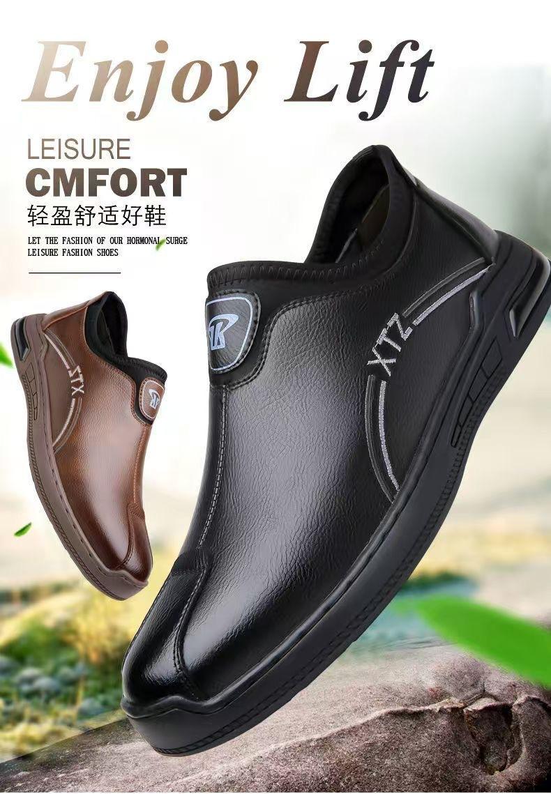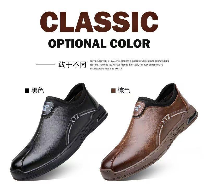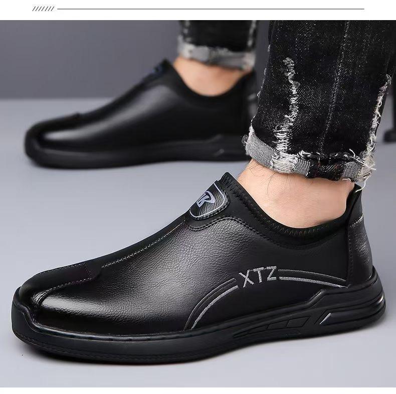 Zapatos de hombre, zapatos casuales de primavera, zapatos de cuero de estilo británico para hombres de negocios, zapatos de suela blanda para personas de mediana edad y mayores, zapatos sin cordones, zapatos de papá