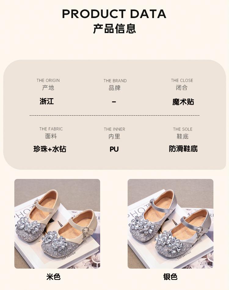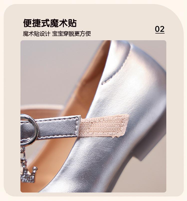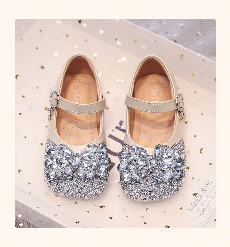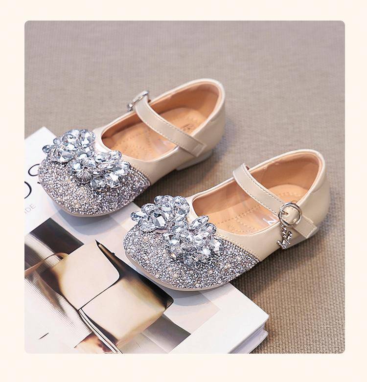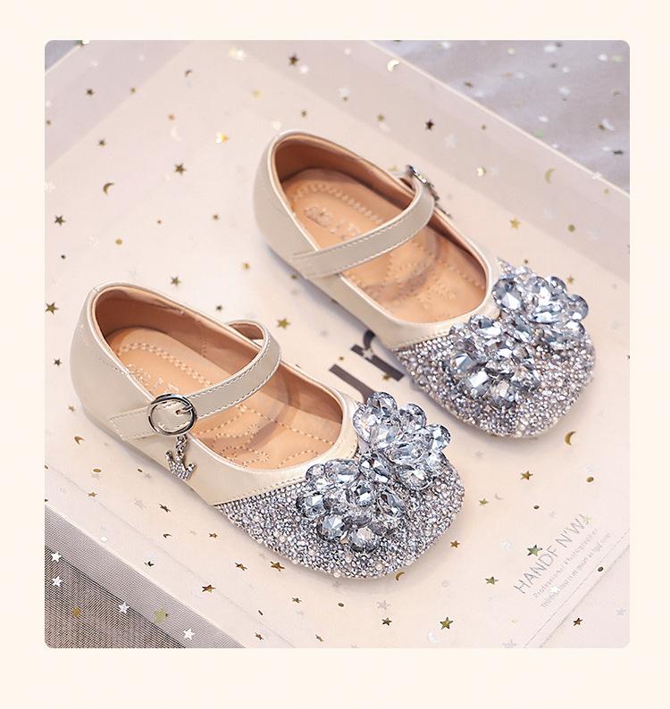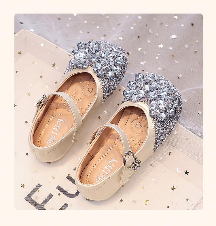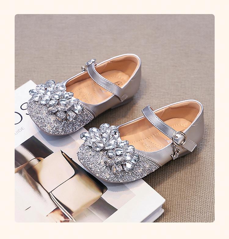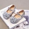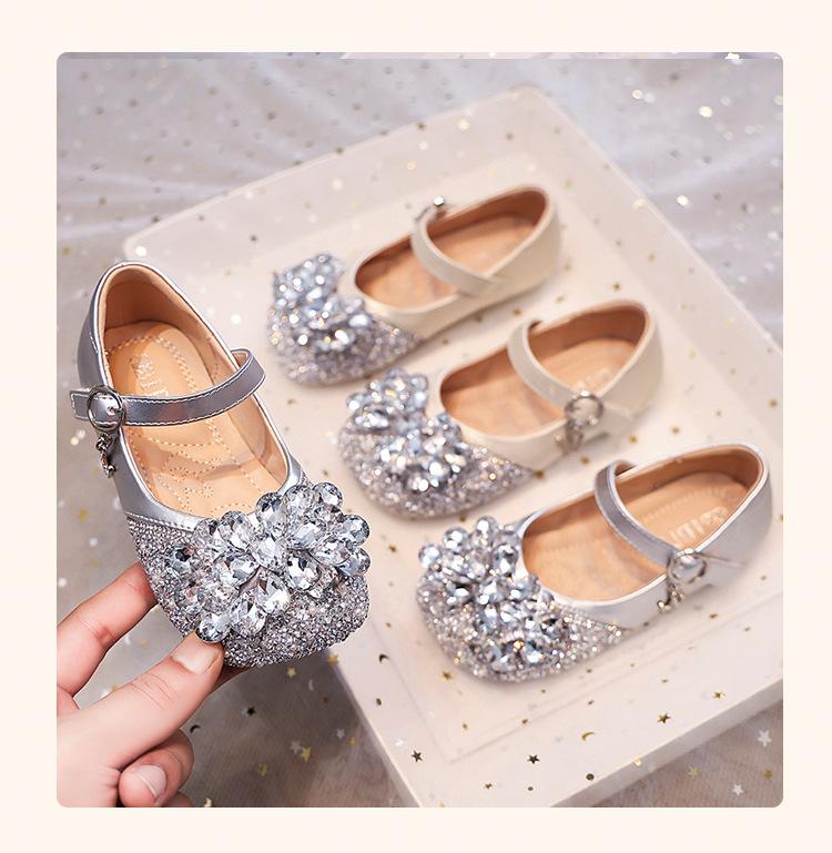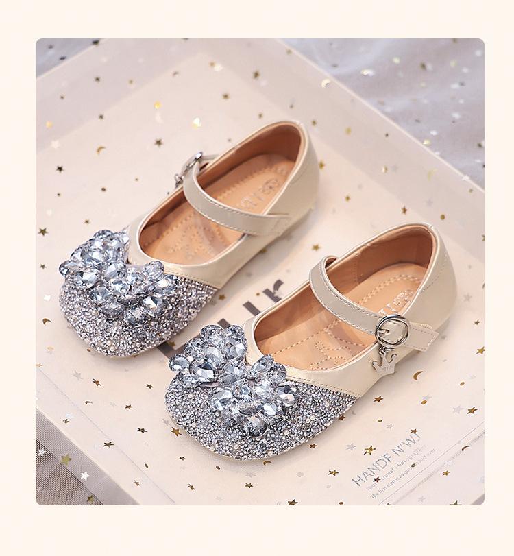 Zapatos de princesa para niñas, zapatos de princesa Elsa para niños, novedad de verano y otoño de 2025, zapatos de suela suave de cuero con cristales plateados.
