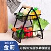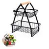 Cesta nórdica de doble capa, portátil, de hierro, para frutas, azul, para sala de estar, cocina, hogar, almacenamiento de verduras, estante de almacenamiento azul