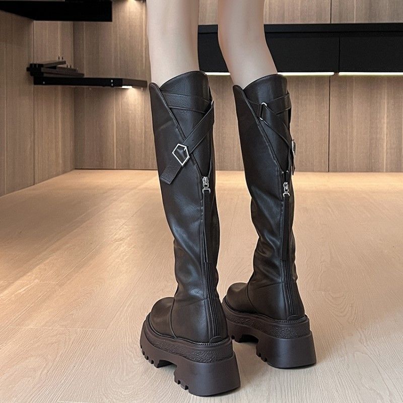 Cremallera trasera pero botas de caballero hasta la rodilla 2024 otoño e invierno nuevo fondo grueso pequeño botas altas elásticas para niños