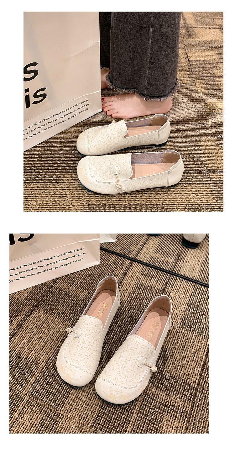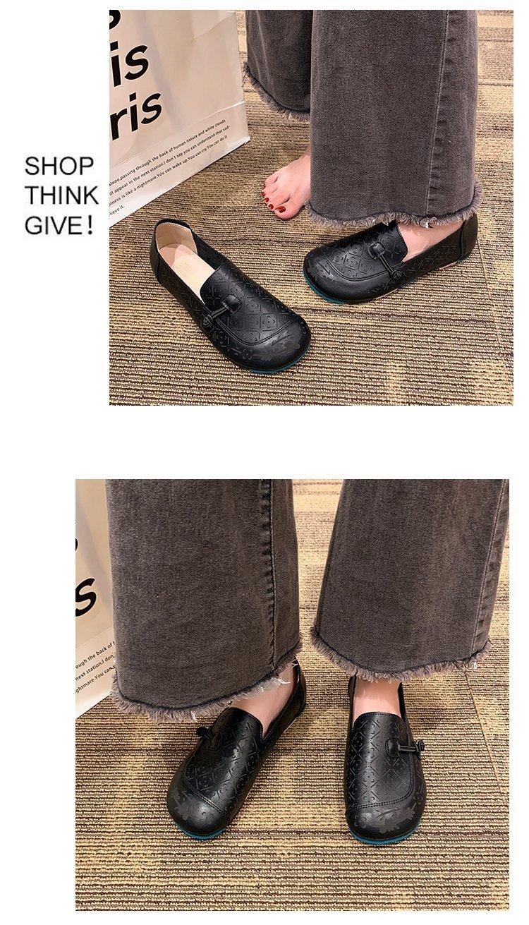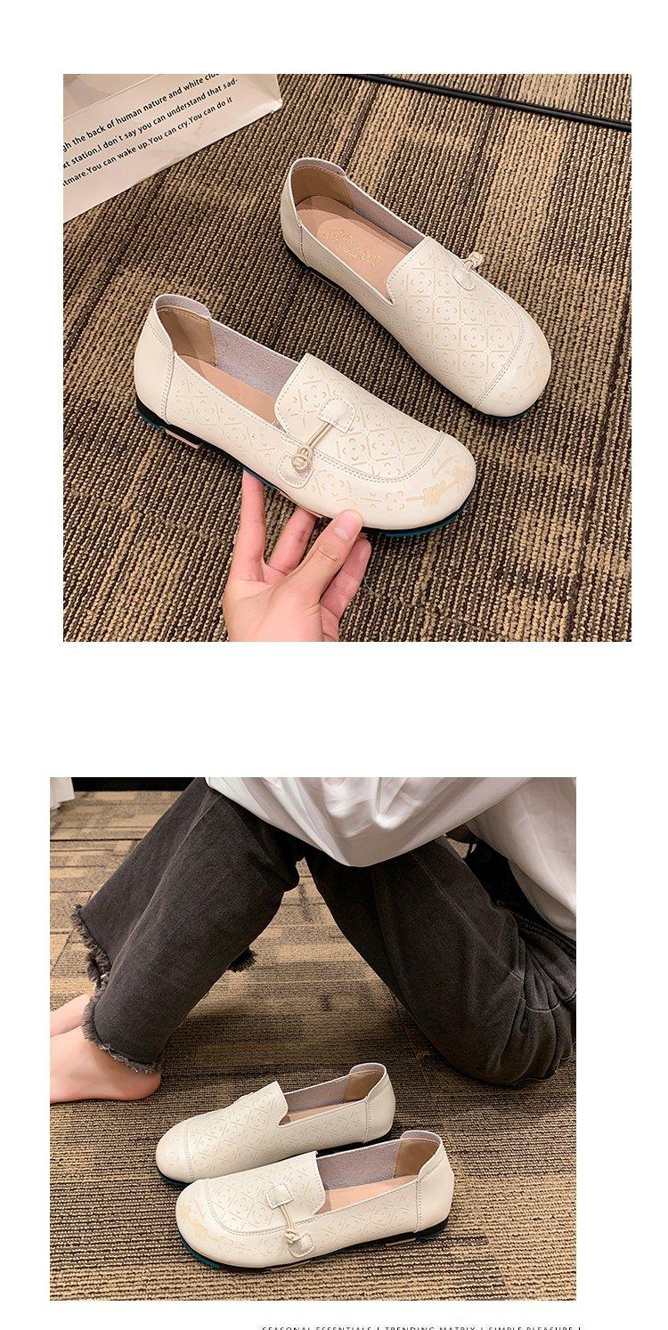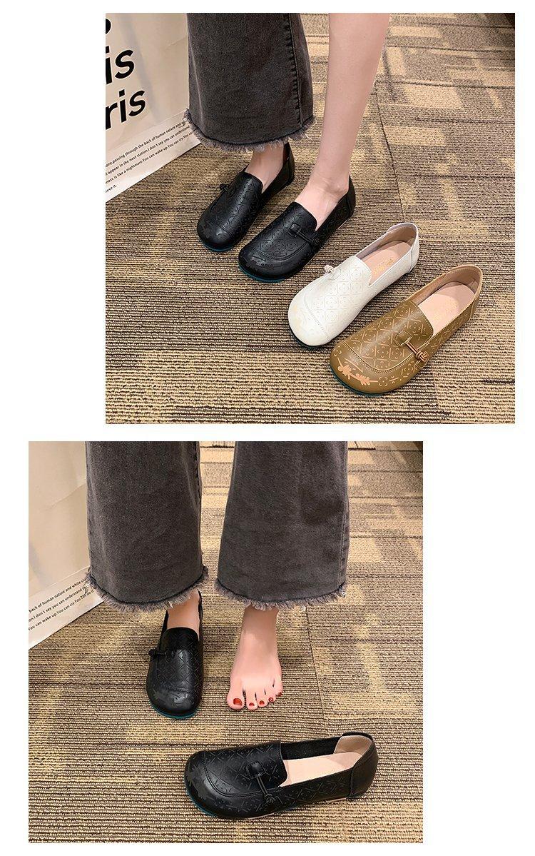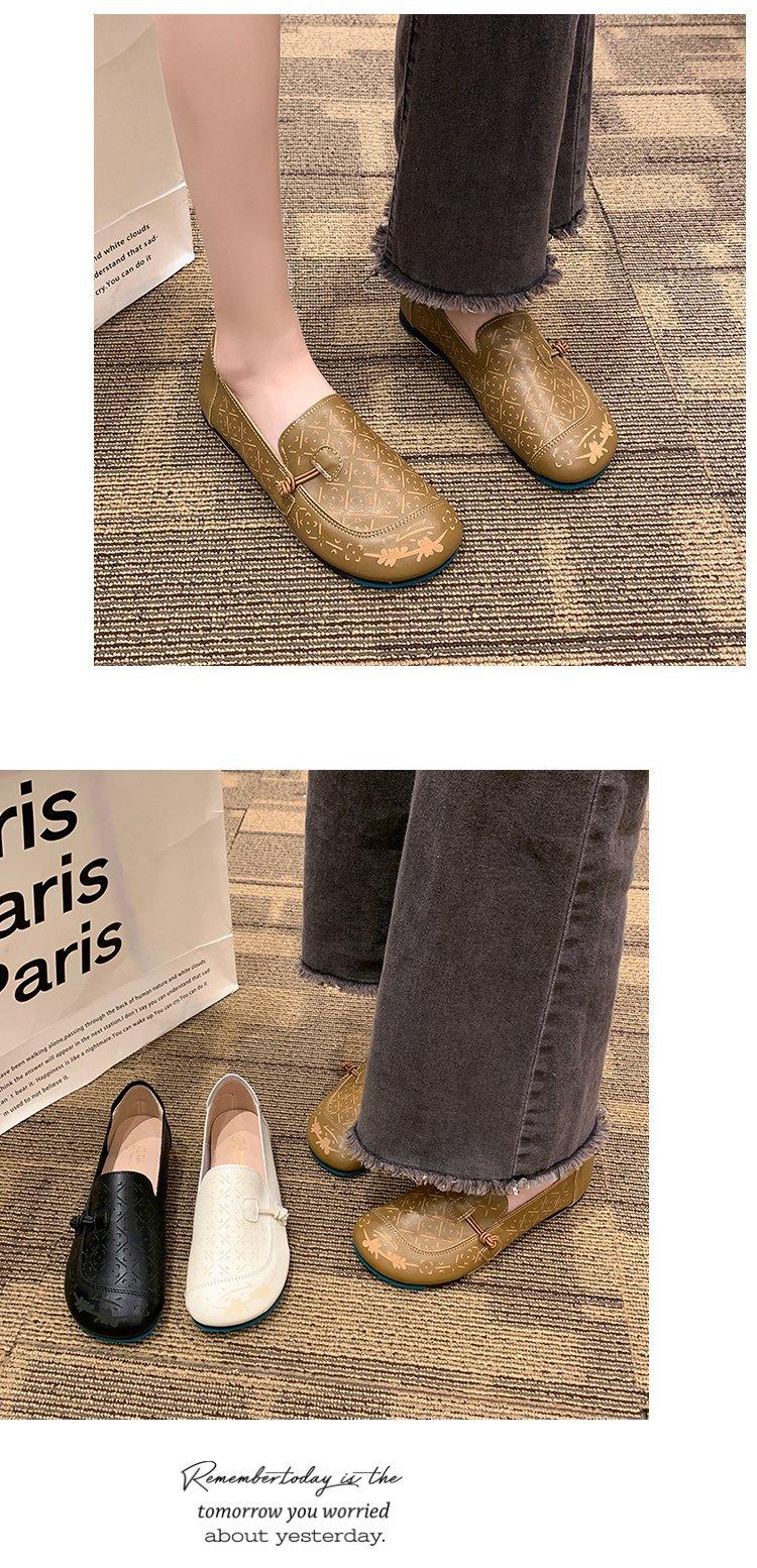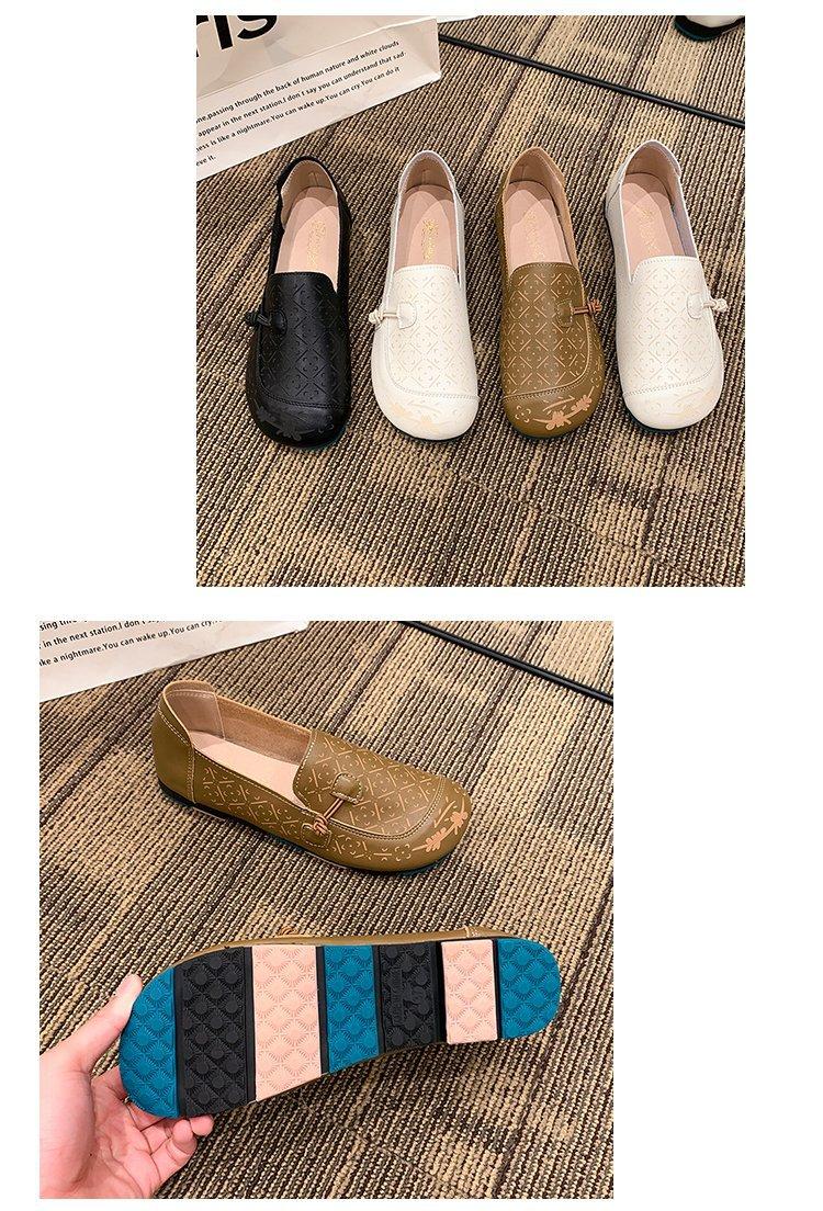 Zapatos de suela blanda de cuero suave, nuevos zapatos planos sin cordones estampados de primavera 2025 para mujer.