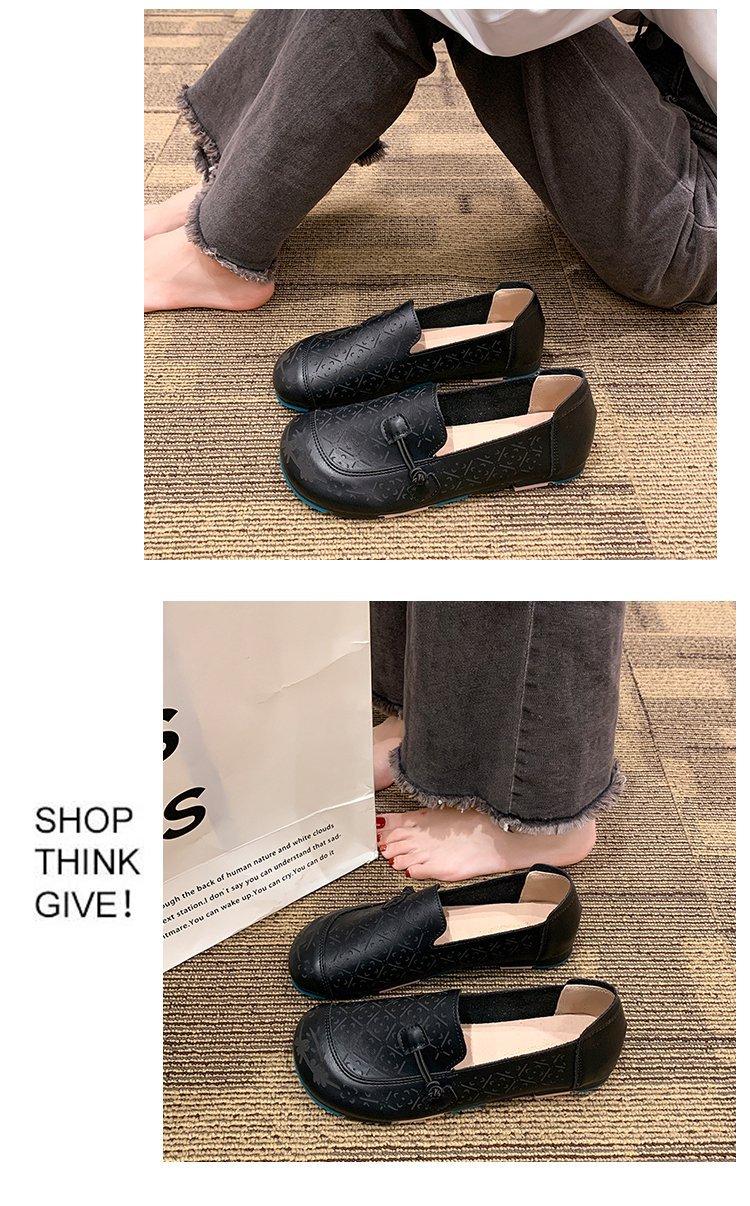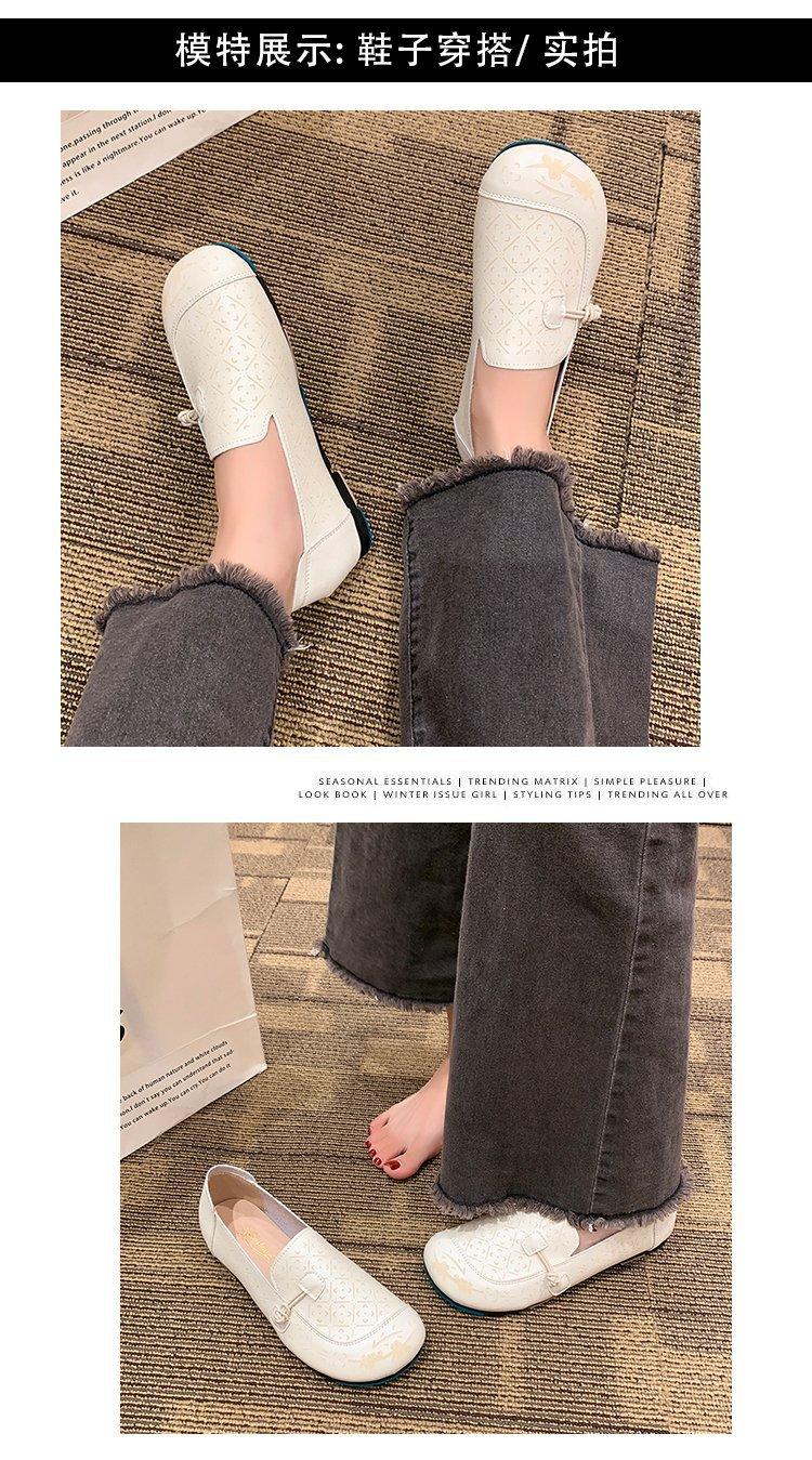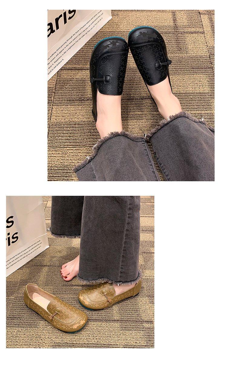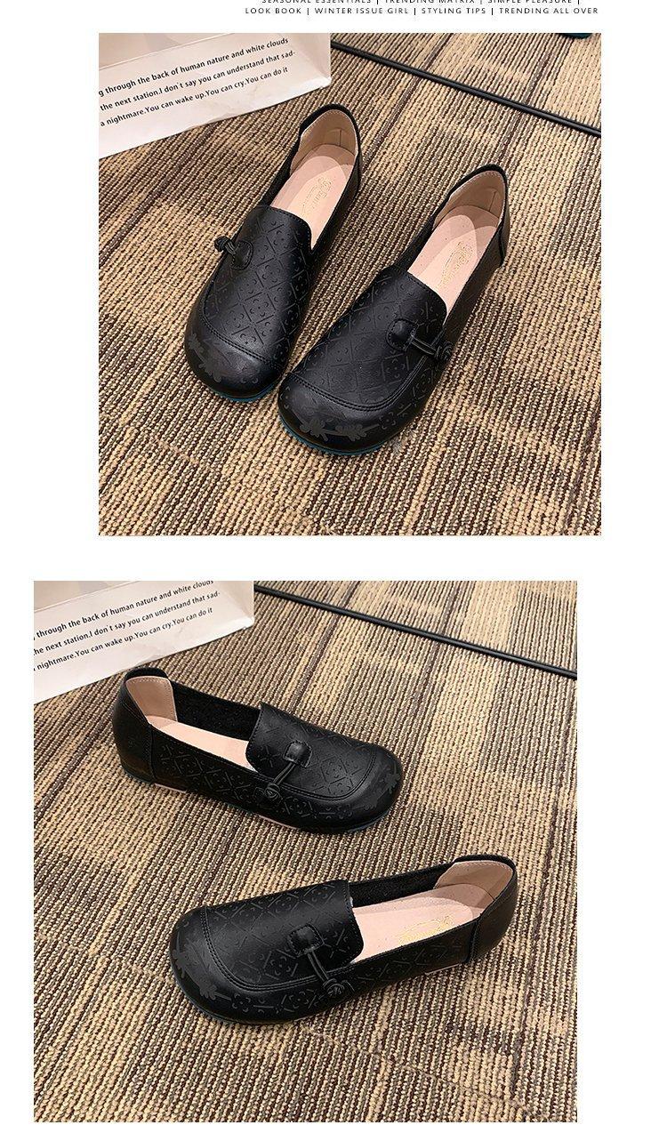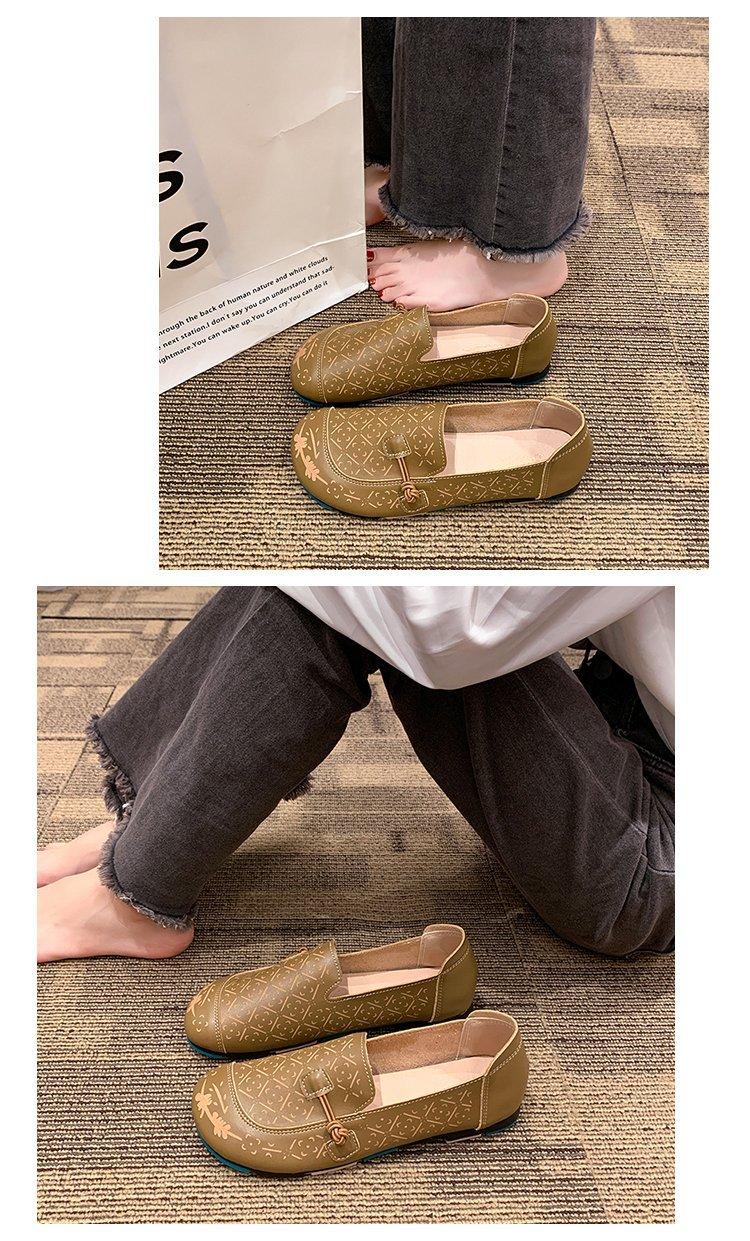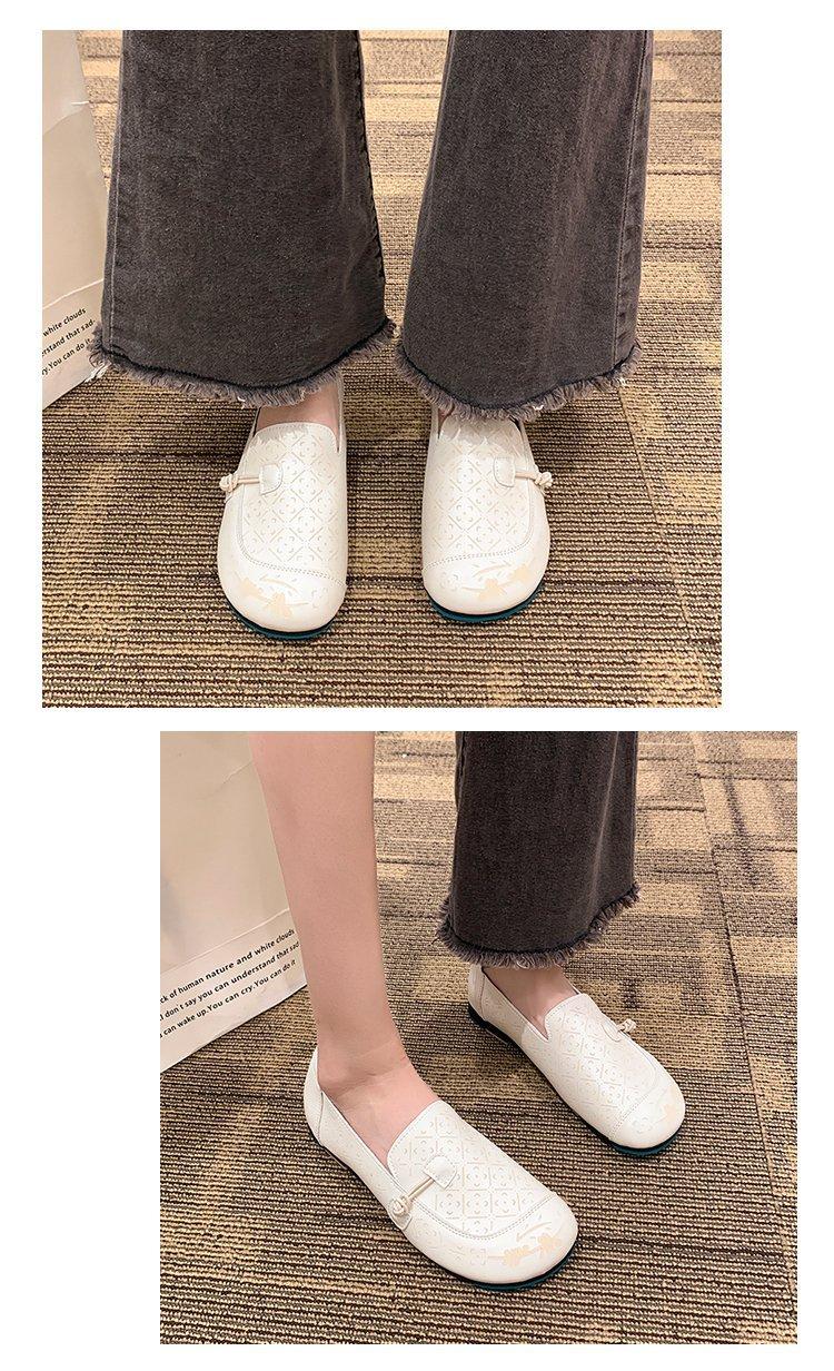 Zapatos de suela blanda de cuero suave, nuevos zapatos planos sin cordones estampados de primavera 2025 para mujer.