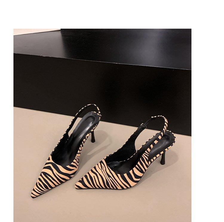 [youshilai] Sandalias de tacón alto con estampado de leopardo francés, verano 2025, zapatos sexys y vacíos.