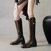 Botas cortas con hebilla de cinturón para mujer, botas largas hasta la rodilla, primavera y otoño 2023, nuevas botas de caballero ajustadas de caña alta que combinan con todo.