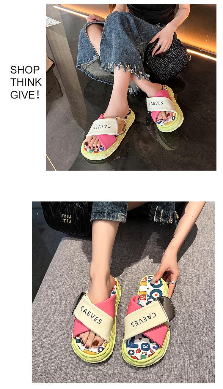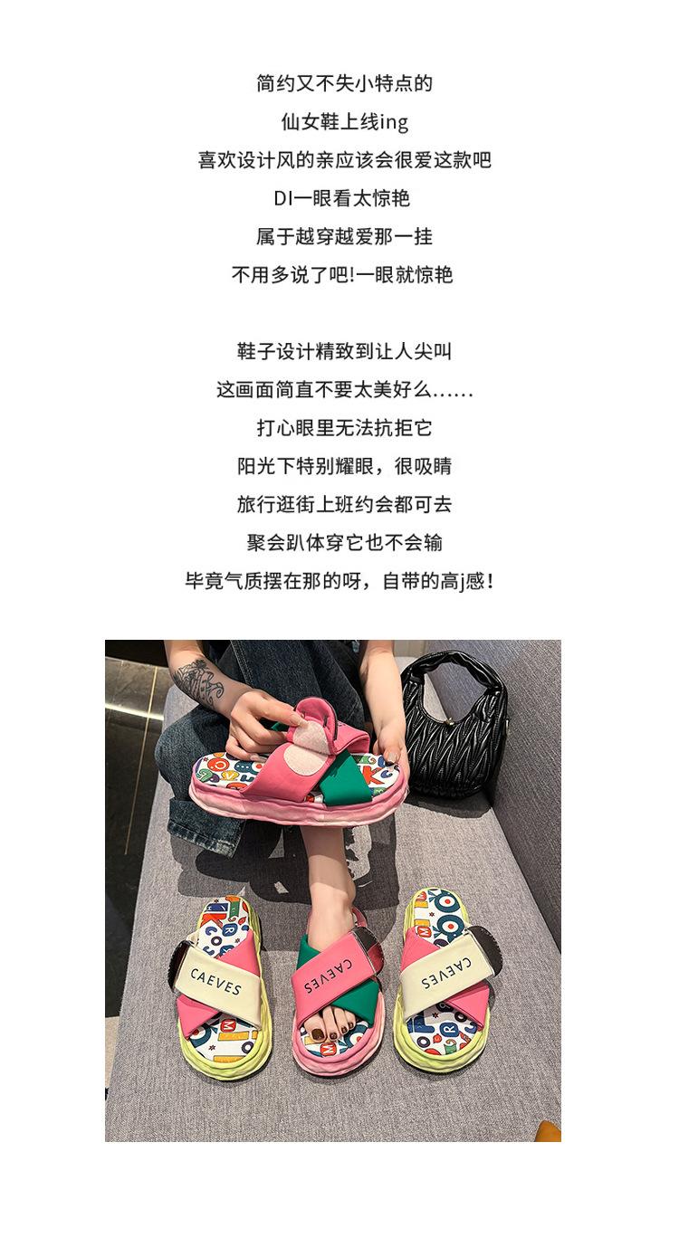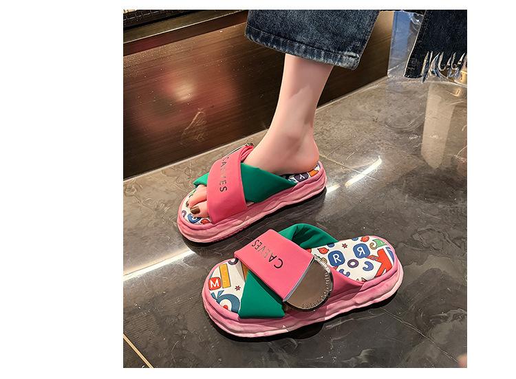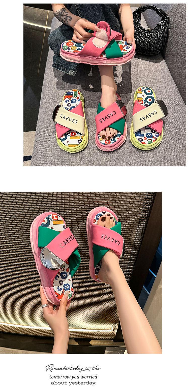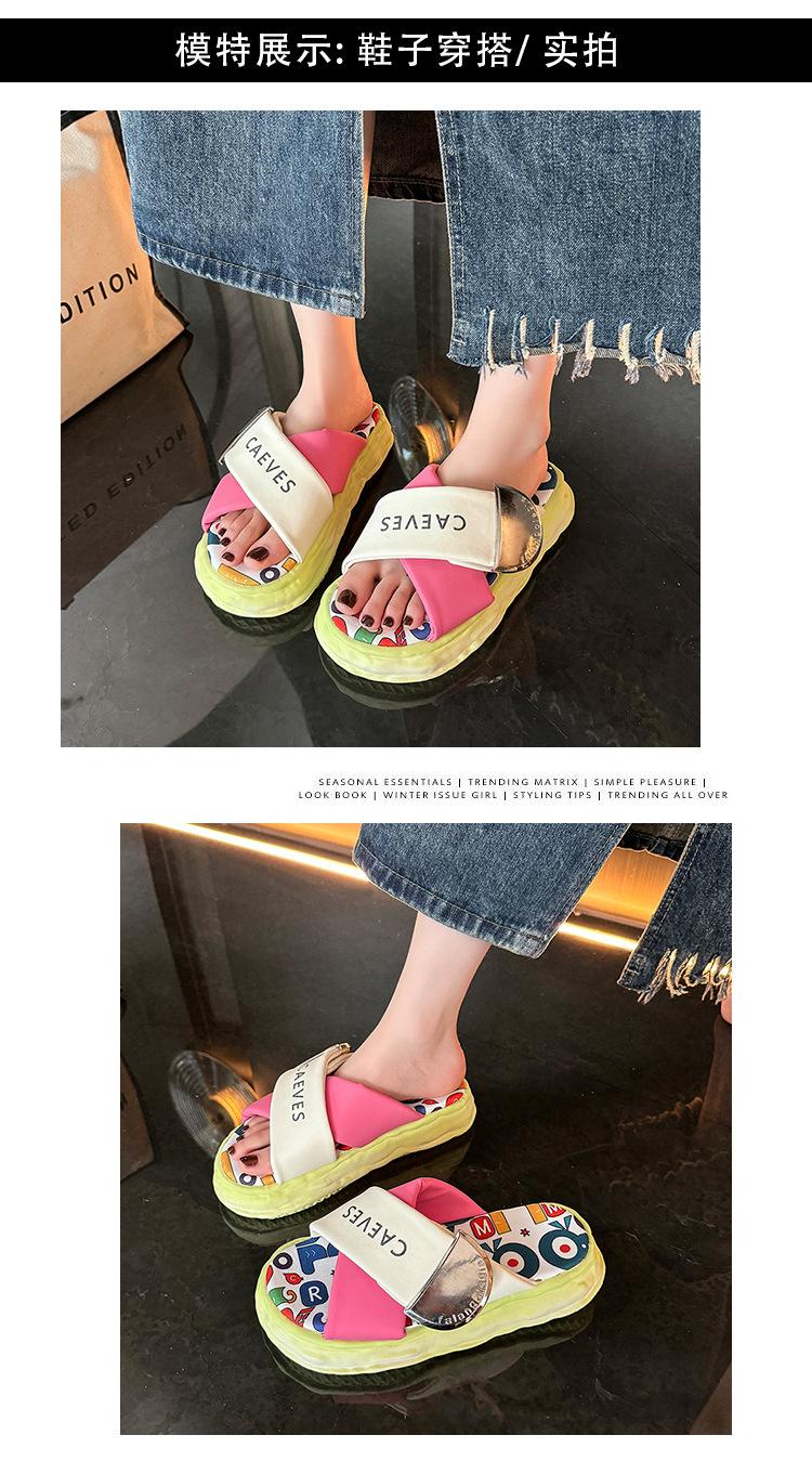 Sandalias y pantuflas de suela gruesa para verano para mujer 2025 nuevo en línea popular super popular productos europeos graffiti sandalias de playa sensación de pisar excremento
