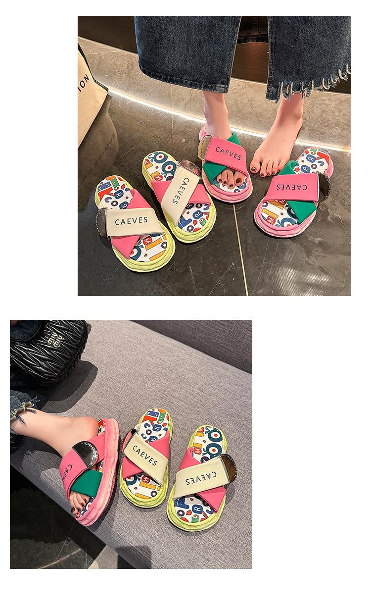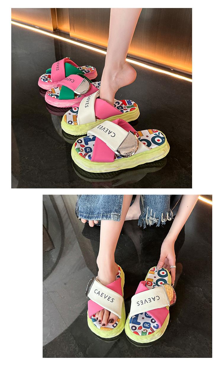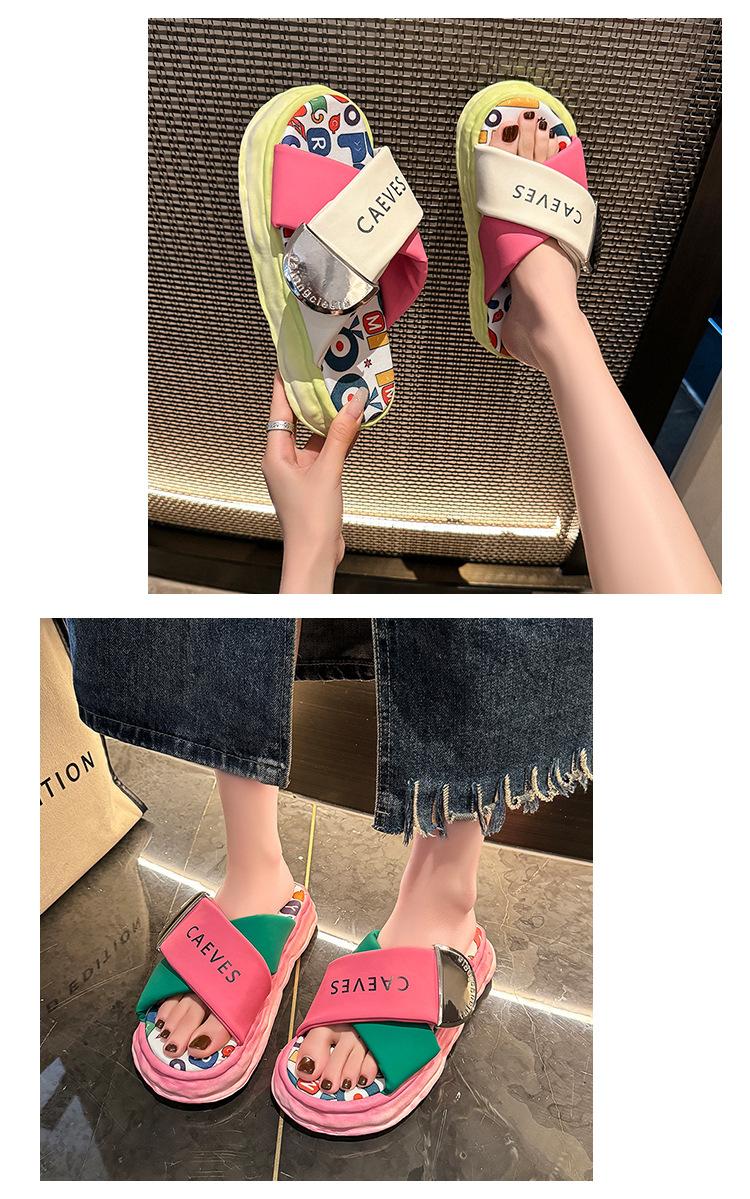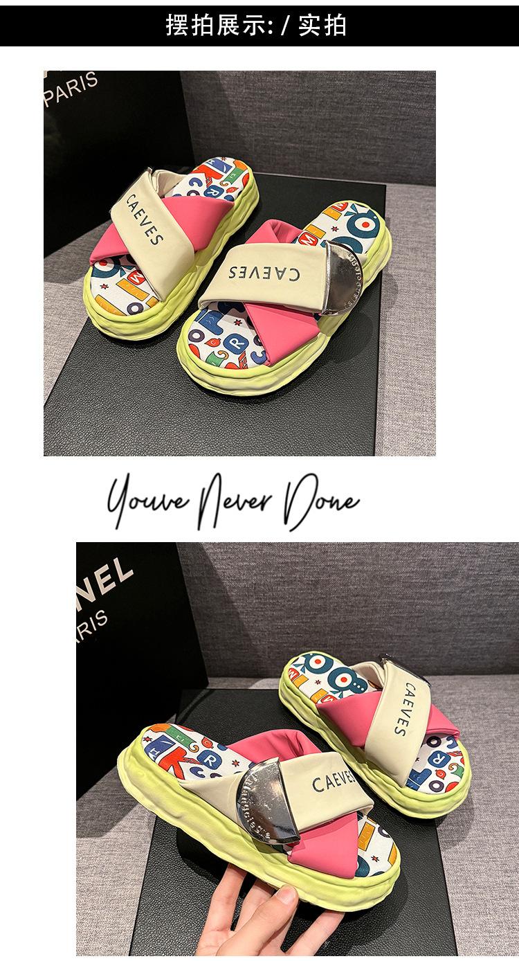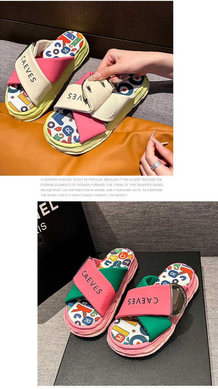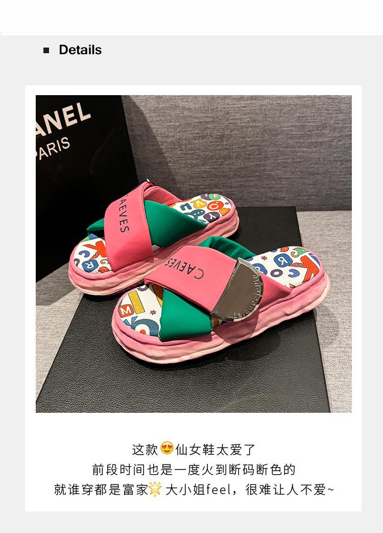 Sandalias y pantuflas de suela gruesa para verano para mujer 2025 nuevo en línea popular super popular productos europeos graffiti sandalias de playa sensación de pisar excremento