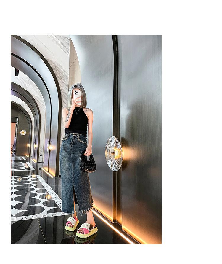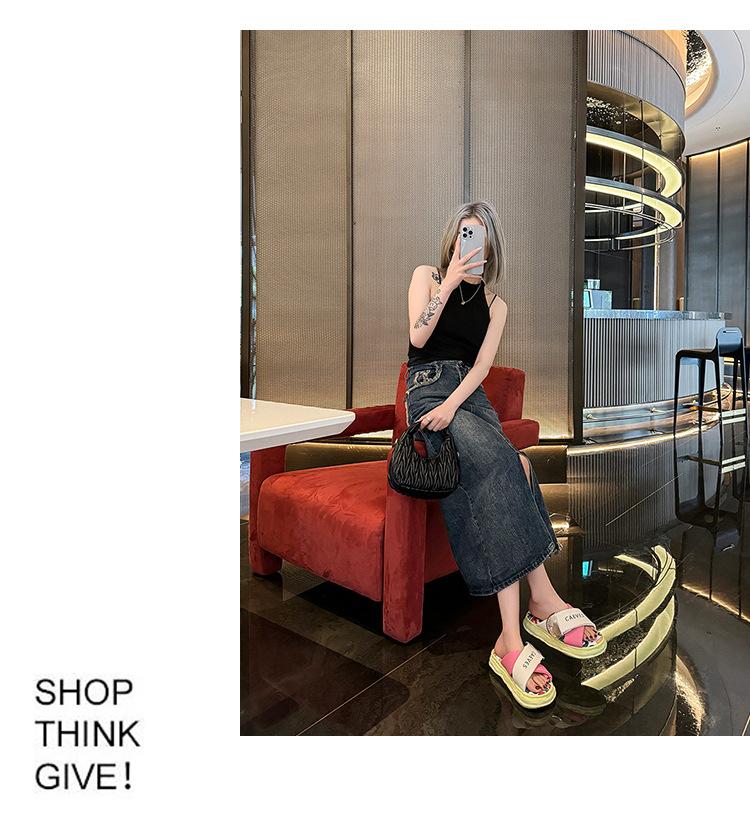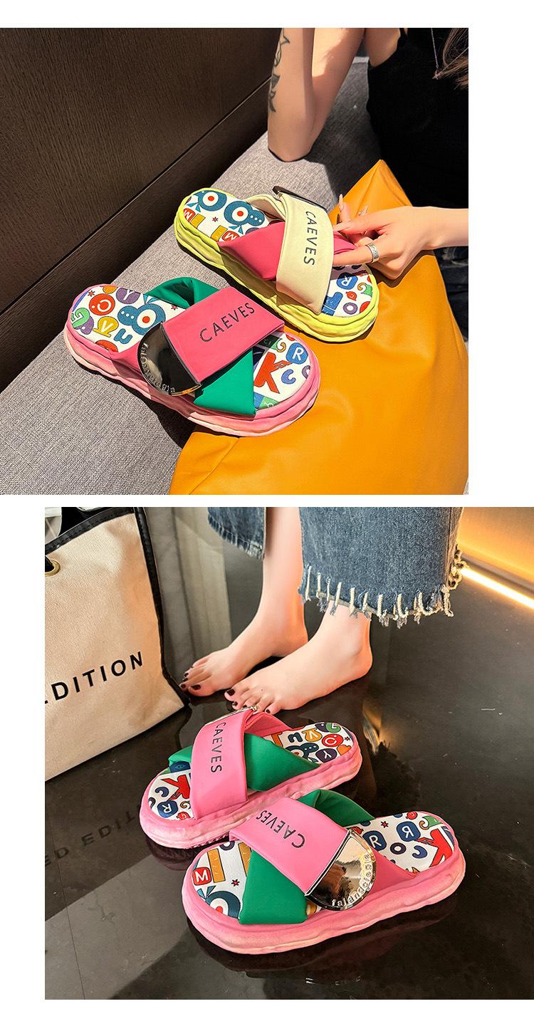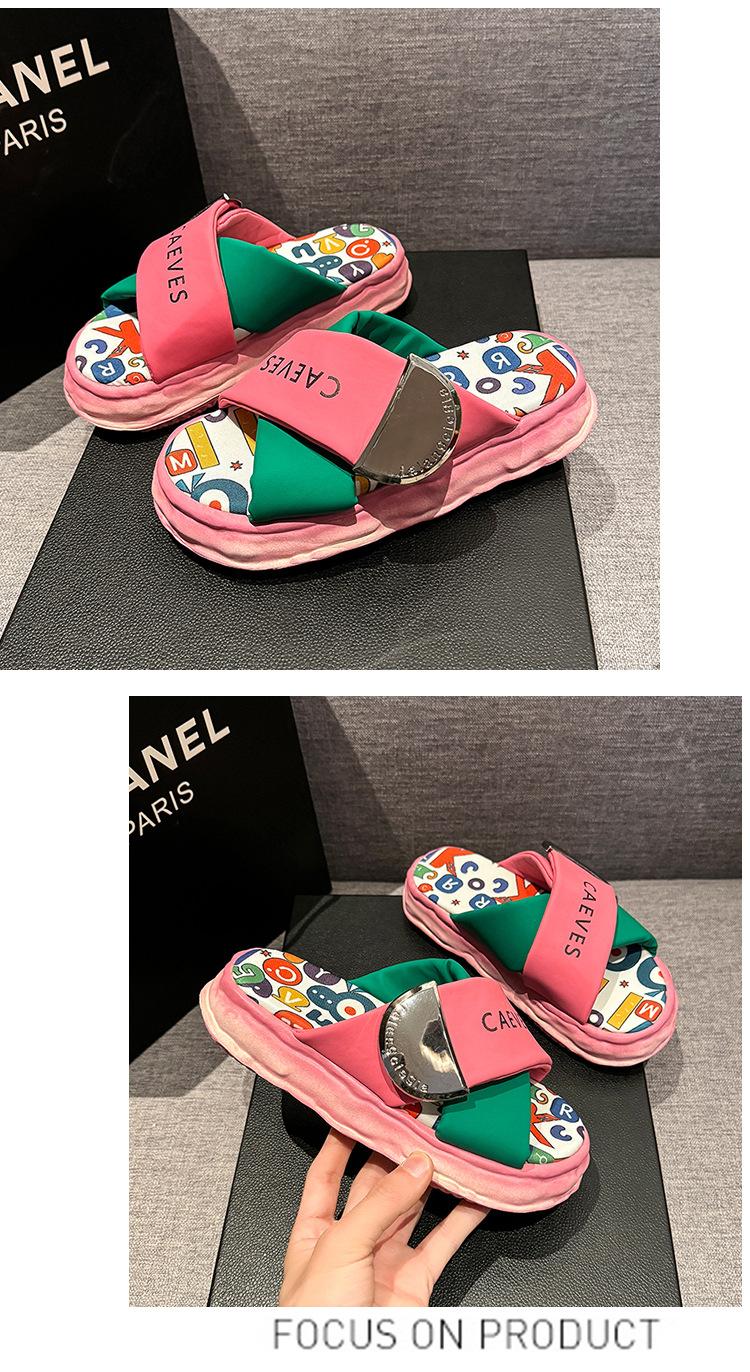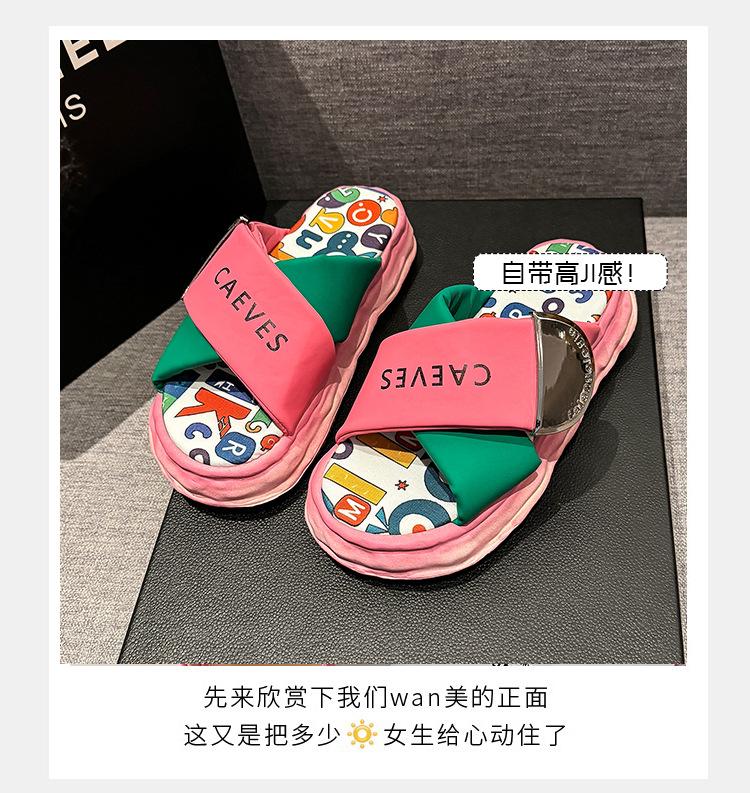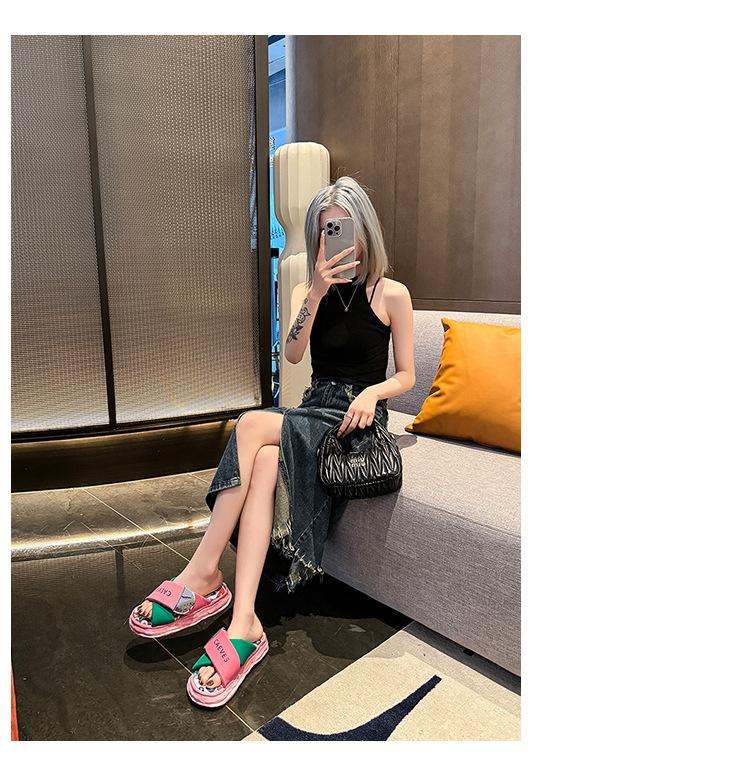 Sandalias y pantuflas de suela gruesa para verano para mujer 2025 nuevo en línea popular super popular productos europeos graffiti sandalias de playa sensación de pisar excremento