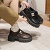Zapatos negros de mujer, zapatos de cuero estilo británico, mocasines de suela gruesa para otoño e invierno 2024, zapatos de una sola capa que combinan con todo para mujer.