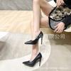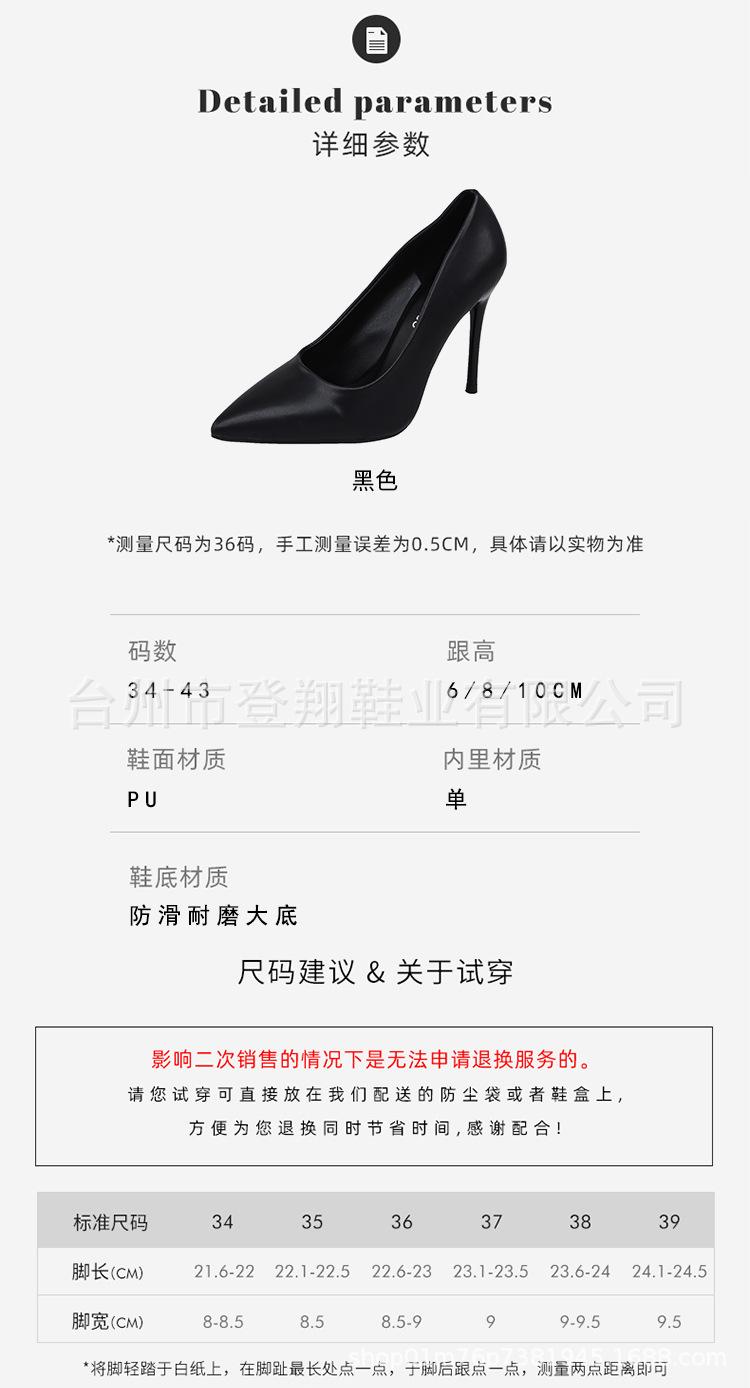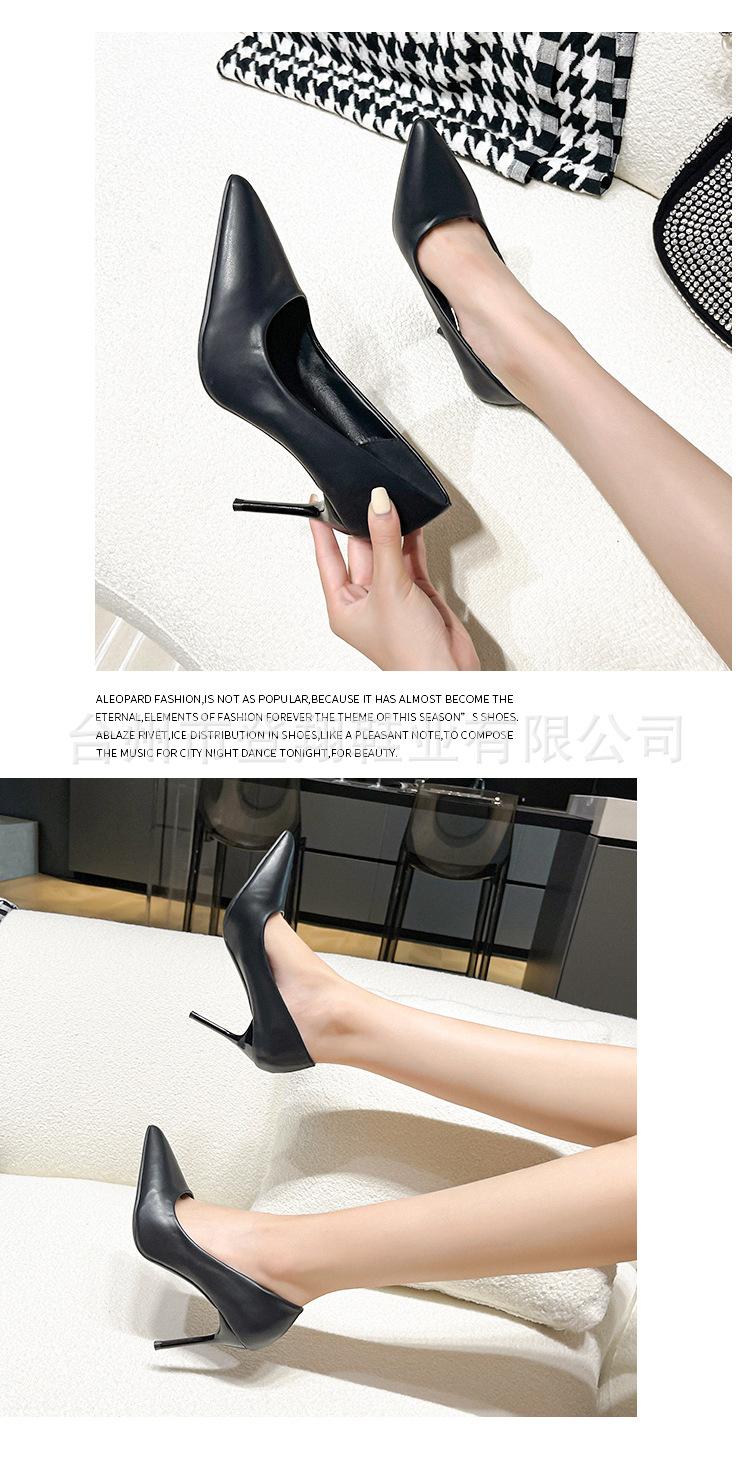 Transfronterizo Nuevo talla grande Zapatos de tacón alto para mujer Tacón fino Negro Punta francesa Zapatos individuales Temperamento profesional Zapatos de trabajo para comercio exterior