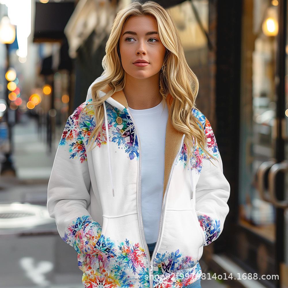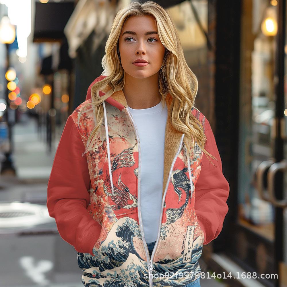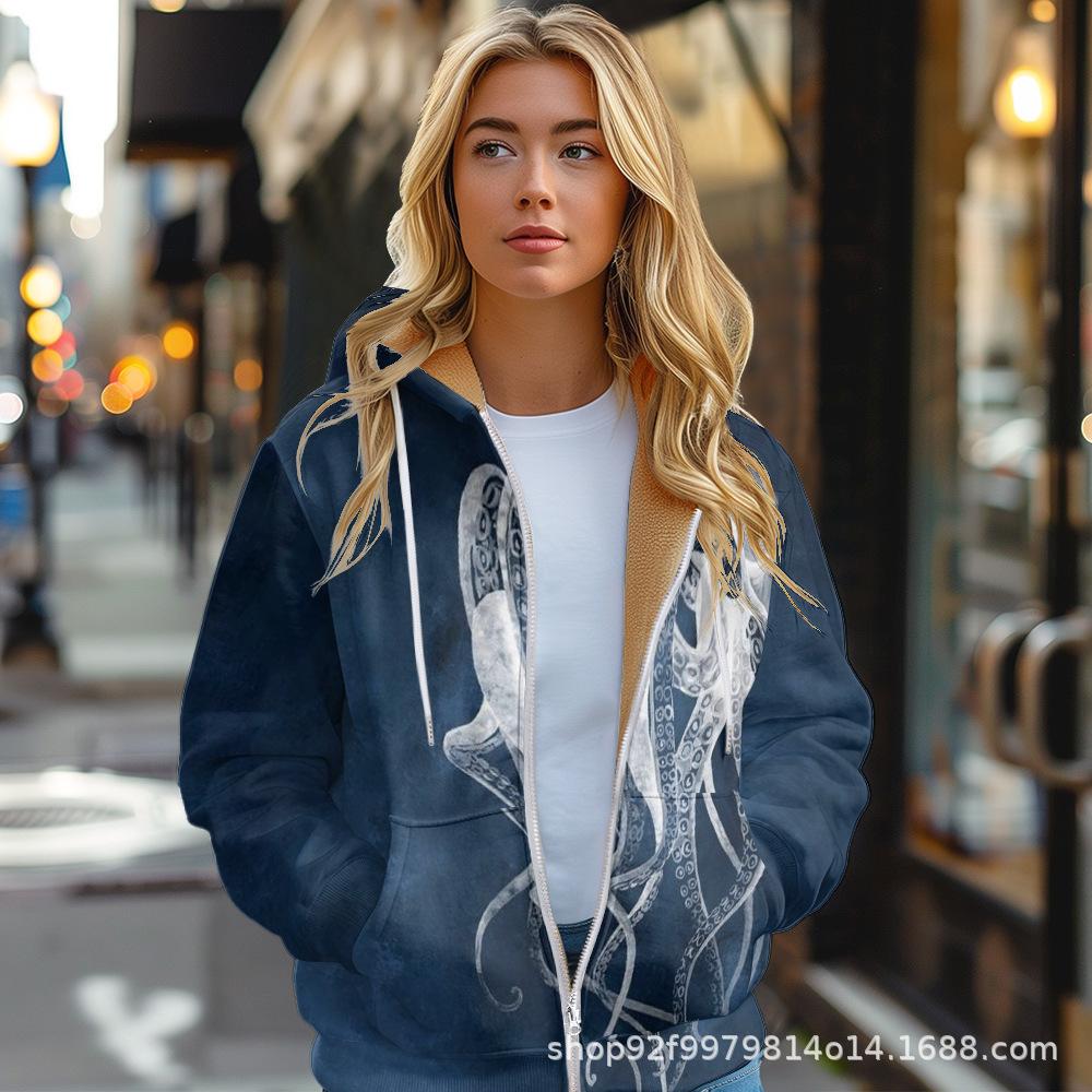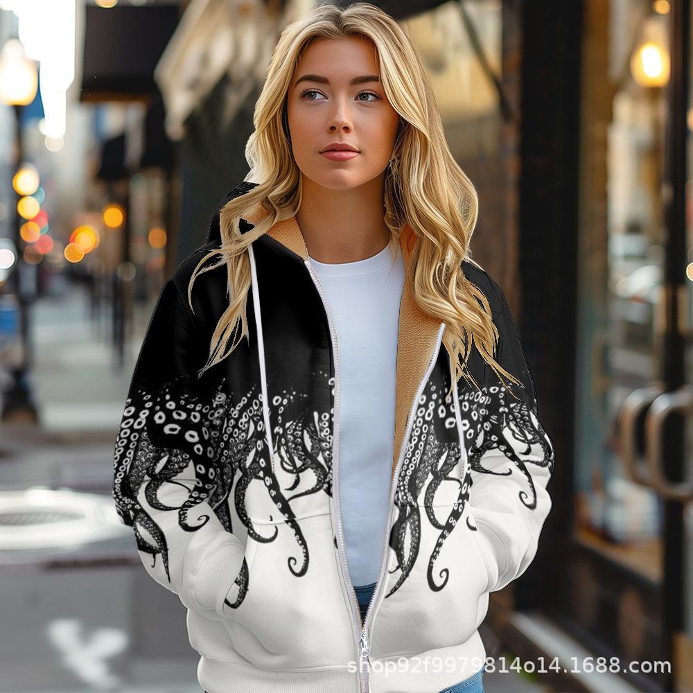 2024 Exportación Europea y Americana Impresión 3D Elementos Creativos de Sombreado Chaqueta de Terciopelo para Mujer Otoño e Invierno Amazon Transfronterizo