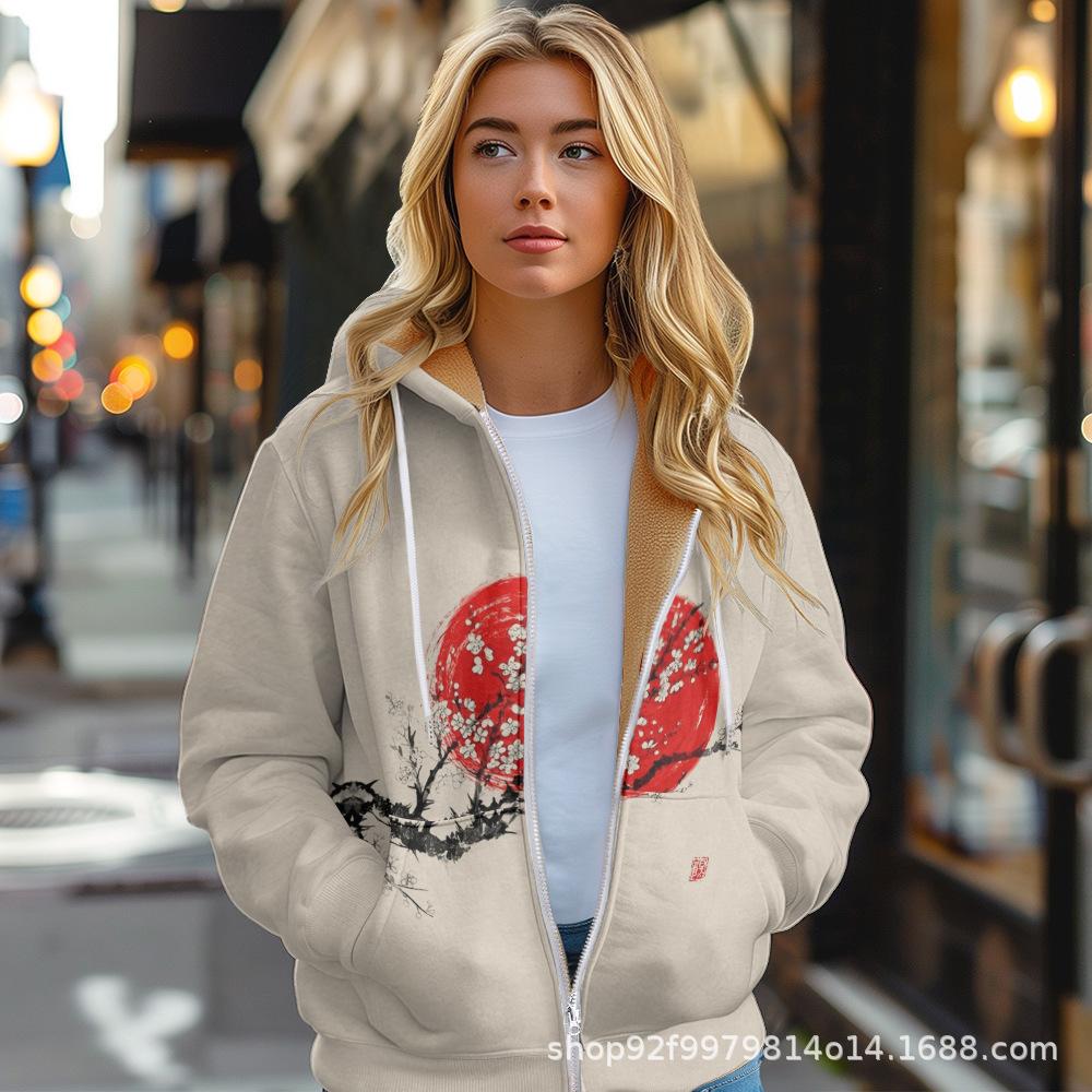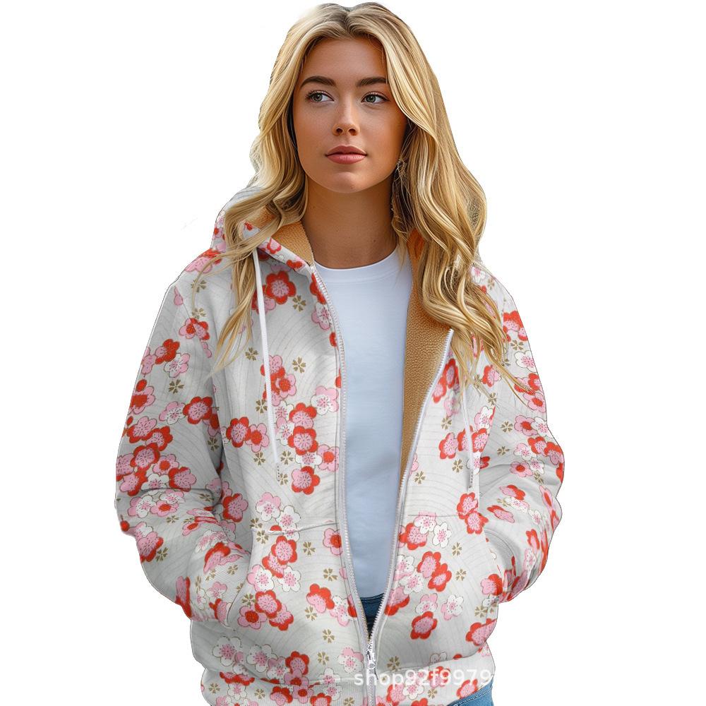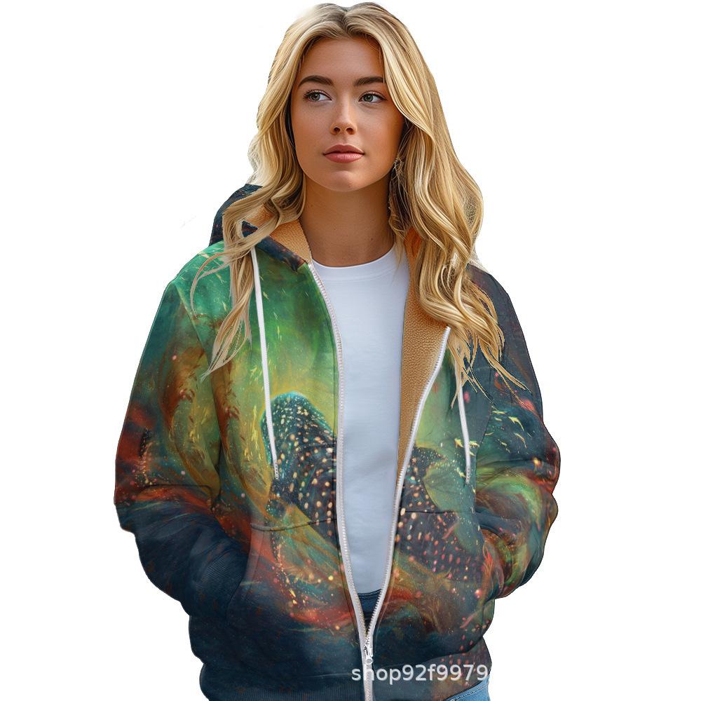 2024 Exportación Europea y Americana Impresión 3D Elementos Creativos de Sombreado Chaqueta de Terciopelo para Mujer Otoño e Invierno Amazon Transfronterizo