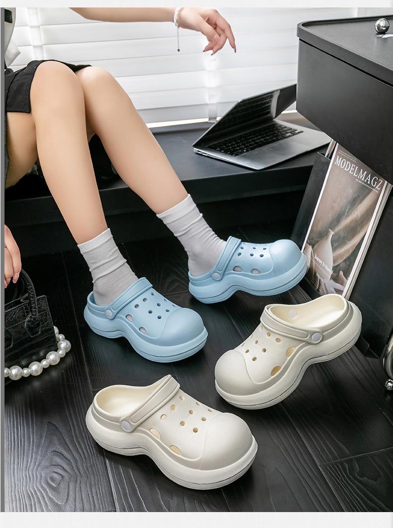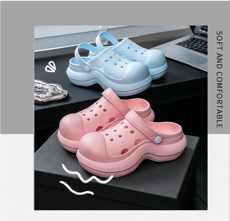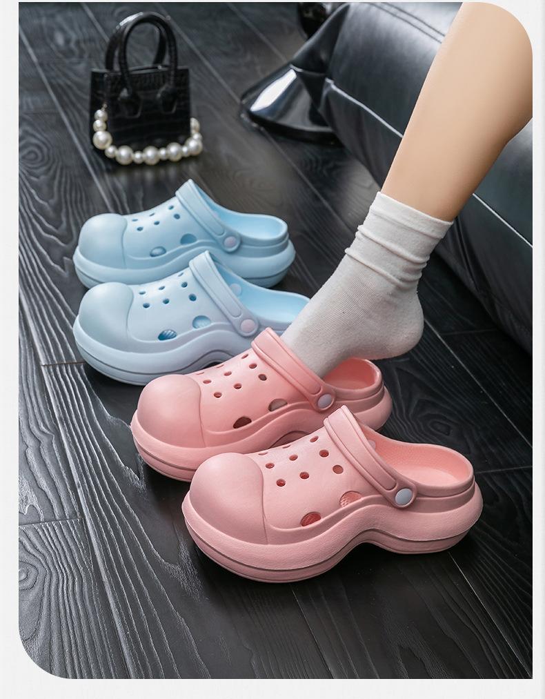 Nuevos Zapatos Cueva de Playa EVA Feeling Moda Femenina Antideslizantes para Casa Atuendo Plataforma Gruesa Elevada Zapatillas Baotou