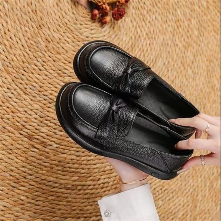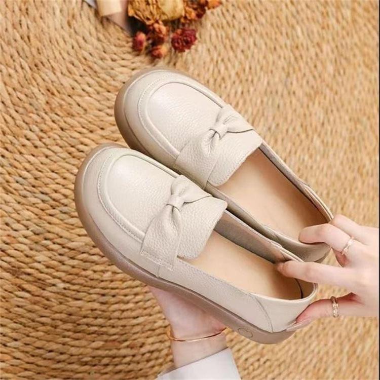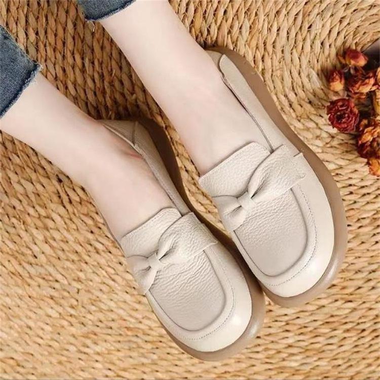 Mocasines de piel suave con suela blanda, sin cordones, para mujer, primavera y verano 2025, nuevos, planos y cómodos, zapatos pequeños de piel.