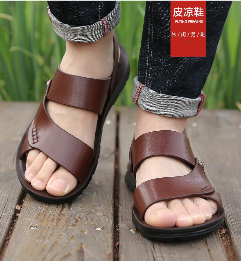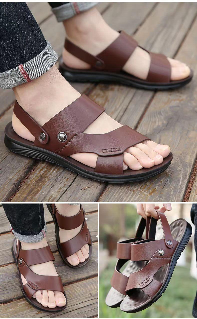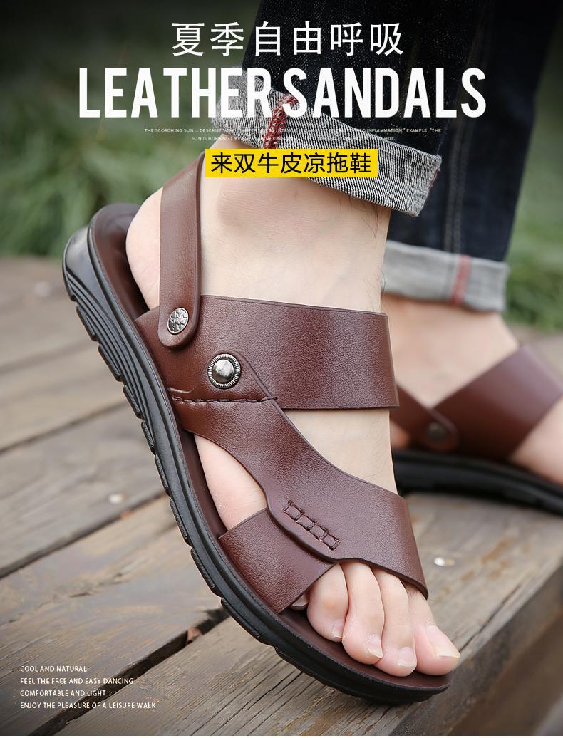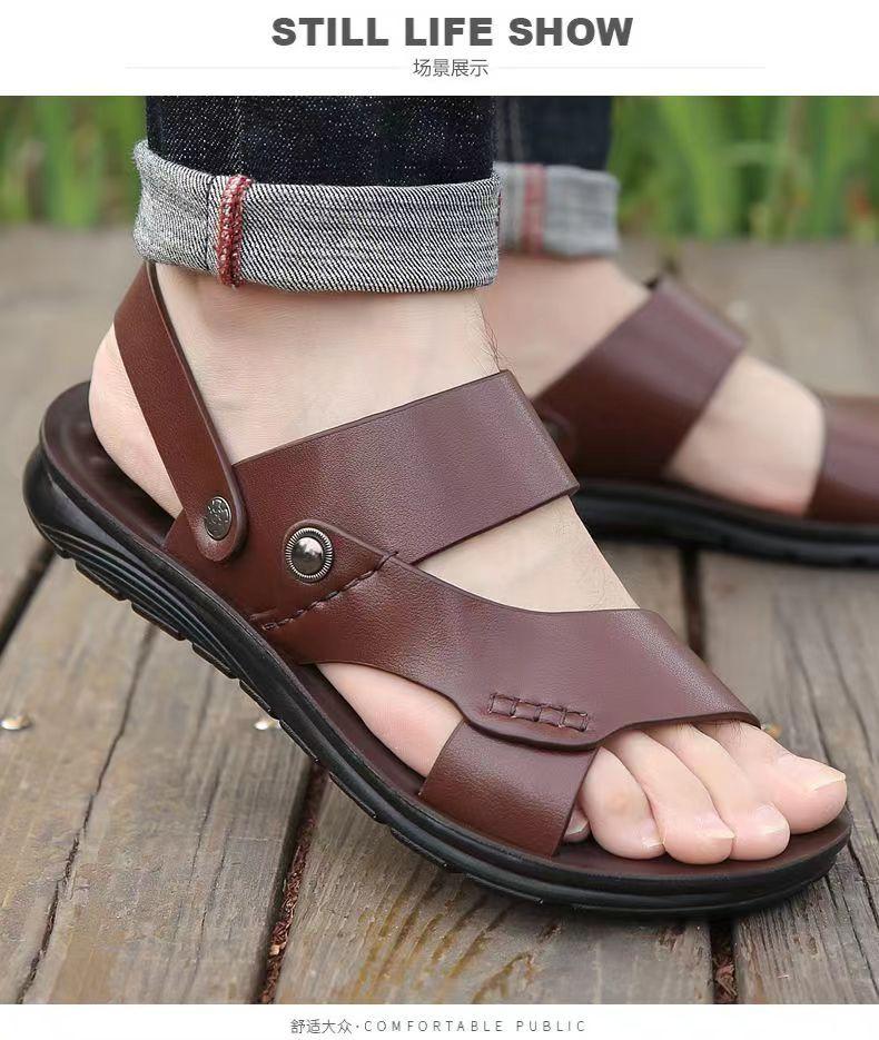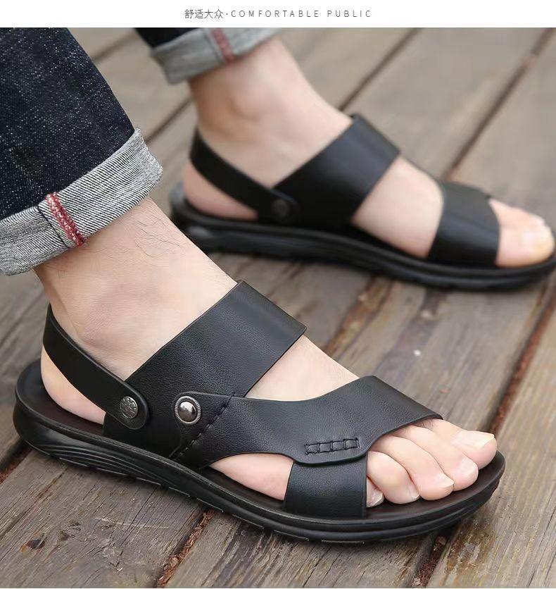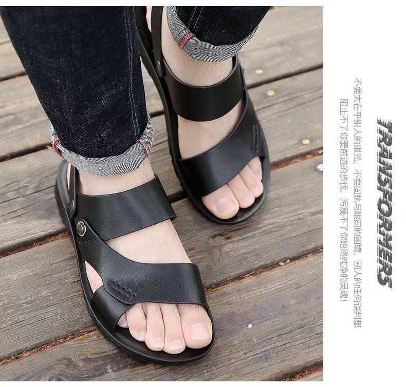 Sandalias de Hombre 2024 Verano Nuevo Sandalias y Pantuflas de Piel de Vaca para Hombre Talla Grande Transfronteriza 47 Zapatos de Playa Casuales Dos Usos Zapatos de Hombre