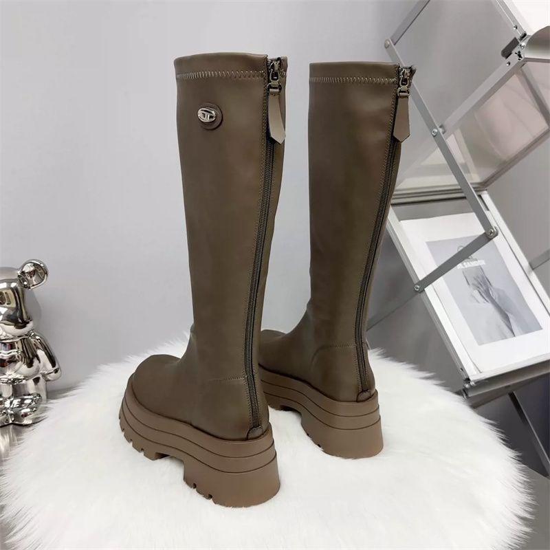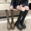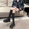 Botas de Caballero para Mujer Suela Gruesa pero hasta la Rodilla Negras Invierno Estilizadas Aumentadoras de Altura Popularidad en Internet Nuevo Estilo Botines Spice Girls para Mujer