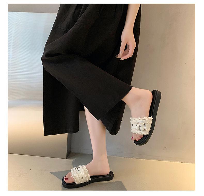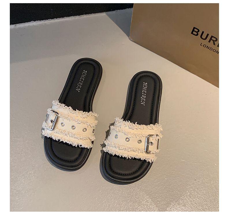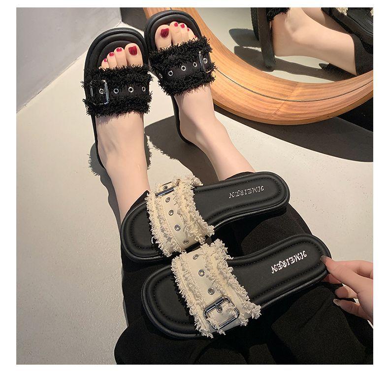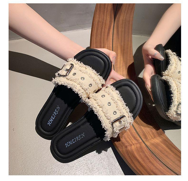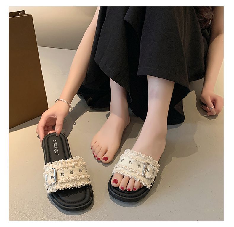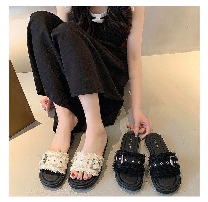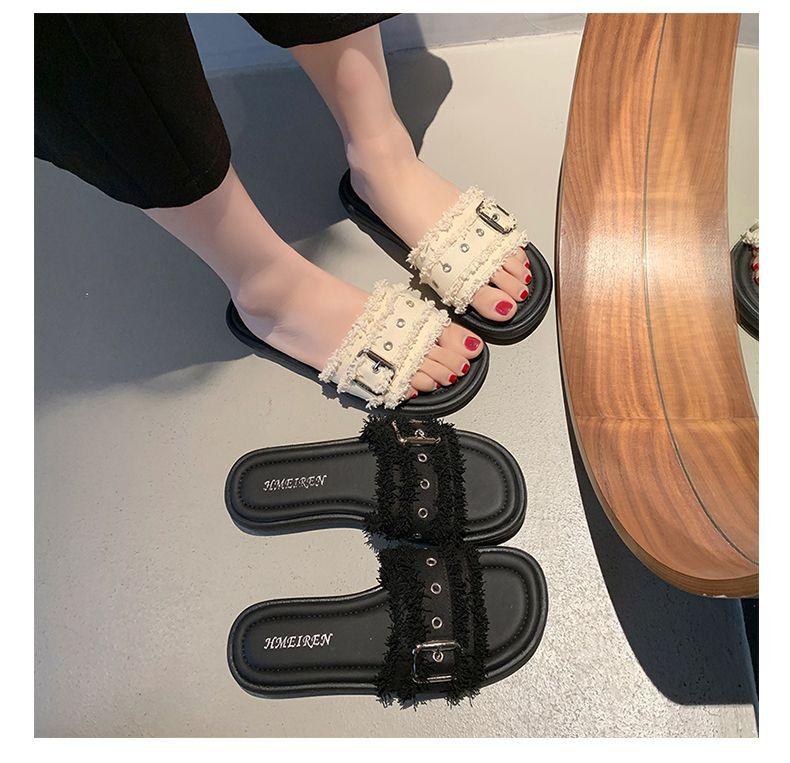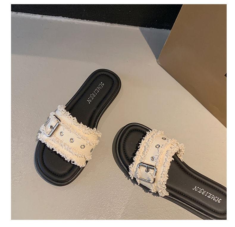 Sandalias planas y pantuflas con hebilla francesa para mujer, verano 2024, nuevas, antideslizantes, de suela suave, modernas, tiendas de una palabra, sandalias de playa