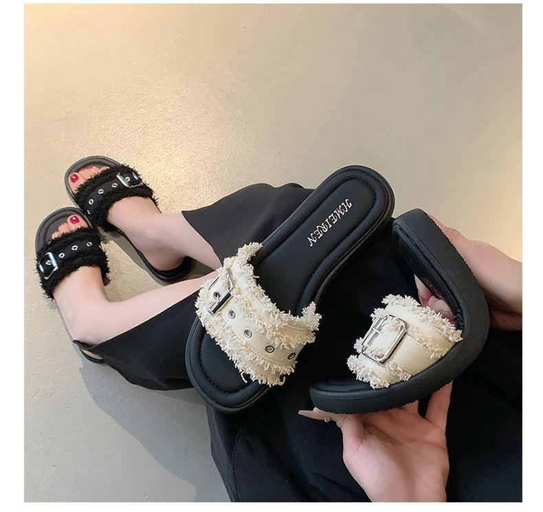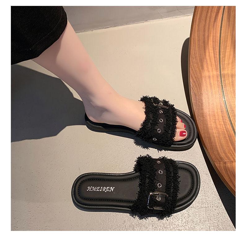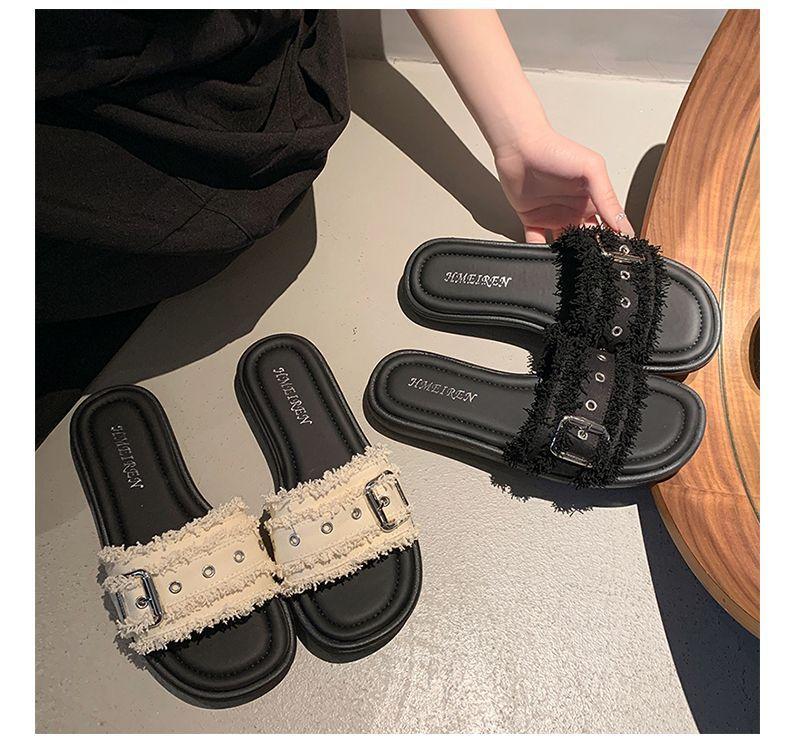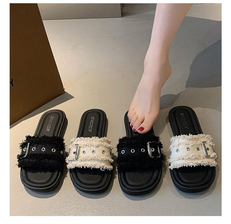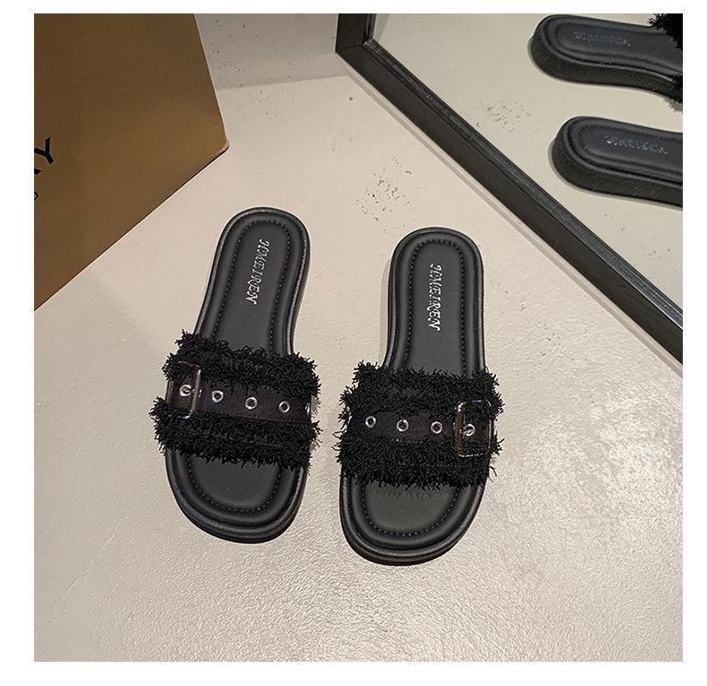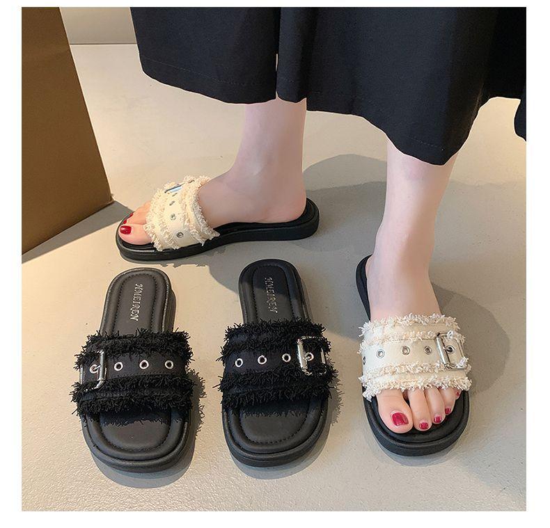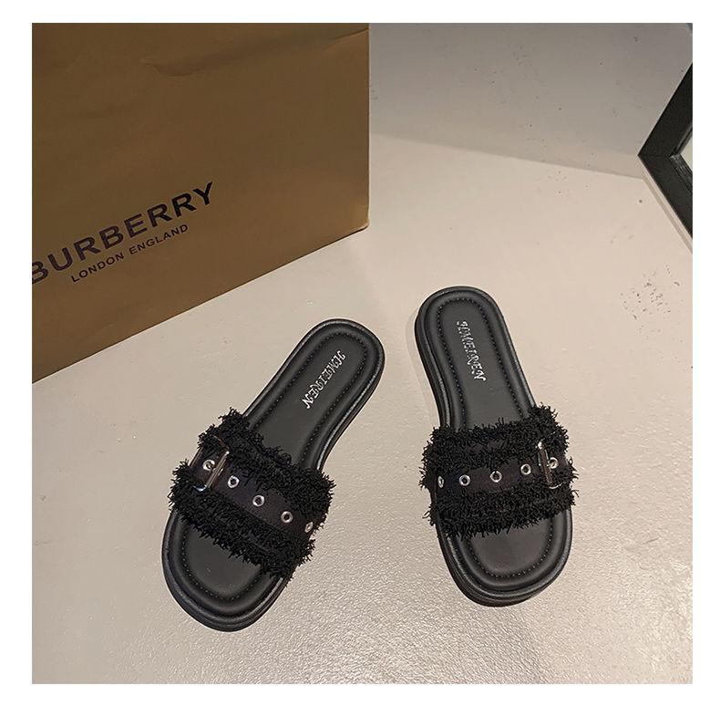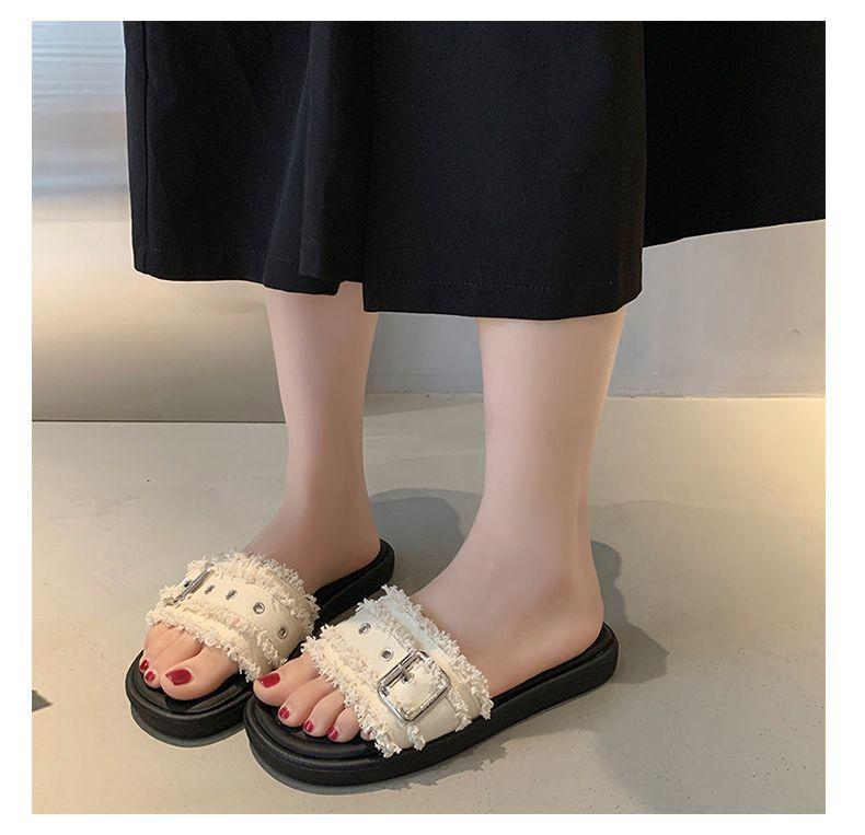 Sandalias planas y pantuflas con hebilla francesa para mujer, verano 2024, nuevas, antideslizantes, de suela suave, modernas, tiendas de una palabra, sandalias de playa