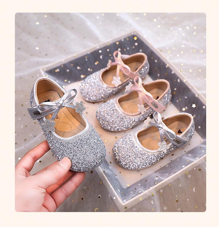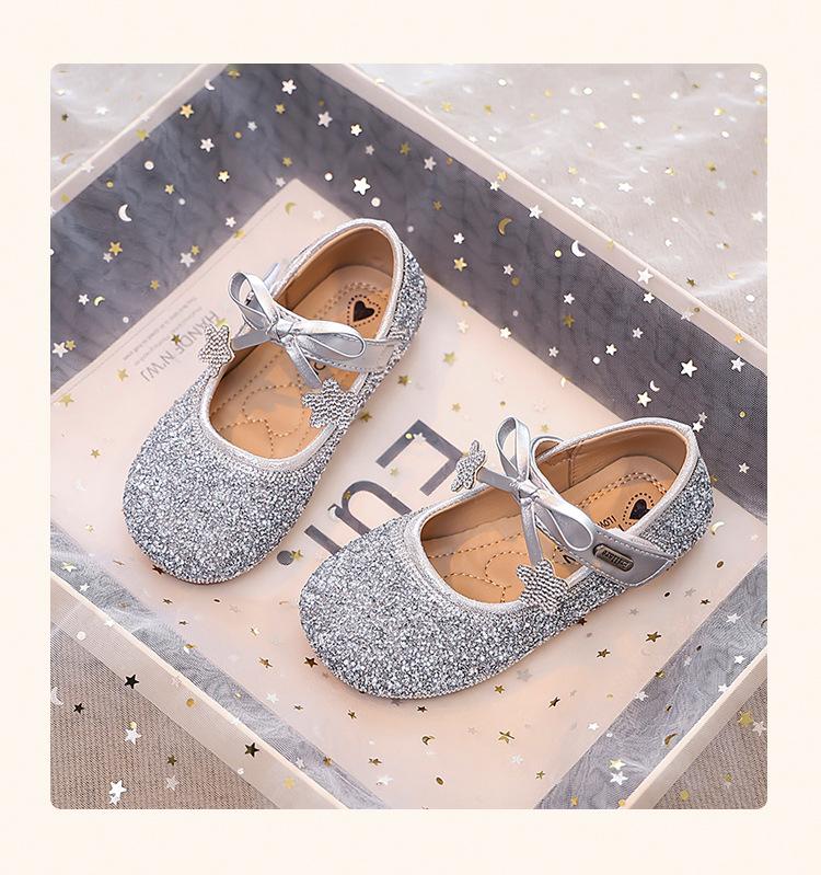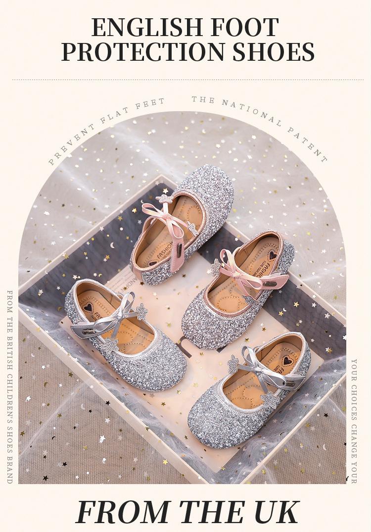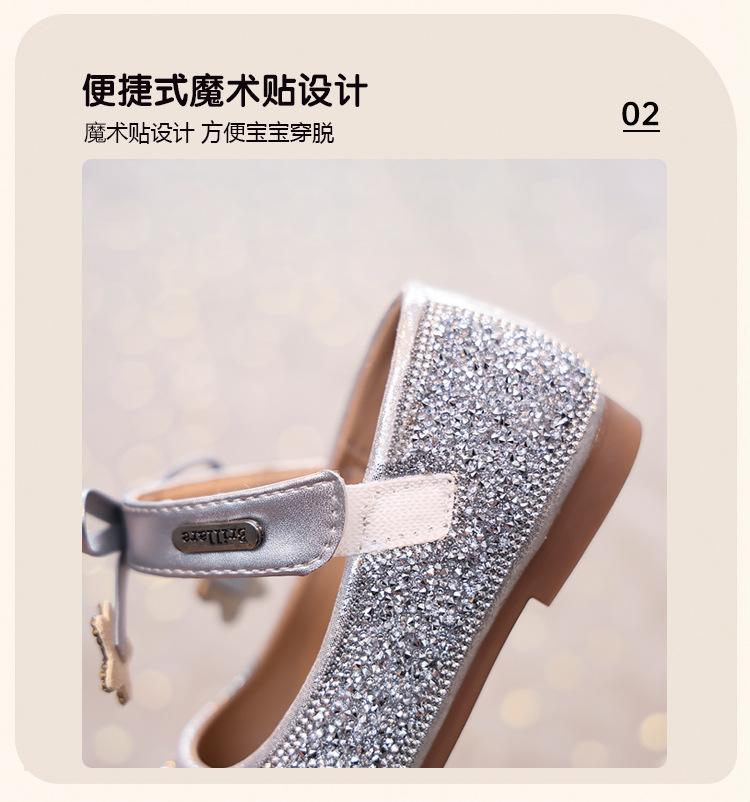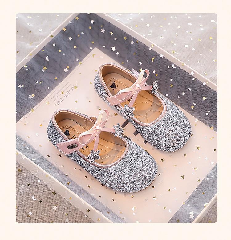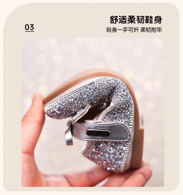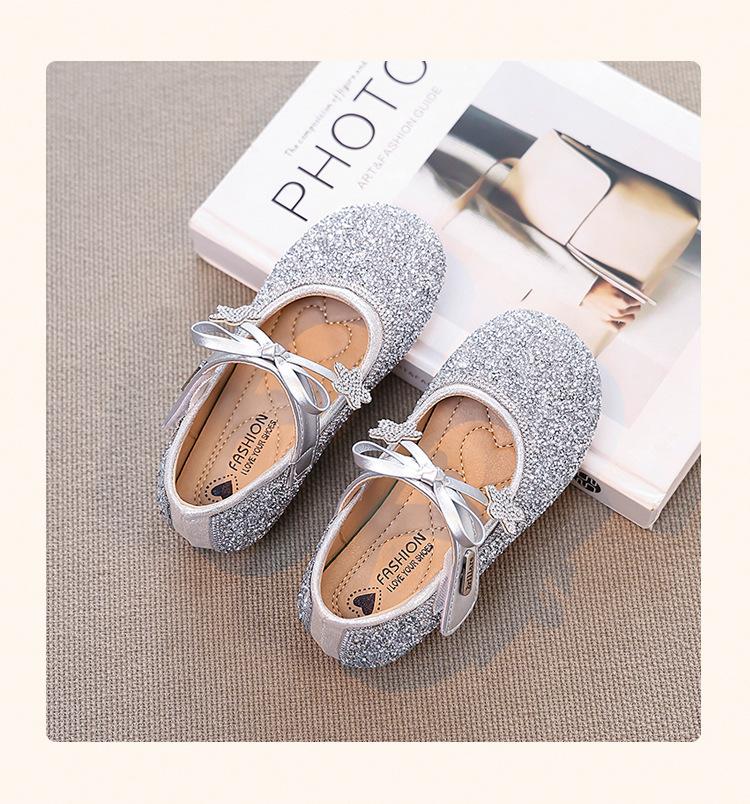 Zapatos de princesa para niñas, primavera 2025, nuevos zapatos para niños, zapatos de cristal, zapatos de cuero para bebés, zapatos Aisha, zapatos individuales de suela blanda.