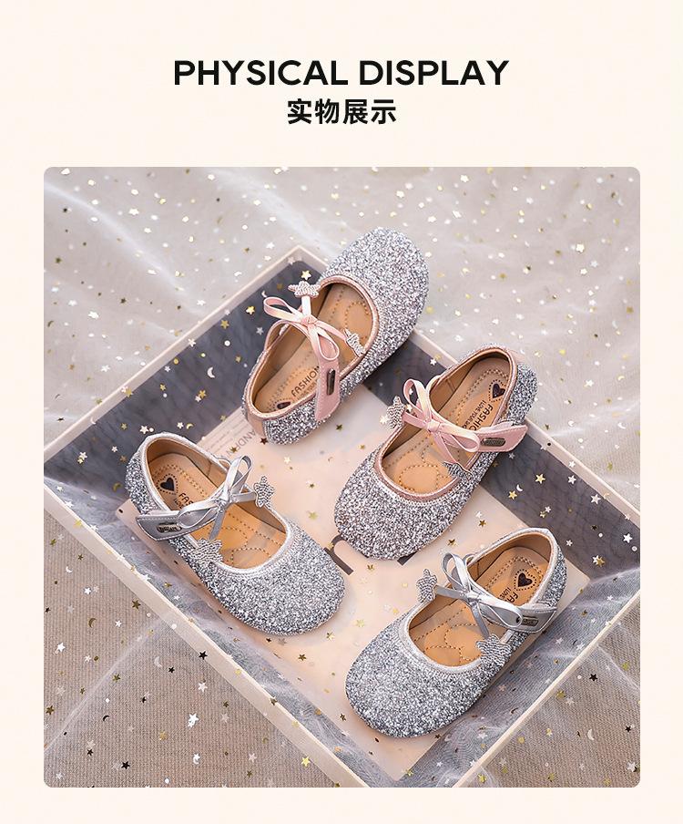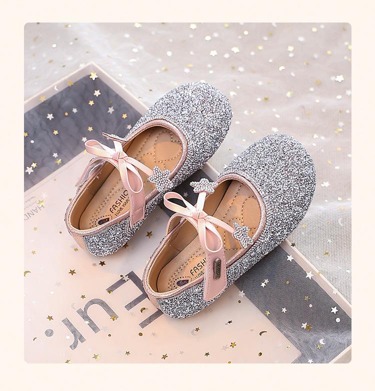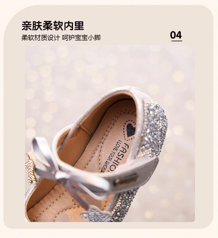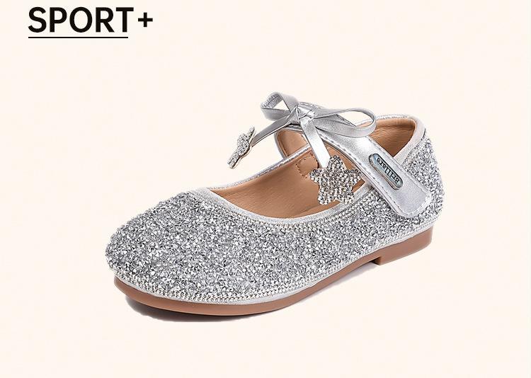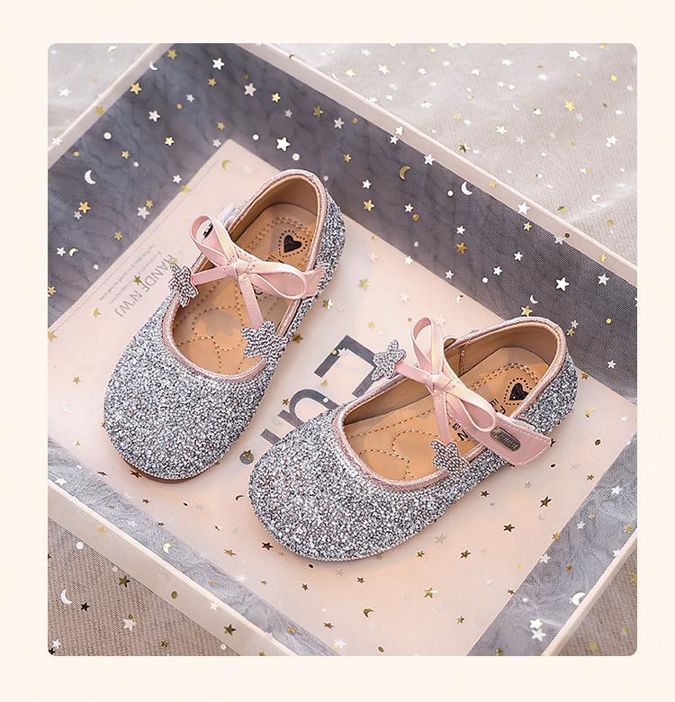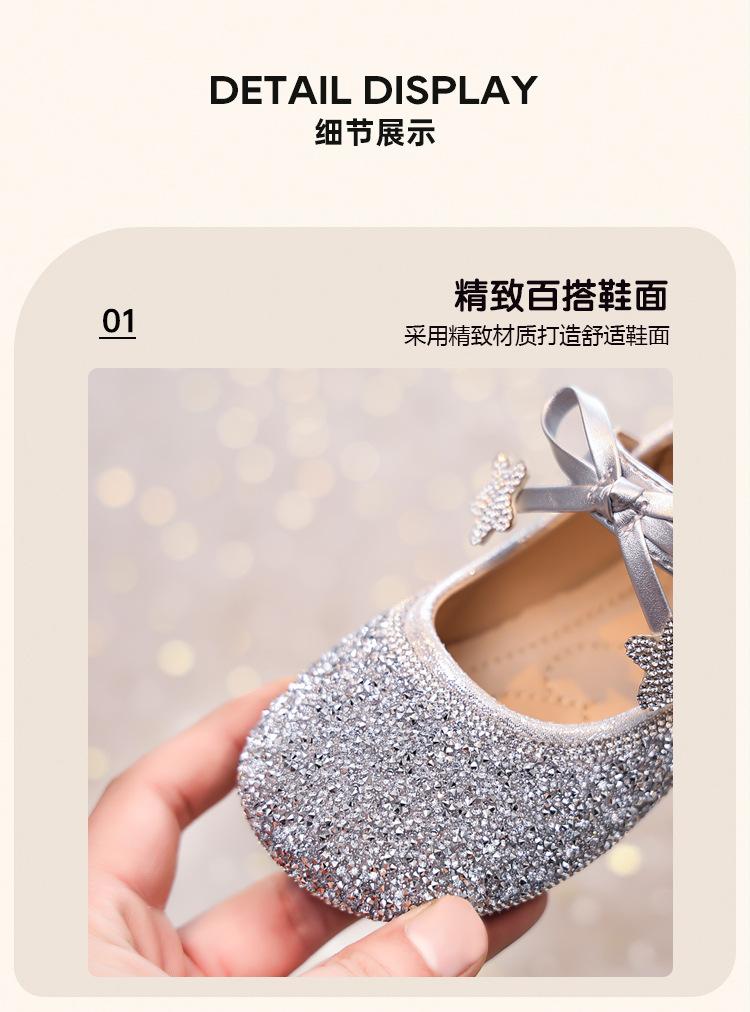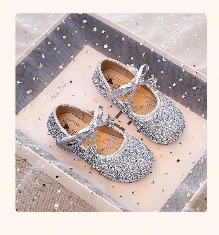 Zapatos de princesa para niñas, primavera 2025, nuevos zapatos para niños, zapatos de cristal, zapatos de cuero para bebés, zapatos Aisha, zapatos individuales de suela blanda.