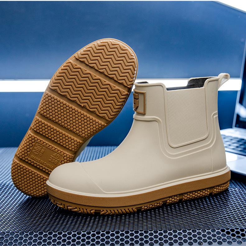 Botas de lluvia impermeables de PVC de tubo corto antideslizantes para pareja de moda transfronteriza, zapatos de agua para hombre y mujer de color sólido, botas de lluvia resistentes al desgaste para exteriores