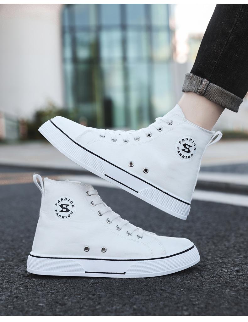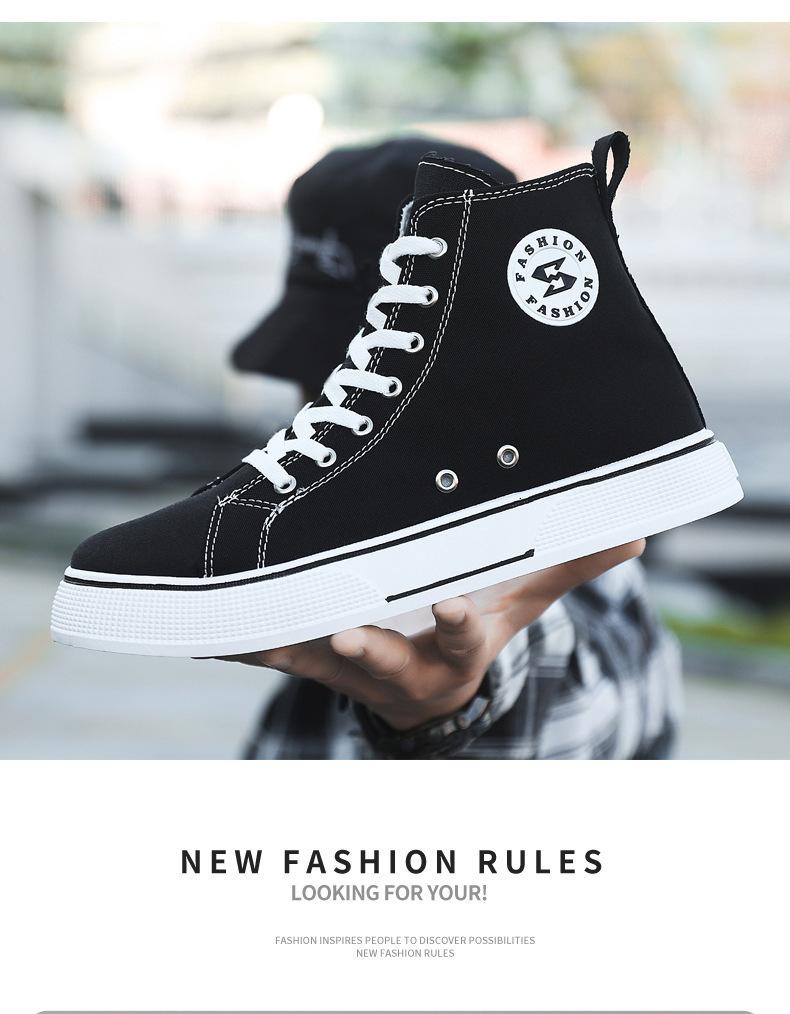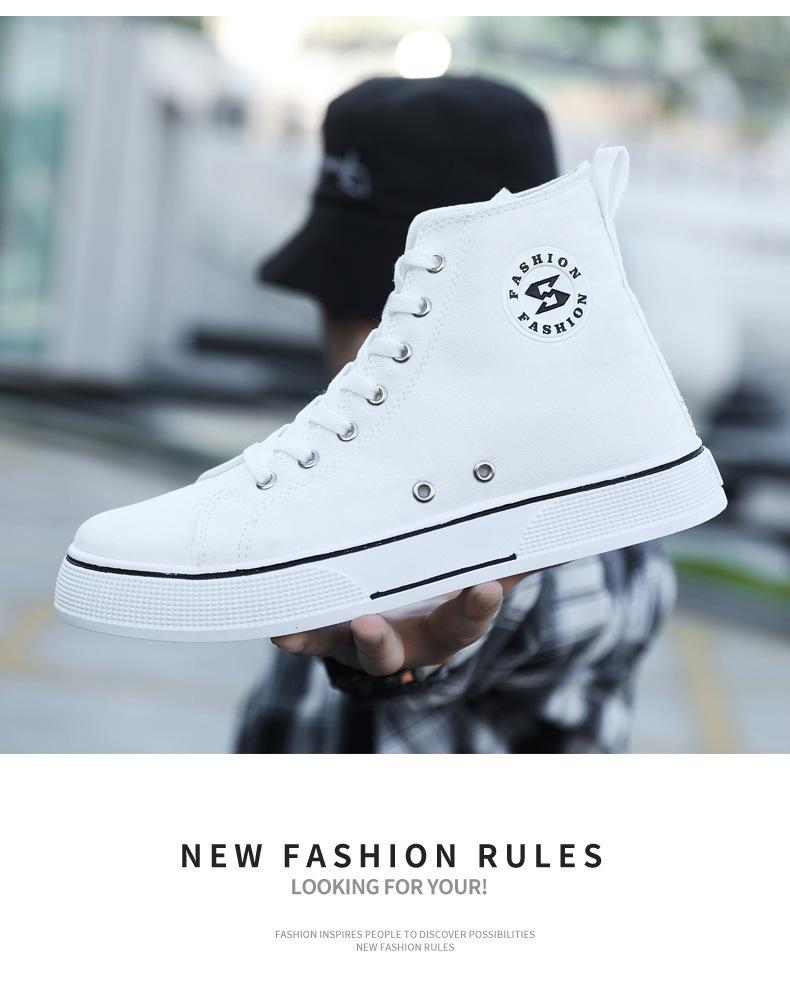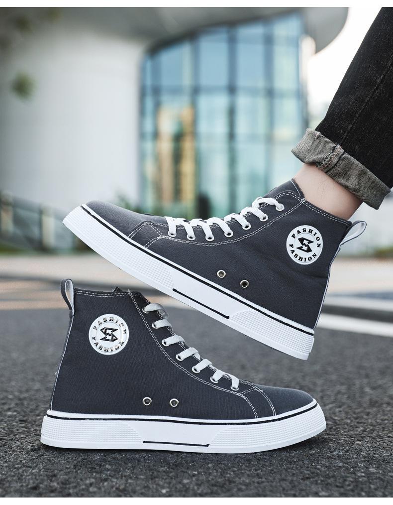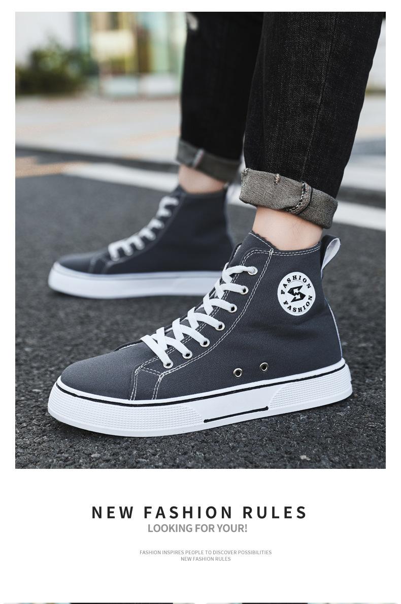 Comercio exterior al por mayor zapatos de tabla de caña alta primavera y verano nuevos zapatos planos de tela adolescentes moda exterior ligeros zapatos de hombre