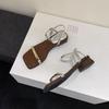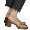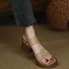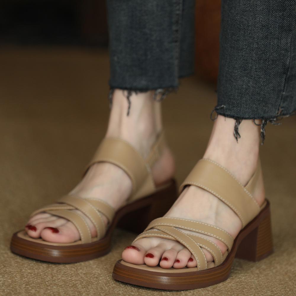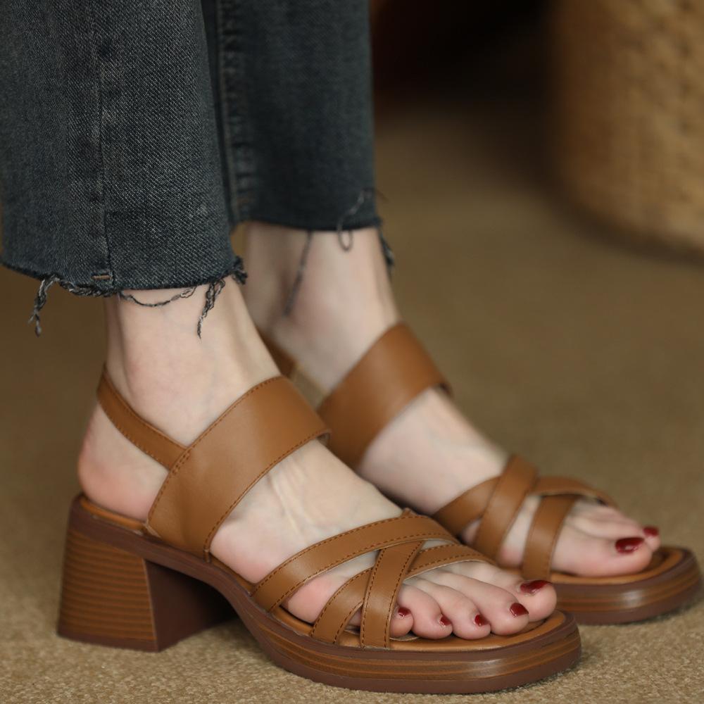 Sandalias vintage de tacón grueso con punta abierta cruzada para mujer (2025), zapatos de tacón medio con suela gruesa.