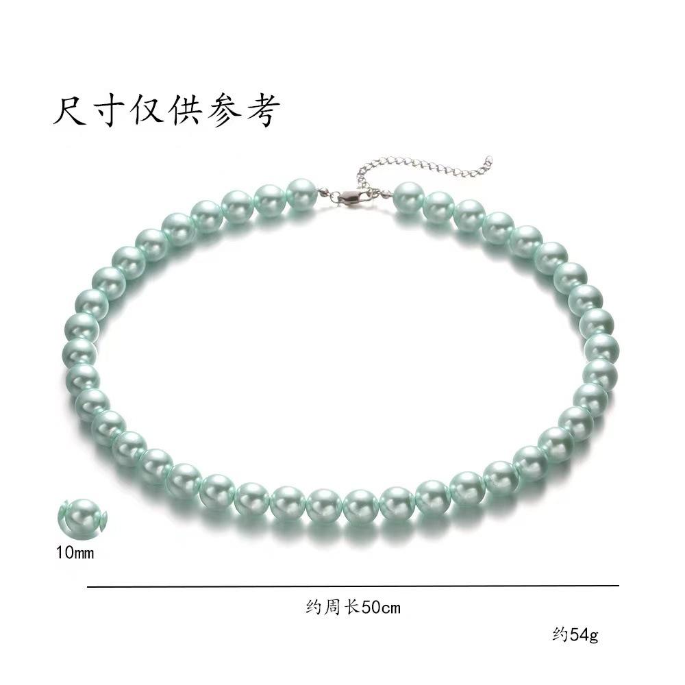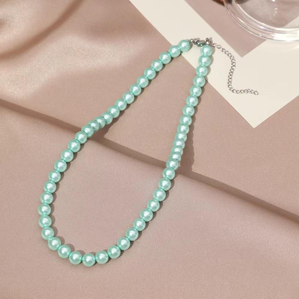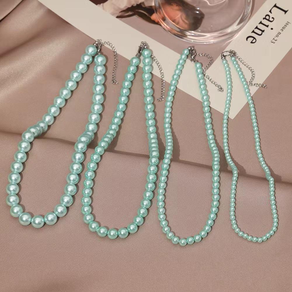 X3094 light green 4MM Shijia pearl necklace, X3095 Light Green 6MM Shijia Pearl Necklace, Steel color cross chain