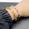 Pulsera europea y americana ins de textura de lujo ligero para mujer, pulsera de acero inoxidable, temperamento simple y moderno, cadena gruesa, joyería de mano al por mayor