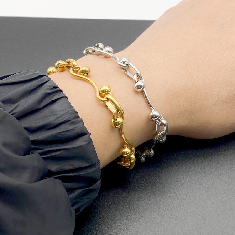 Pulsera de textura de lujo ligero ins europeo y americano para mujer, pulsera de acero inoxidable, moda simple, temperamento, pulsera de cadena gruesa, venta al por mayor
