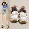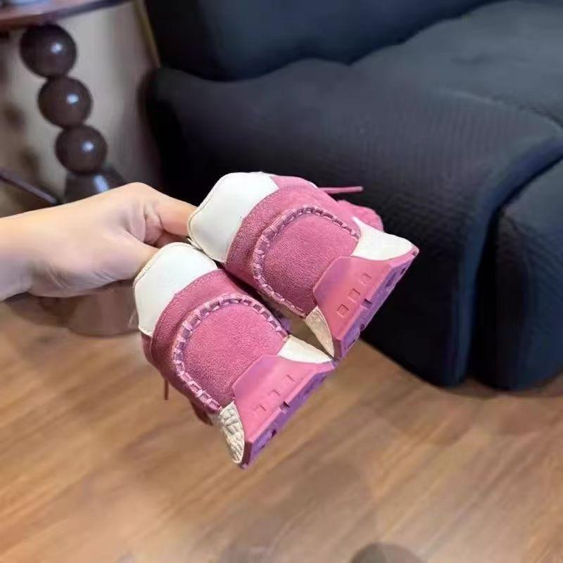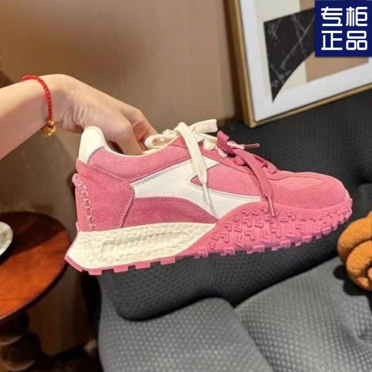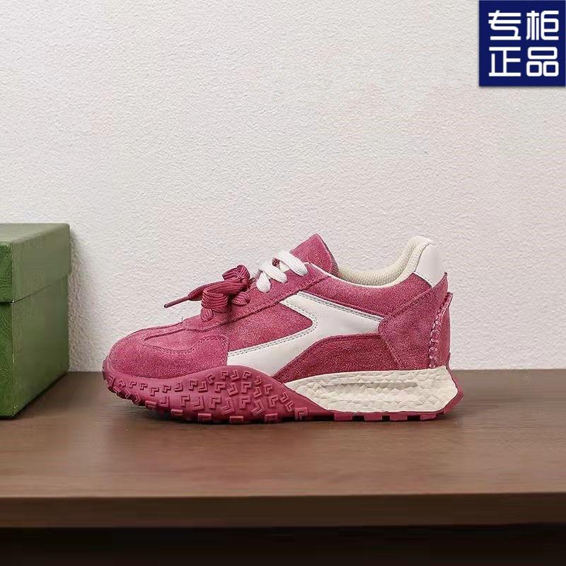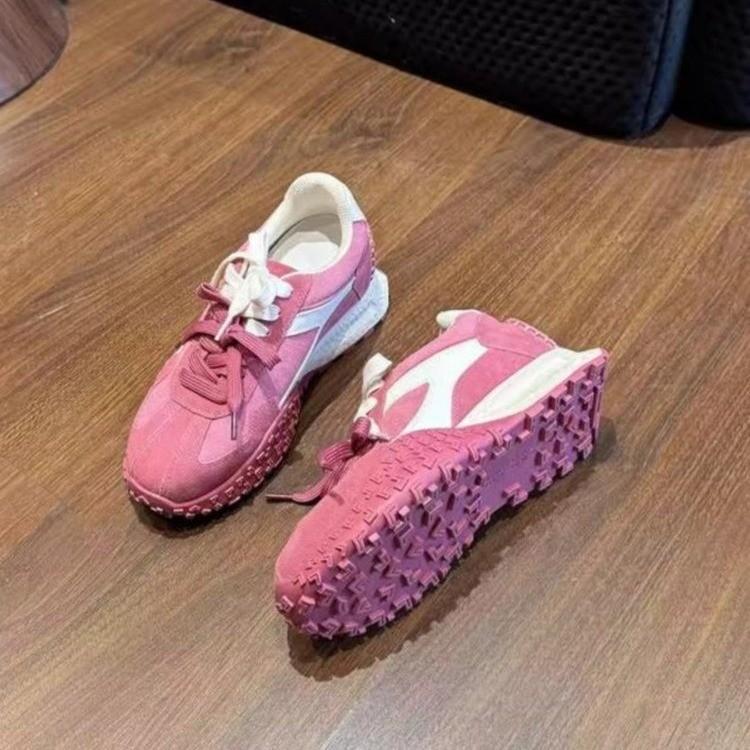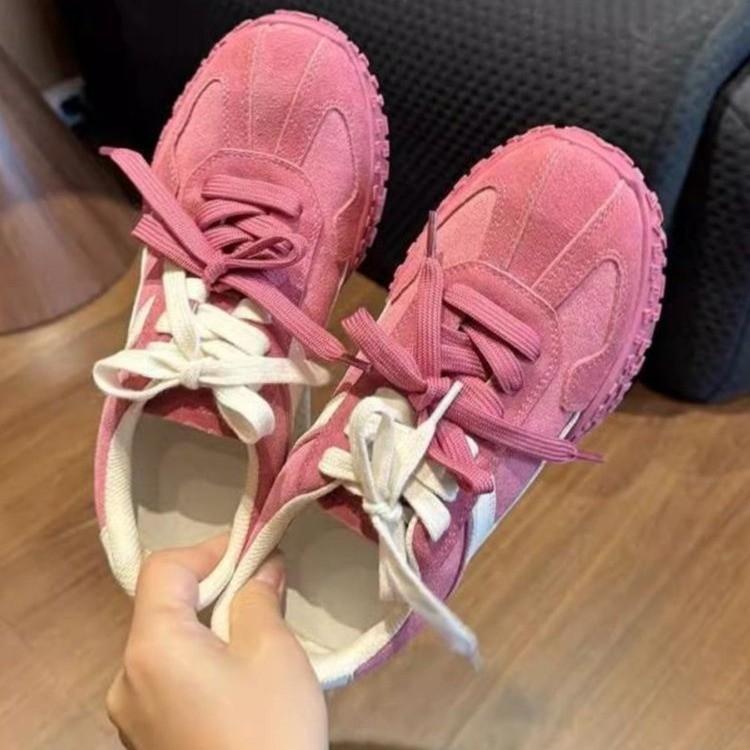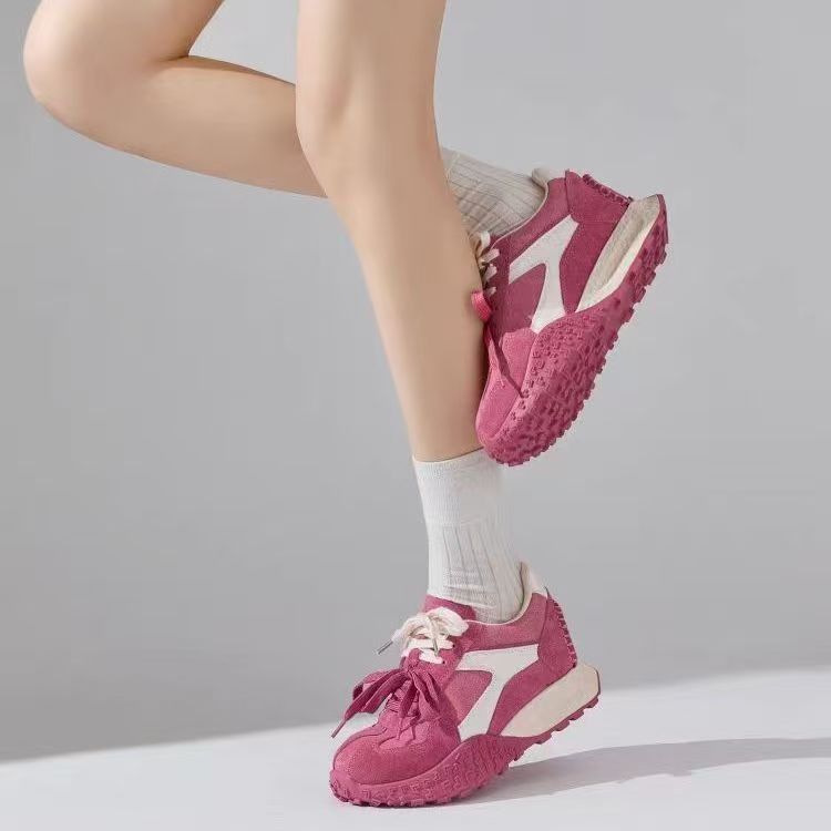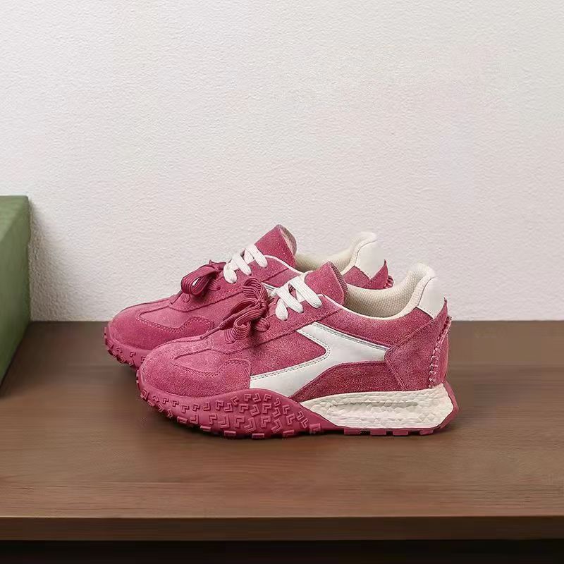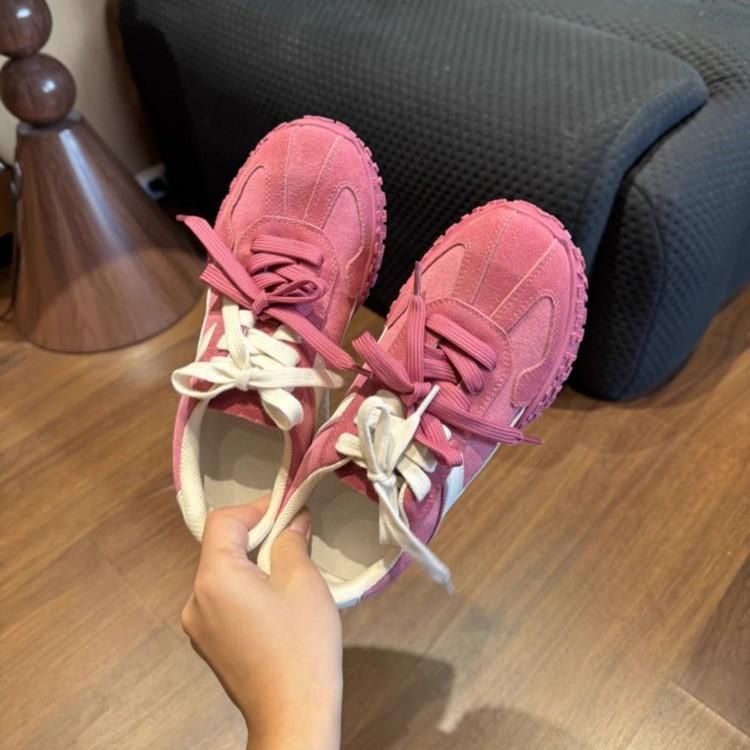 Zapatos de Entrenamiento Alemanes de Primavera y Otoño 2025 con Suela Gruesa Pequeña, Zapatos Casuales de Moda con Doble Correa, Zapatos Niche Rosa Frambuesa para Mujer