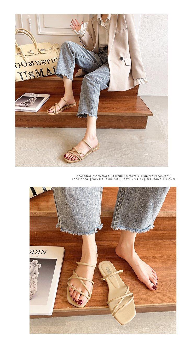Sandalias y Pantuflas para Mujer para Exterior Estilo Hada Verano 2021 Nueva Llegada a la Moda Combinan con Todo Planas de Punta Abierta Romanas Vintage
