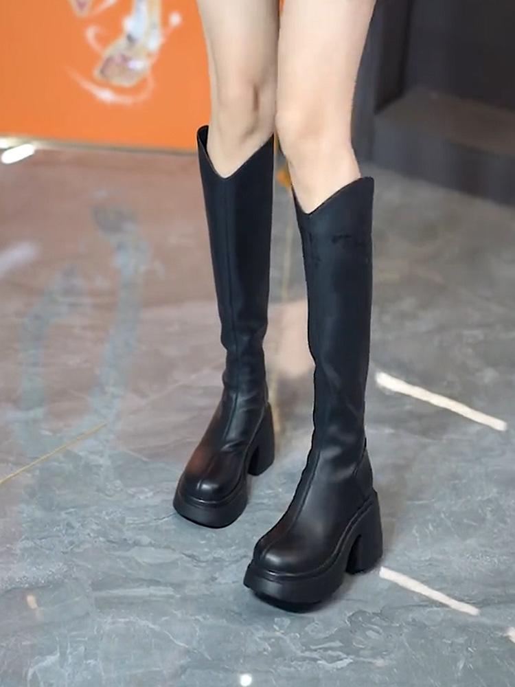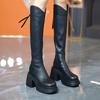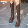 Botas altas hasta la rodilla con punta redonda para mujer, botas altas de tacón grueso y suela gruesa, con cremallera trasera, para otoño e invierno, 2023