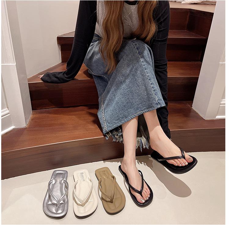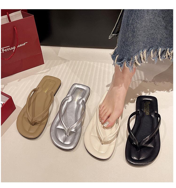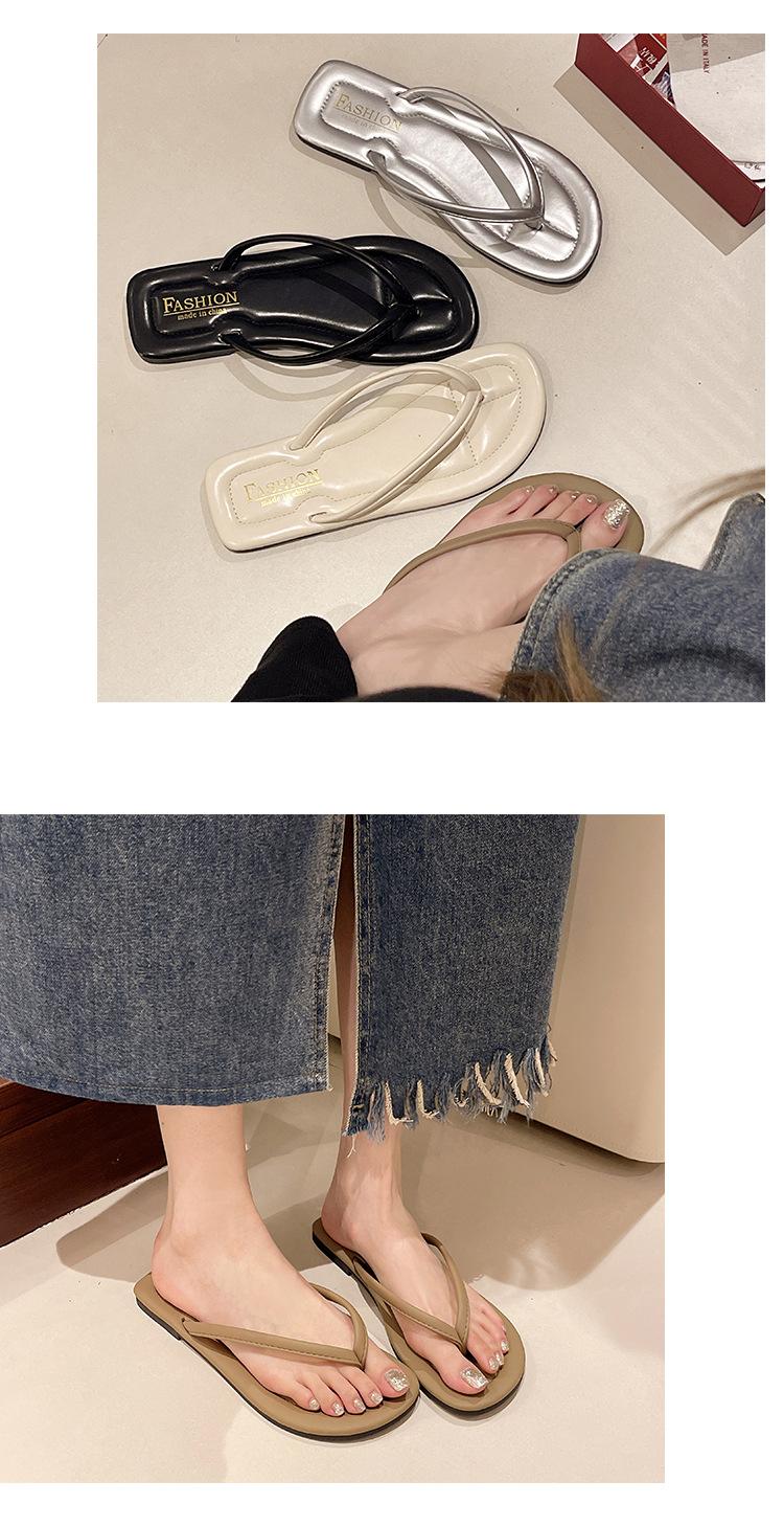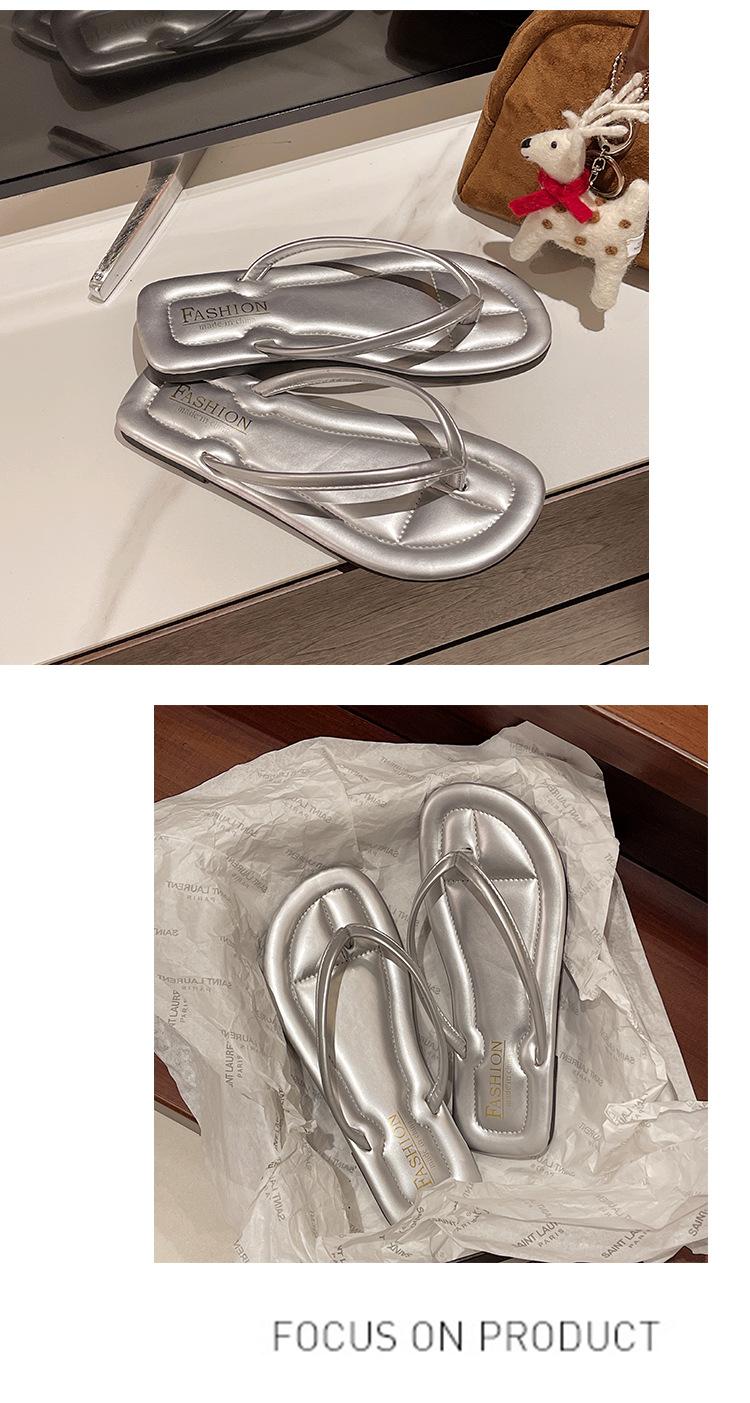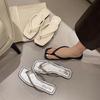 Chanclas plateadas Conjunto de verano para mujer 2025 Nuevo Ins Moderno Versátil Suela suave Plano Antideslizante Sandalias de playa