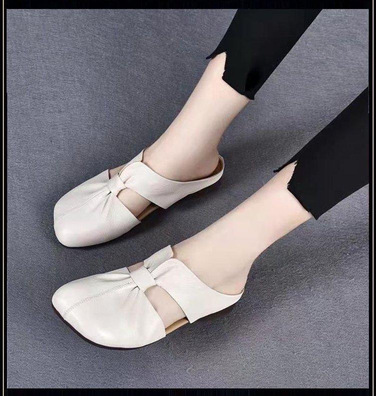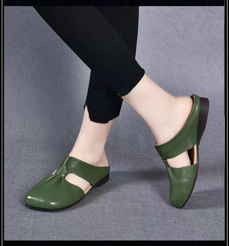 Bolsa de Cuero Suave Cabeza Media Pantuflas de Verano para Mujer 2025 Nuevas Pantuflas Planas de Verano para Mujer Suela Suave Combinan con Todo Zapatos de Madre