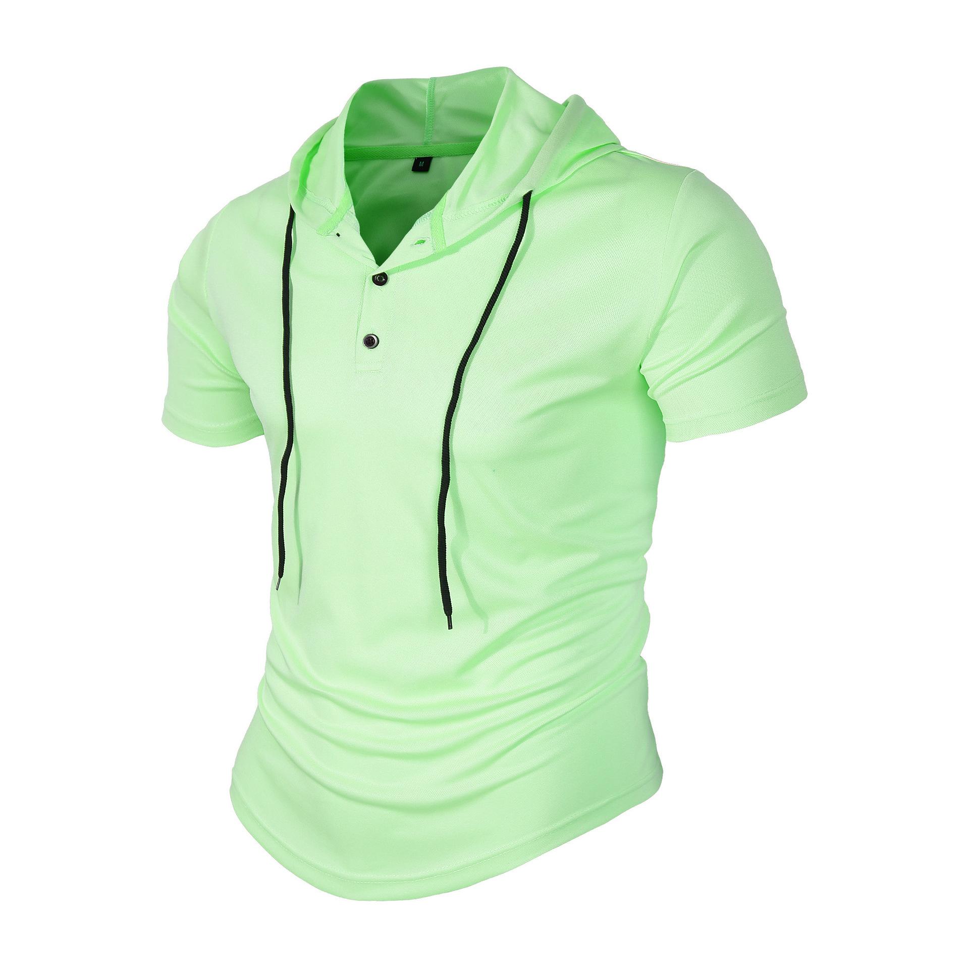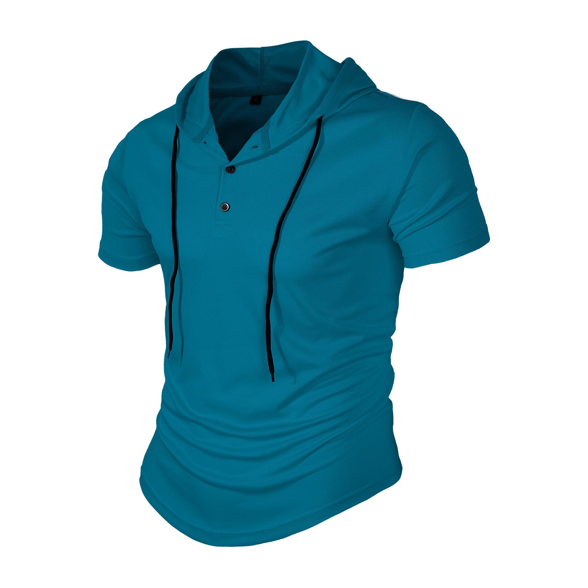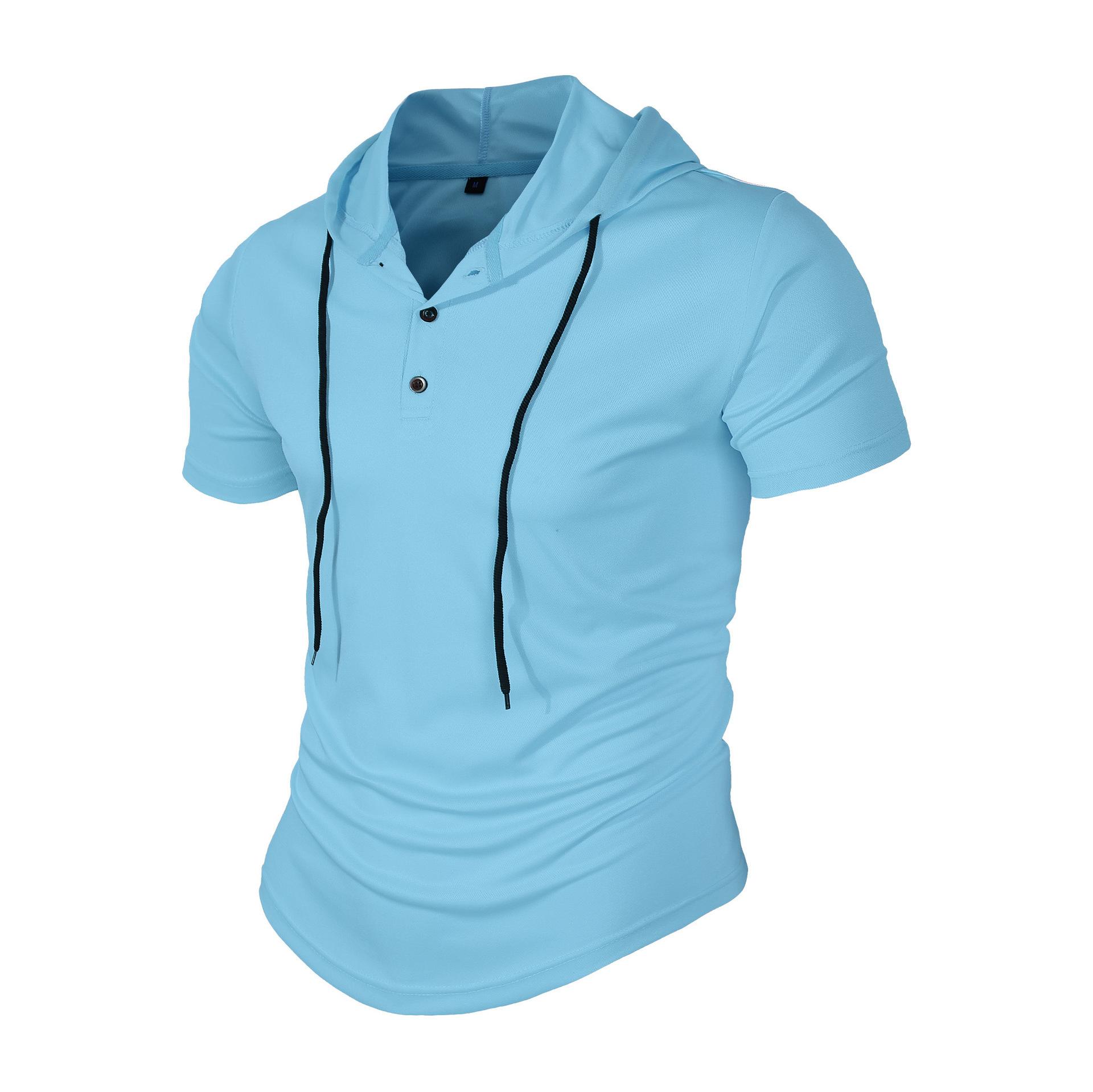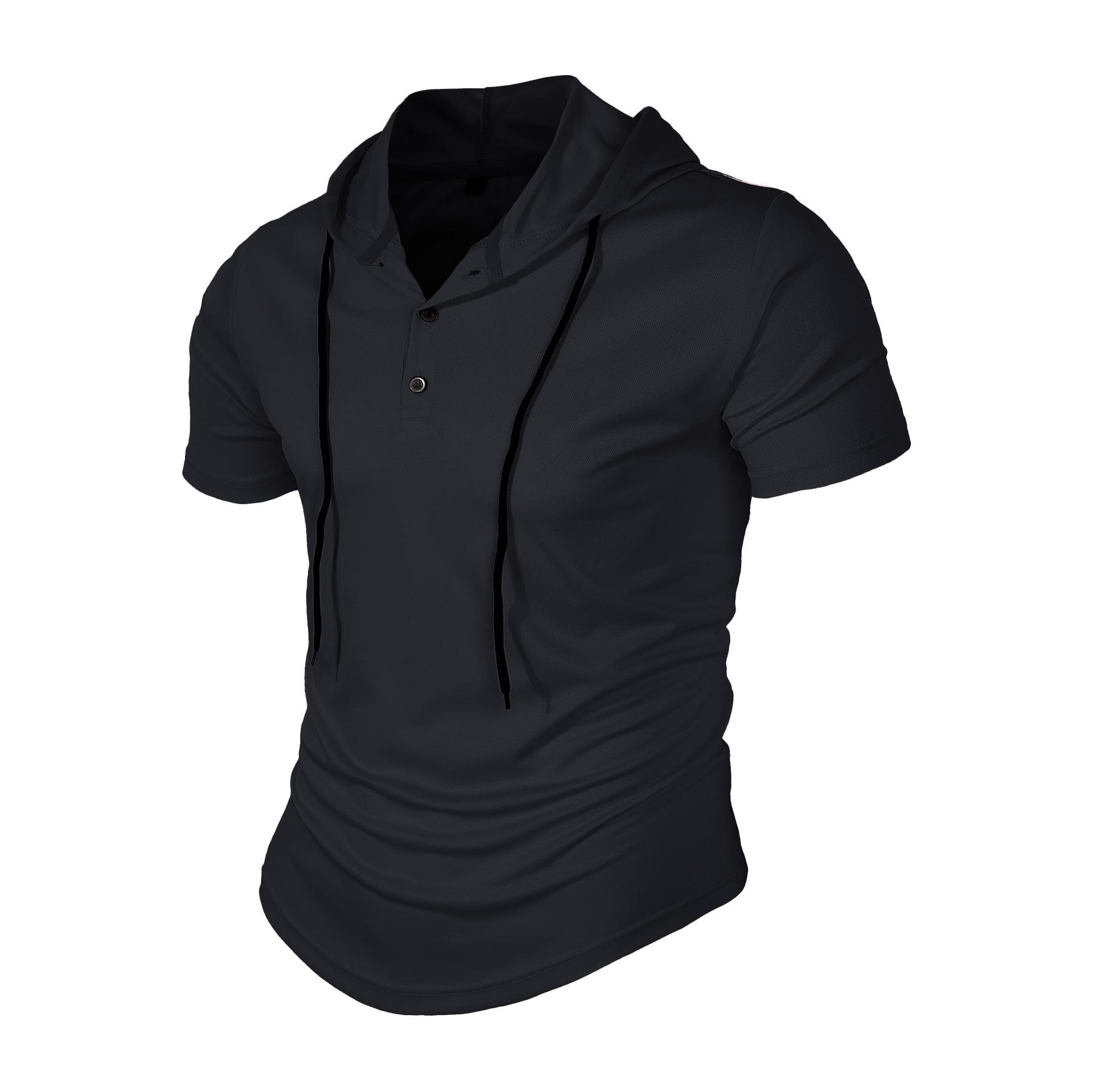 Camiseta deportiva de manga corta con capucha para hombre, estilo europeo y americano, de verano, con capucha, de comercio exterior, estilo americano Henry