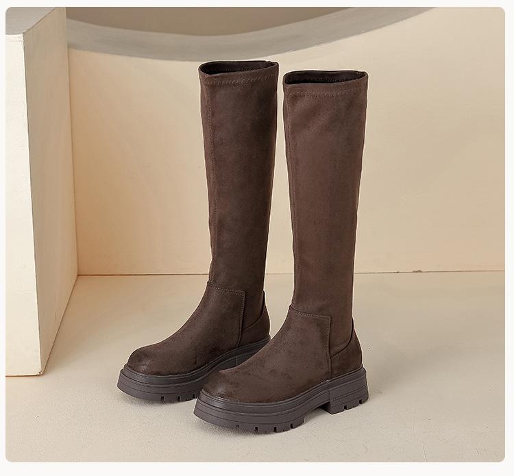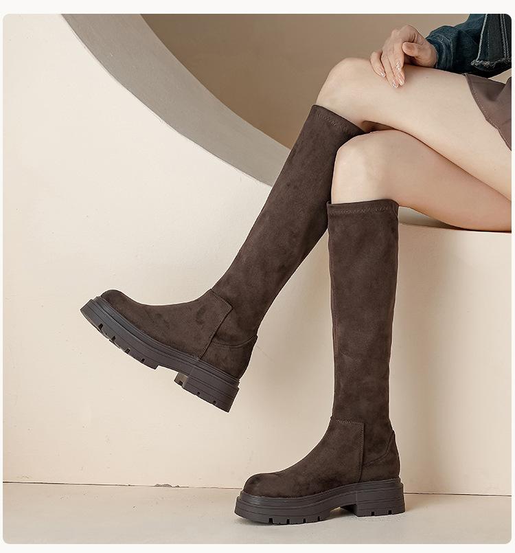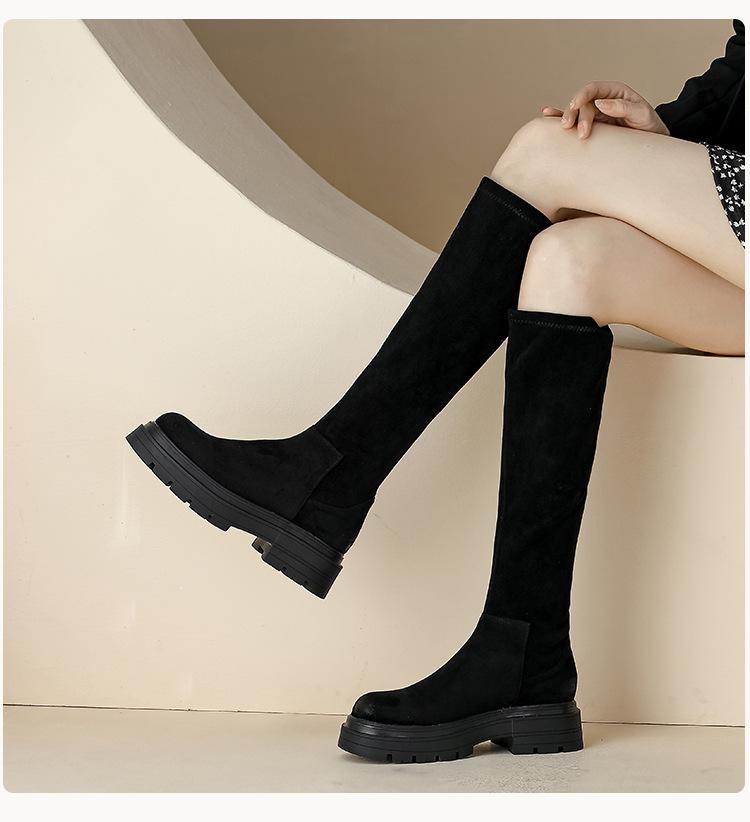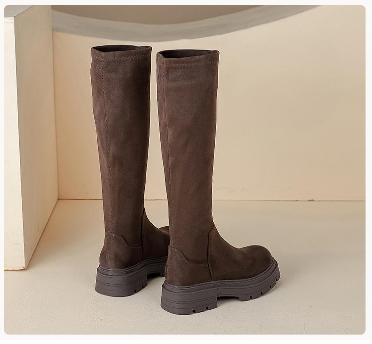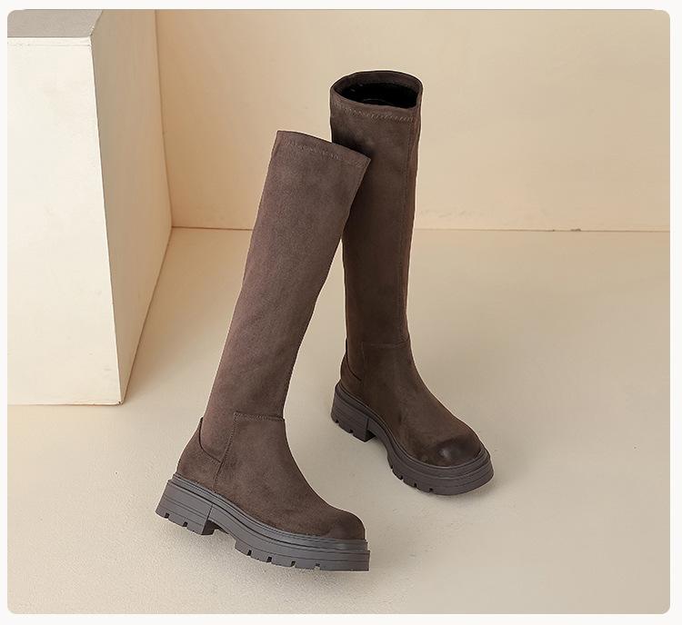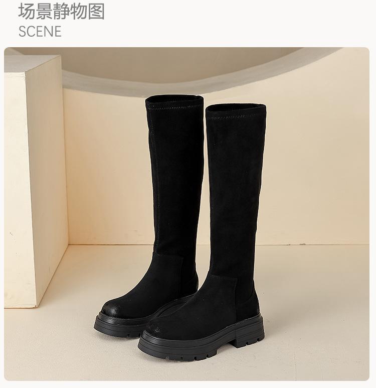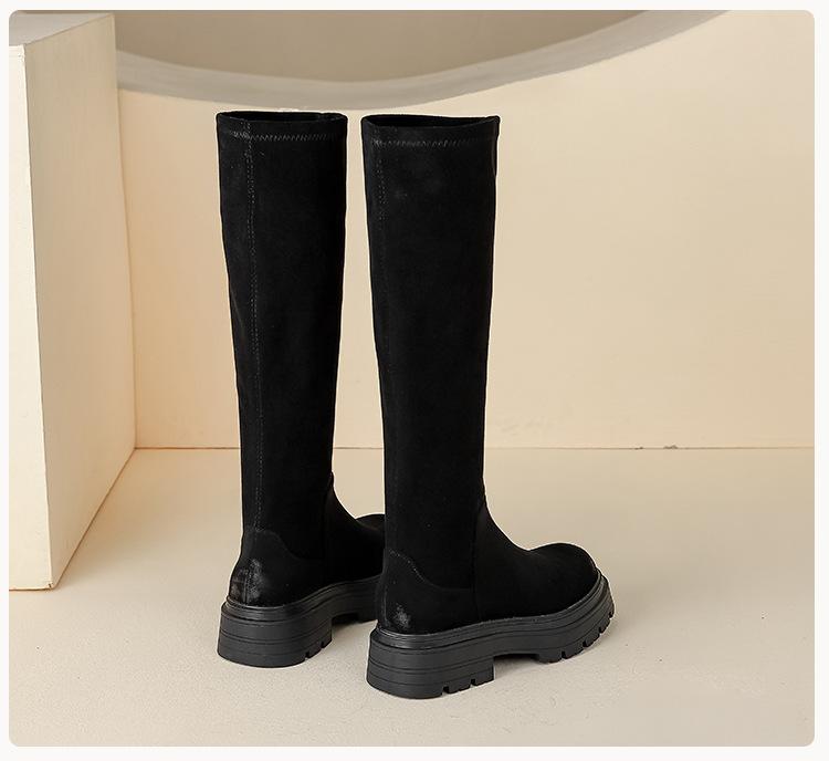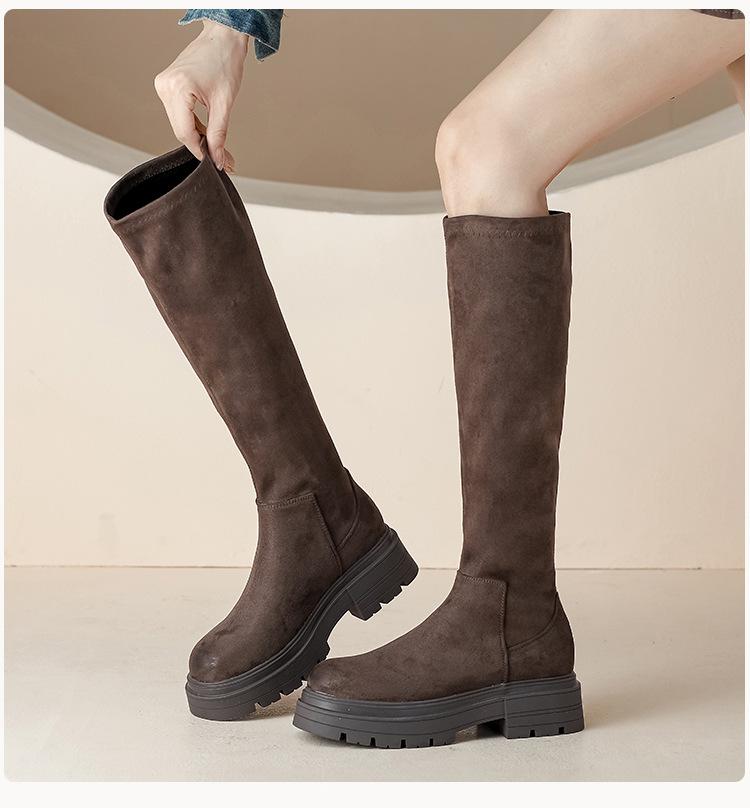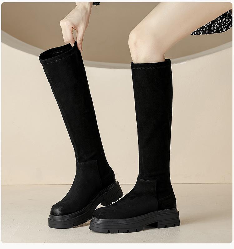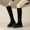 Botas de gamuza elástica, botas ajustadas, nuevo estilo 2024, botas hasta la rodilla, botas de caballero sin cordones con suela gruesa para mujer.