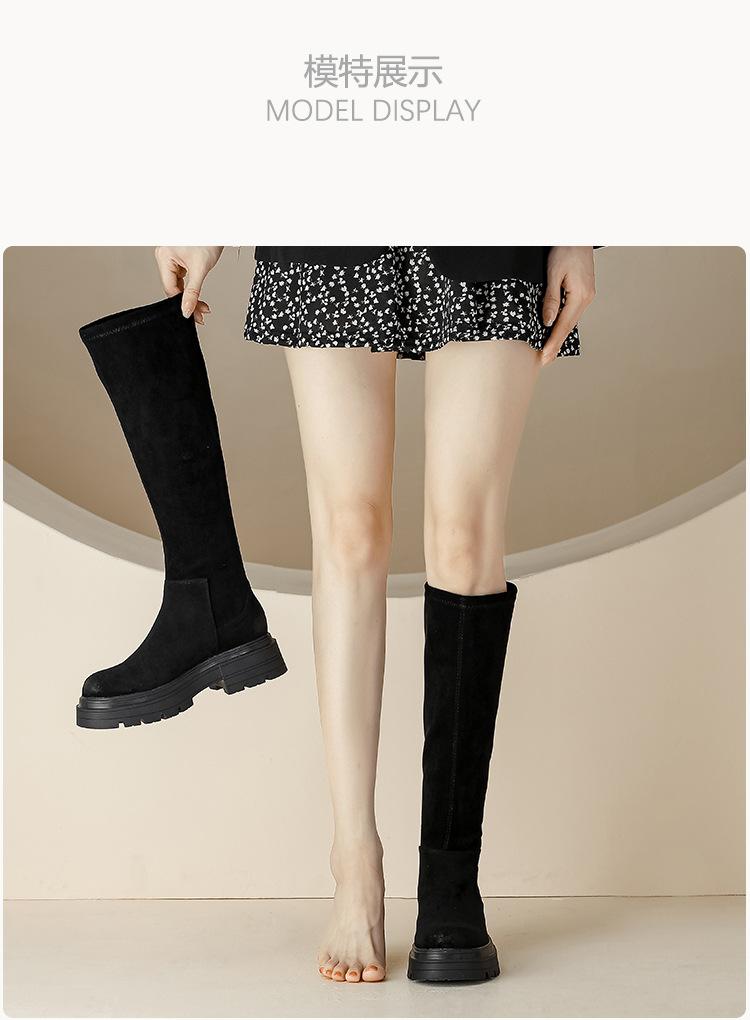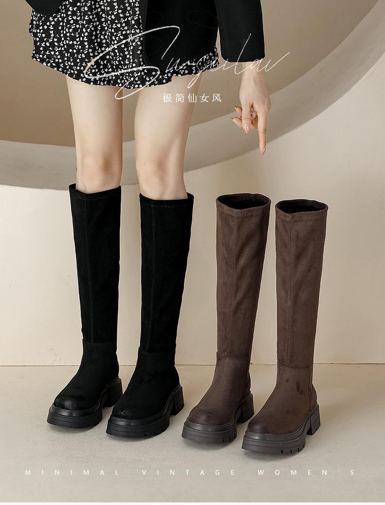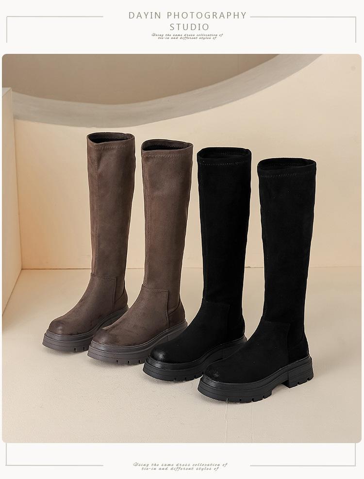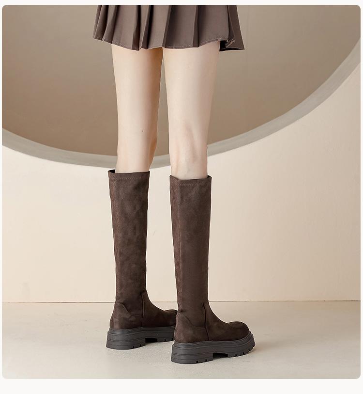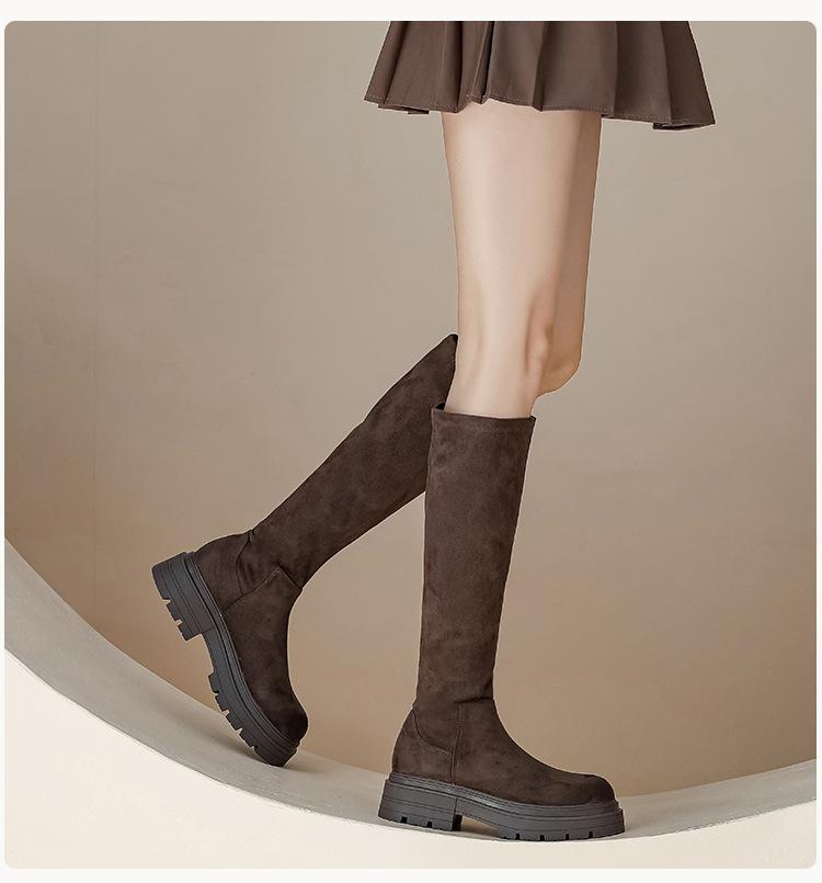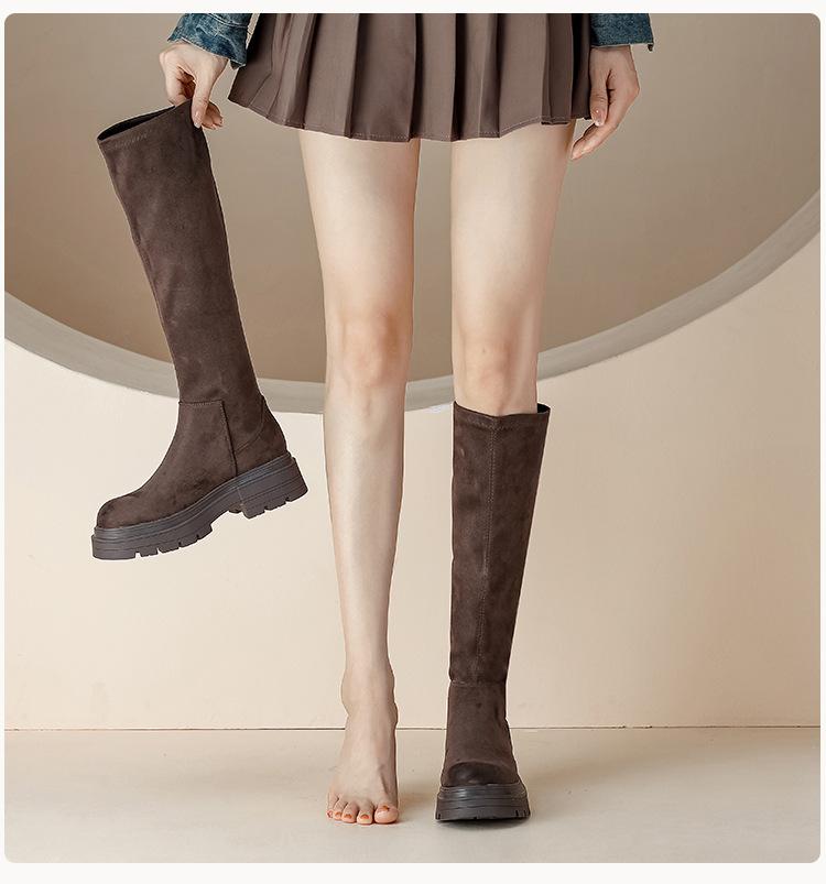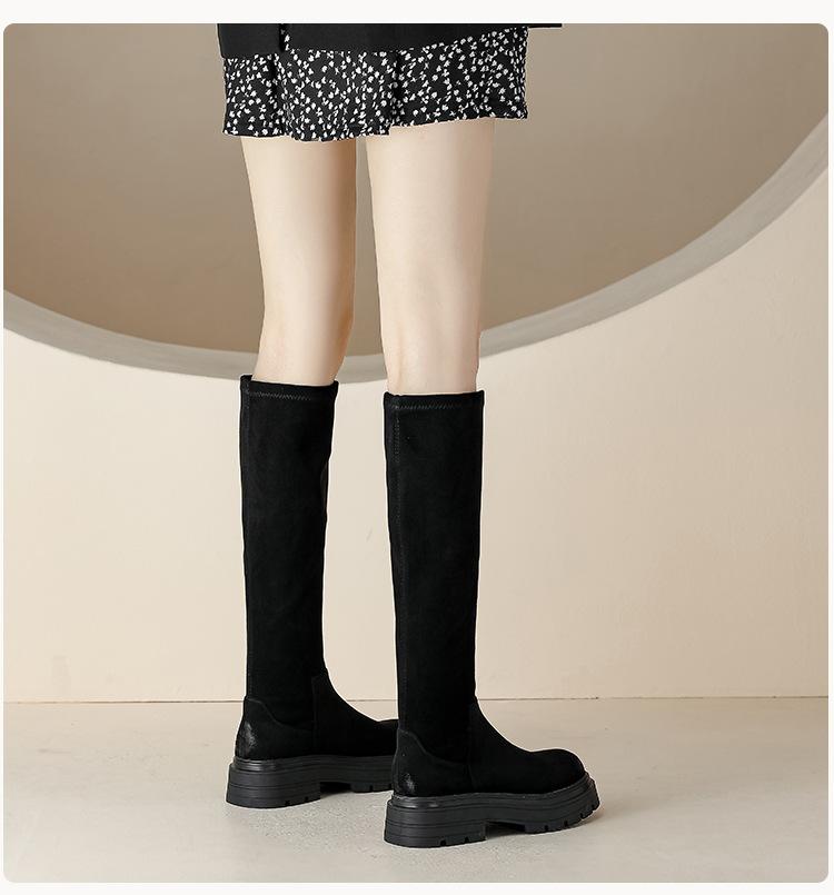 Botas de gamuza elástica, botas ajustadas, nuevo estilo 2024, botas hasta la rodilla, botas de caballero sin cordones con suela gruesa para mujer.