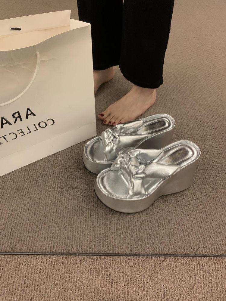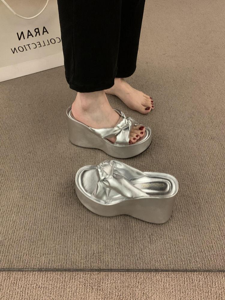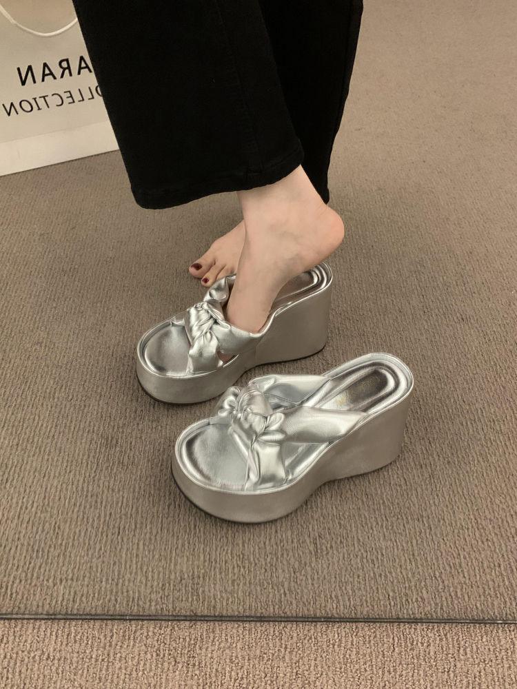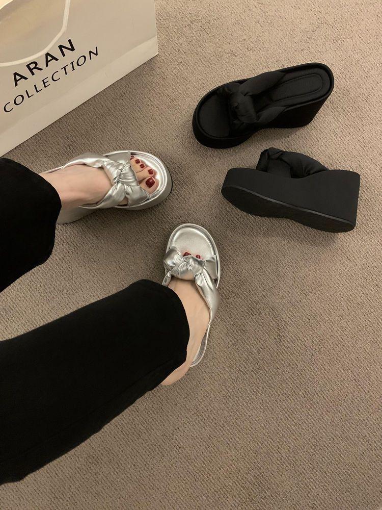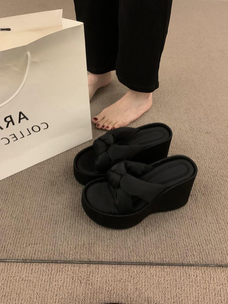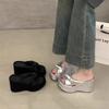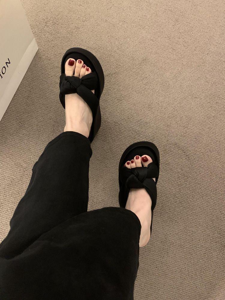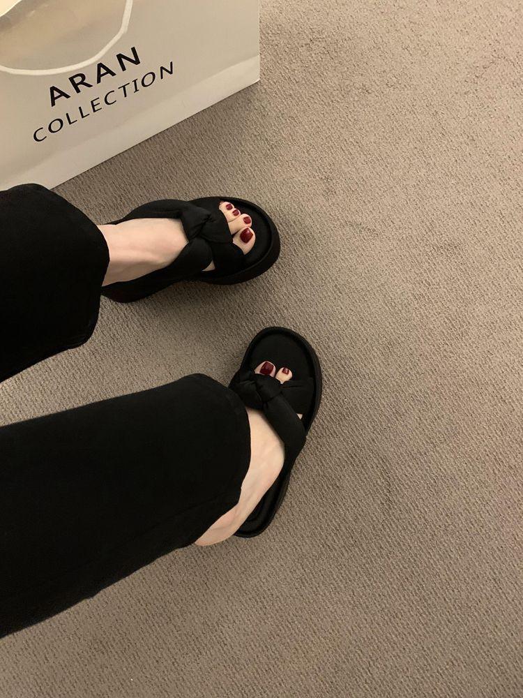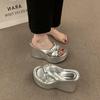 Sandalias de Cuña Pequeñas de Suela Gruesa para Aumentar la Altura para Mujer para Usar en el Exterior 2025 Primavera Nuevo Lazo Trenzado Tacones Altos