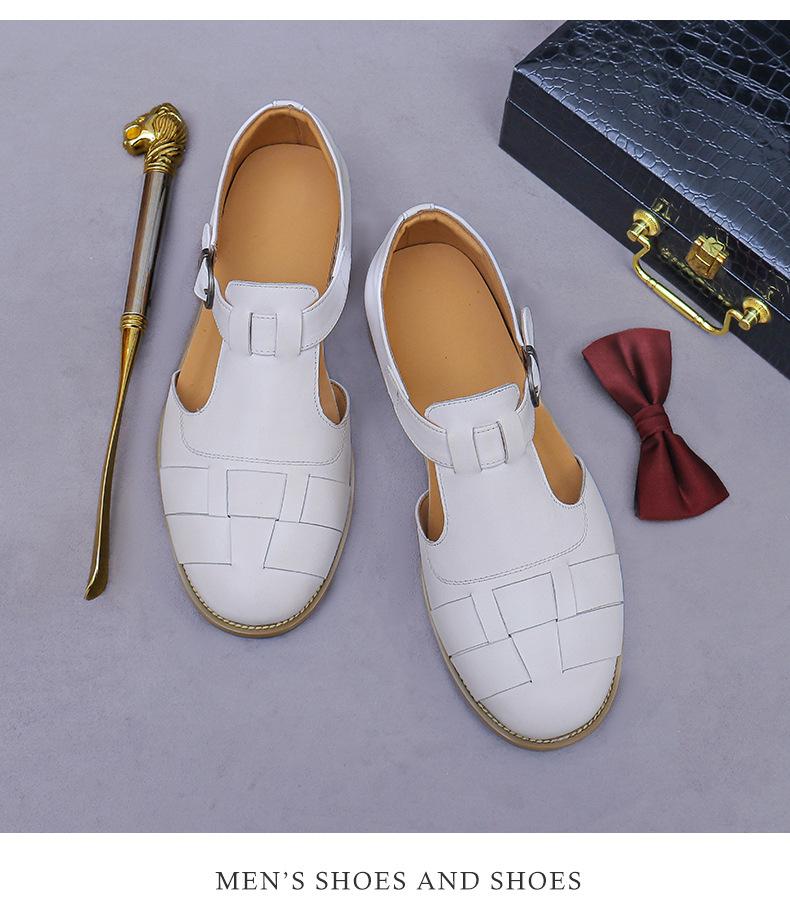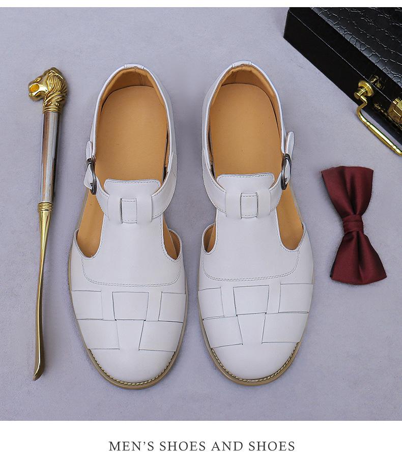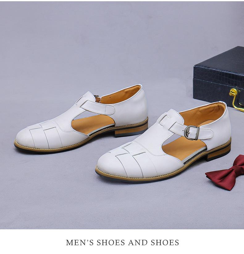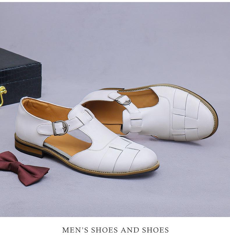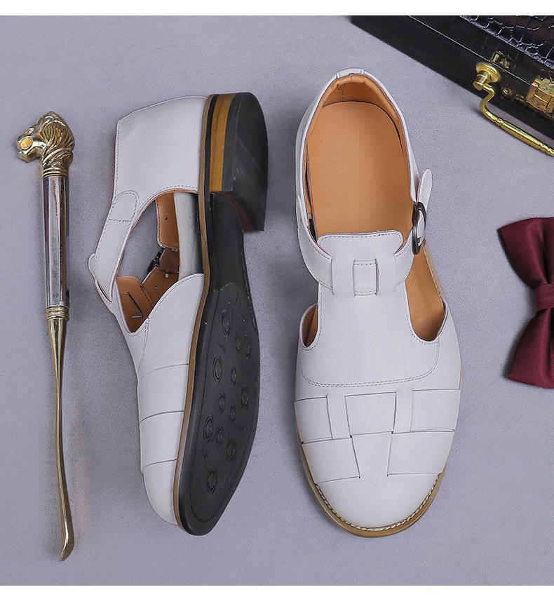 Sandalias de cuero para hombre, de cuero genuino, de verano 2025, ligeras, antideslizantes, de piel de vacuno, color blanco claro, con hebilla. Sandalias con hebilla para hombre.
