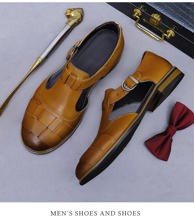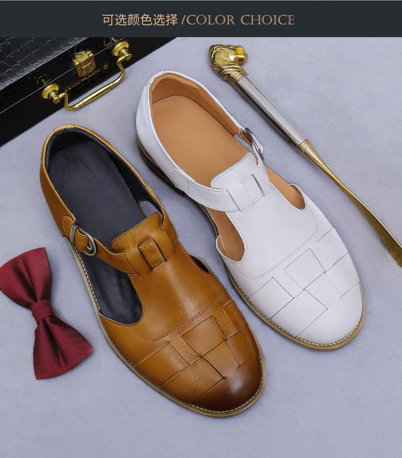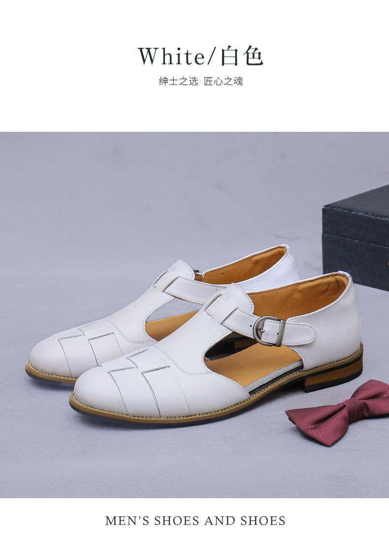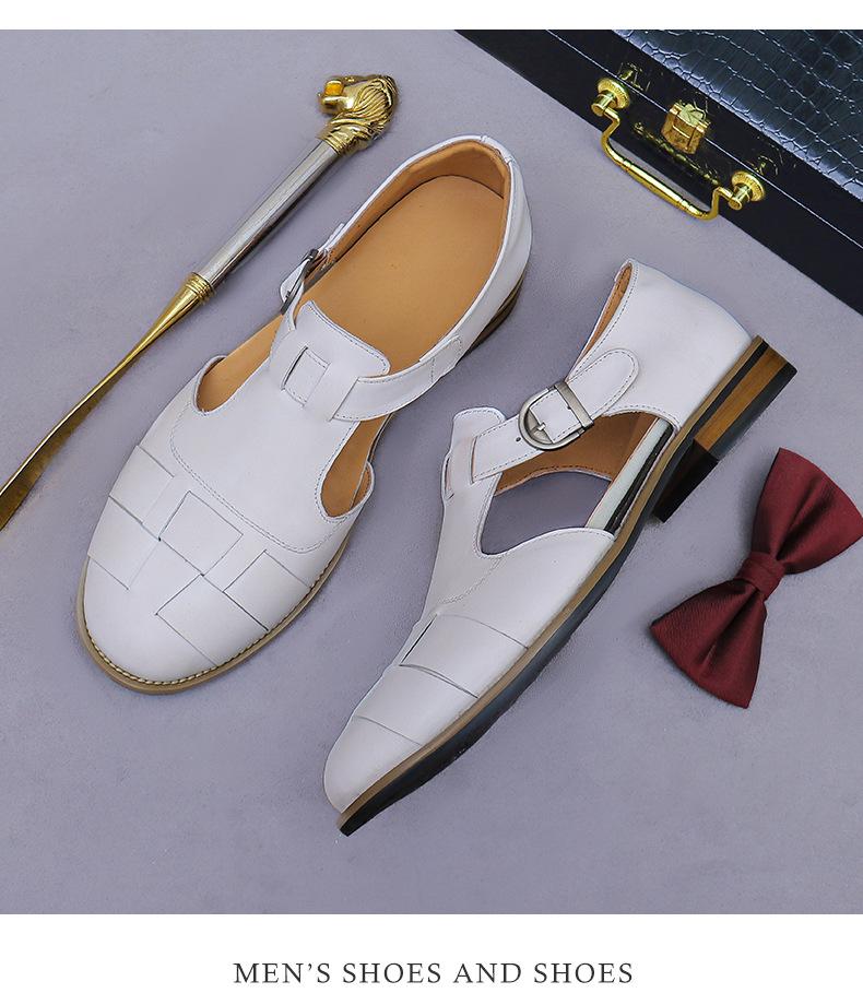 Sandalias de cuero para hombre, de cuero genuino, de verano 2025, ligeras, antideslizantes, de piel de vacuno, color blanco claro, con hebilla. Sandalias con hebilla para hombre.