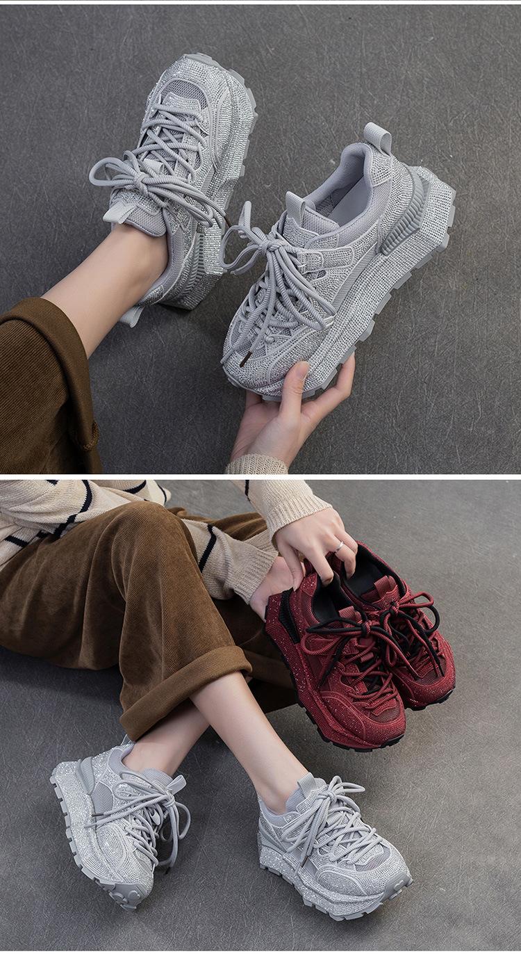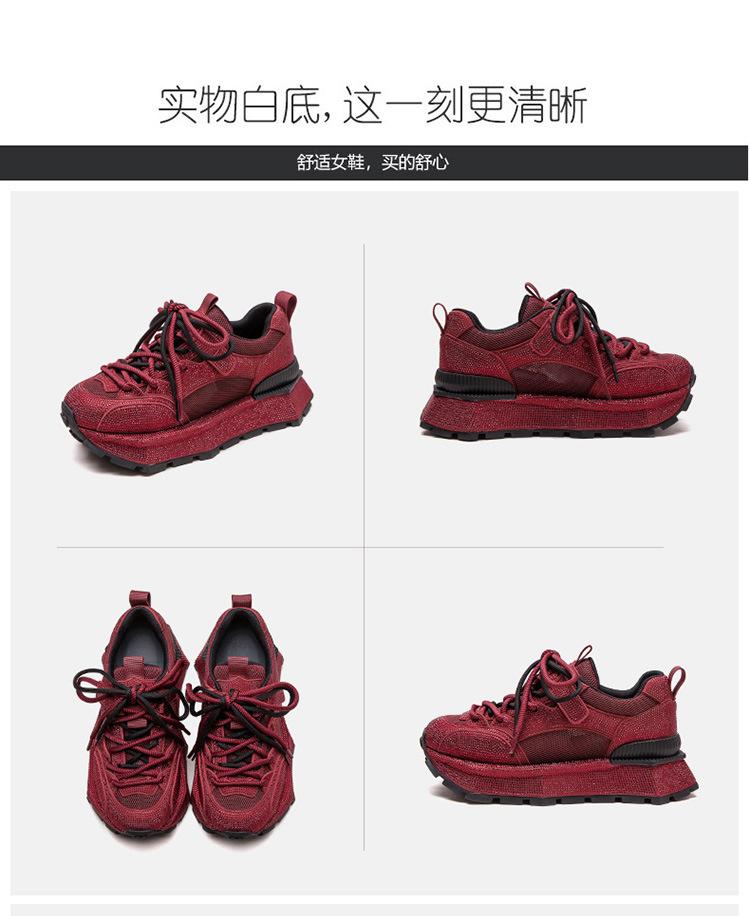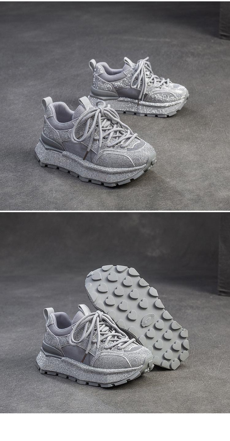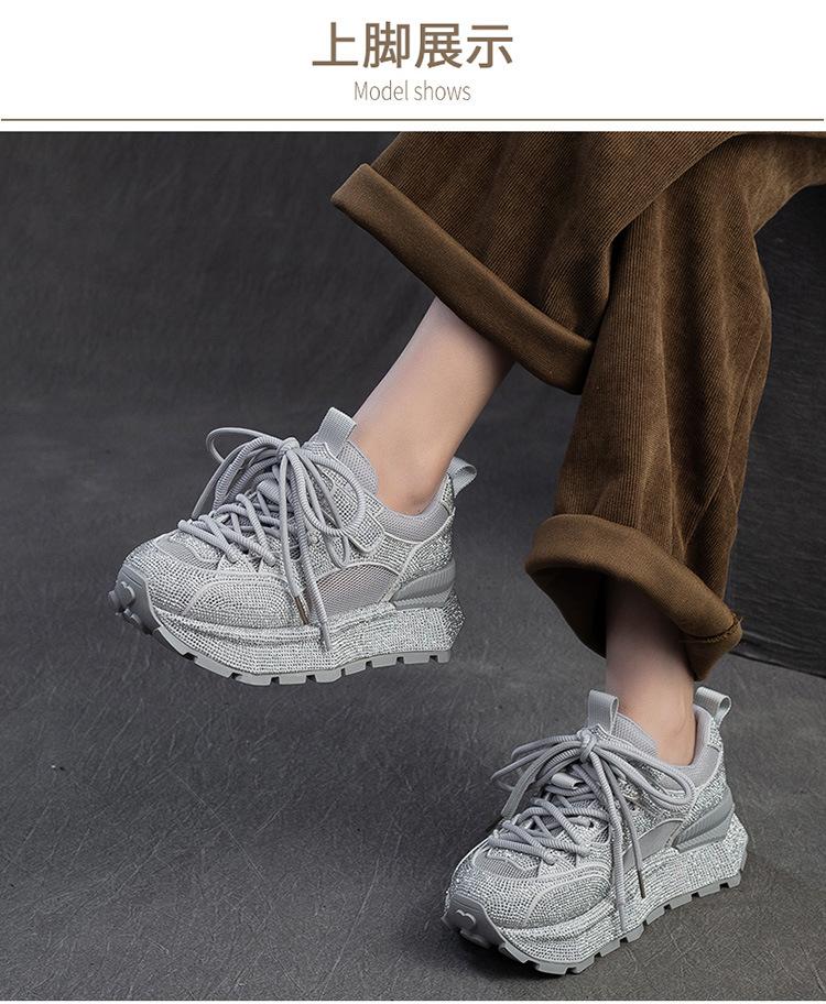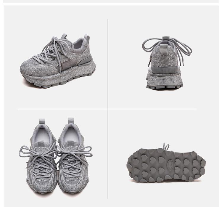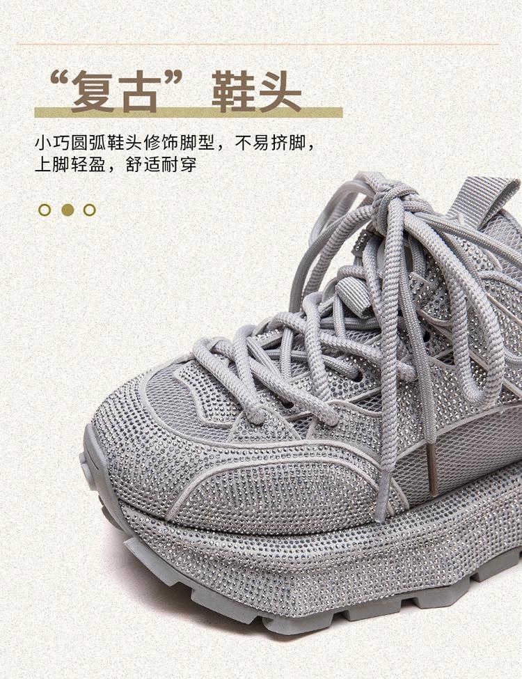Shanghai Jiedu 2025 Verano Nuevo Malla Transpirable Superficie Pedrería Flash Fondo Grueso Zapatos Torre Casual Lujo Ligero Combinable Zapatos de Mujer