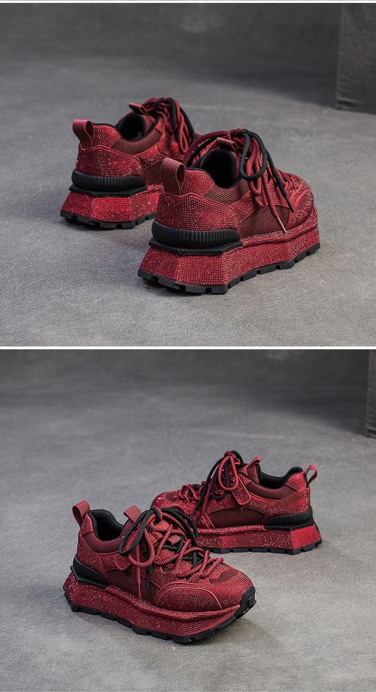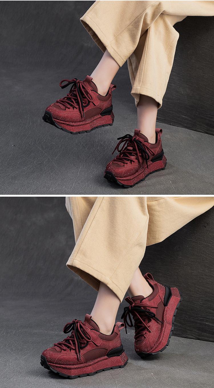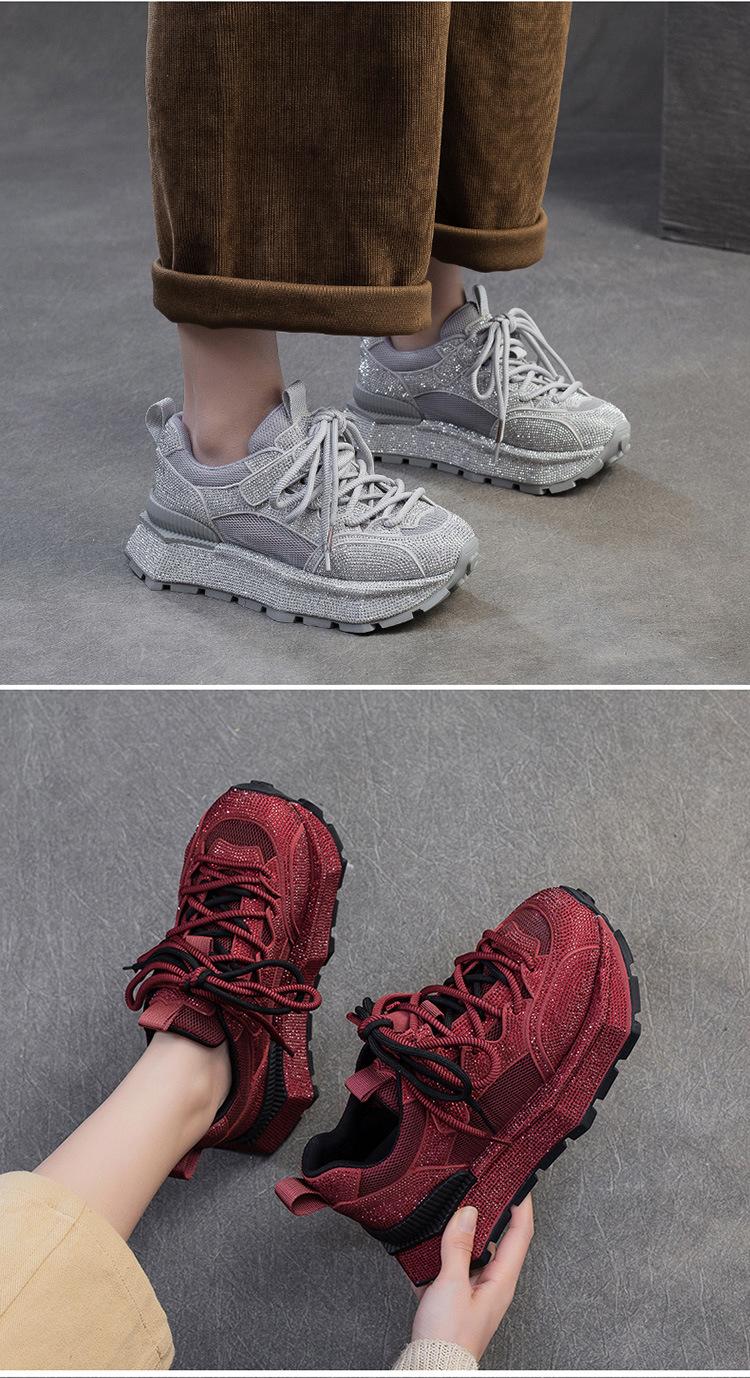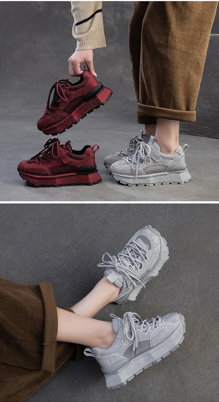 Shanghai Jiedu 2025 Verano Nuevo Malla Transpirable Superficie Pedrería Flash Fondo Grueso Zapatos Torre Casual Lujo Ligero Combinable Zapatos de Mujer