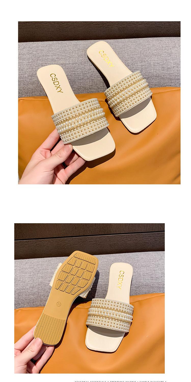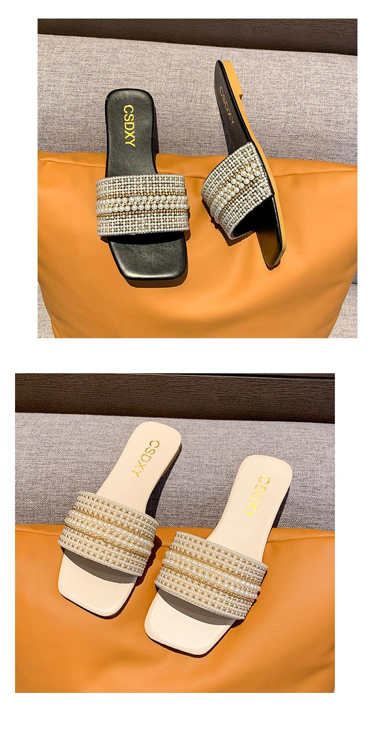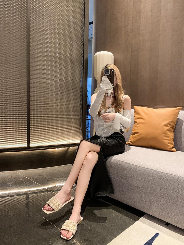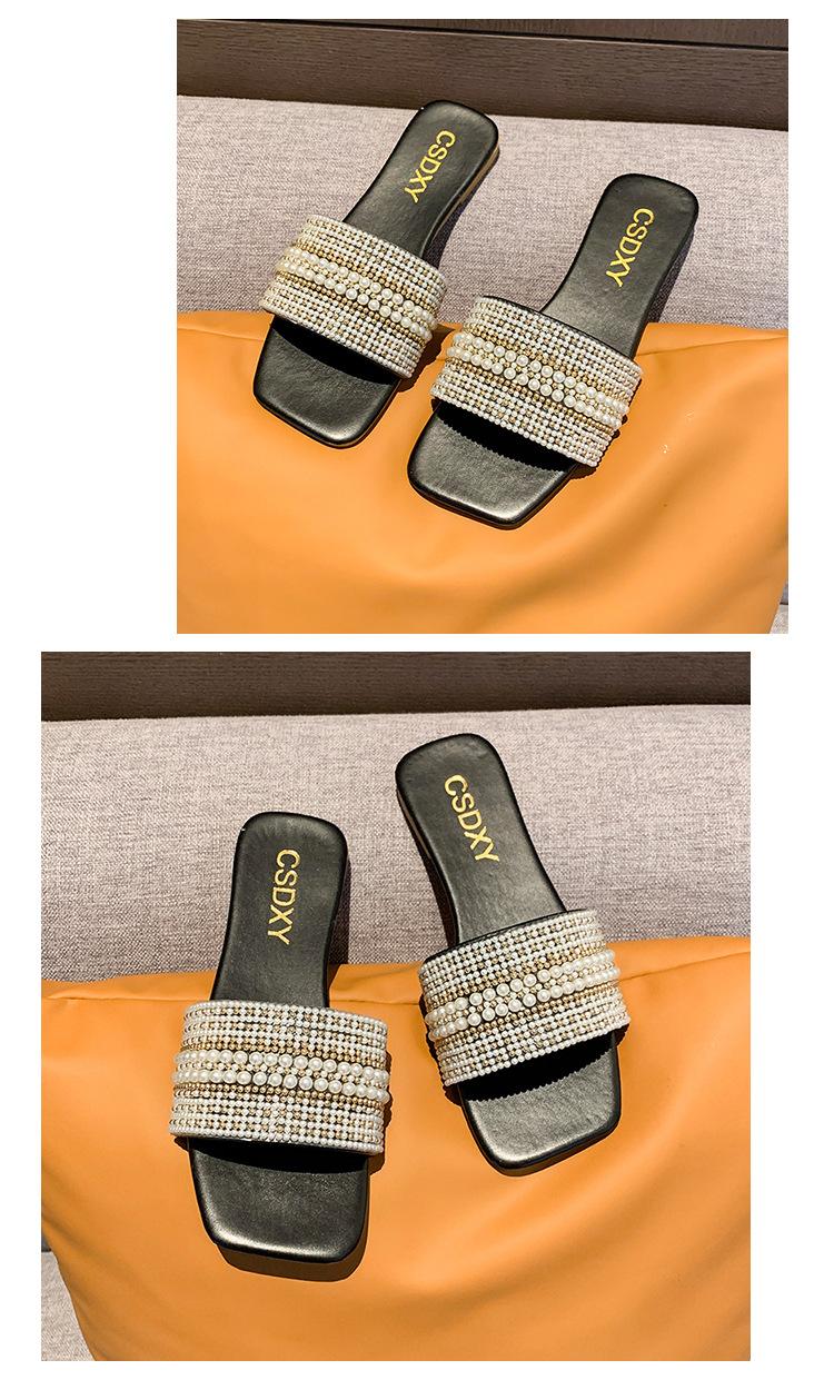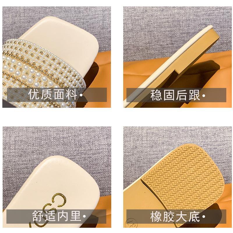 2025 Verano Nuevo Transfronterizo Talla Grande Perla Zapatillas Planas Conjunto de Mujer Punta Cuadrada Punta Abierta Diapositivas Sandalias de Moda