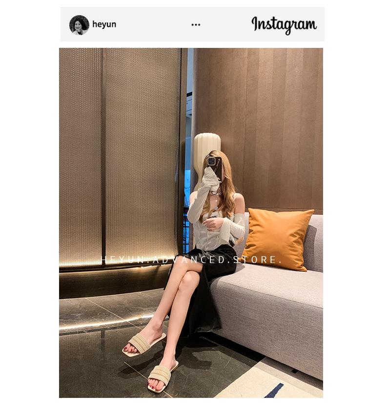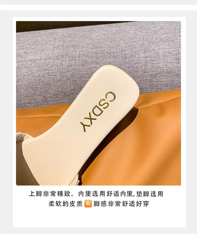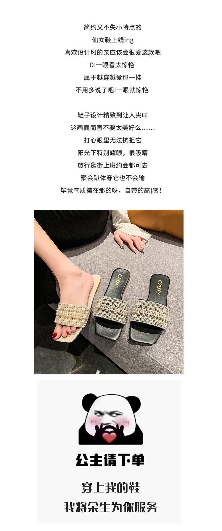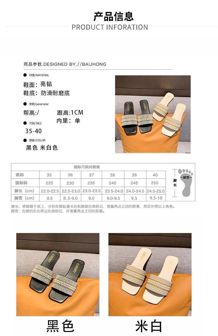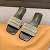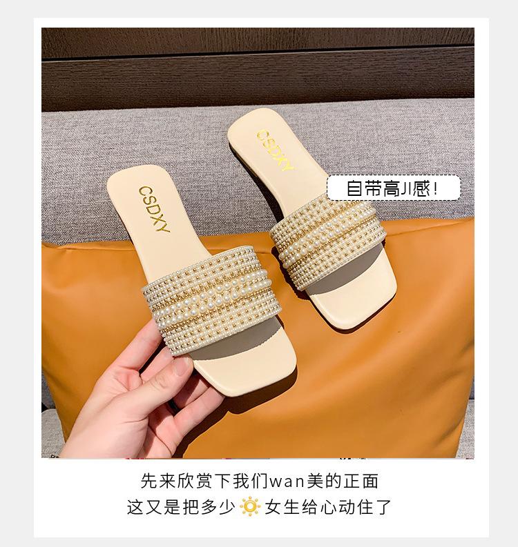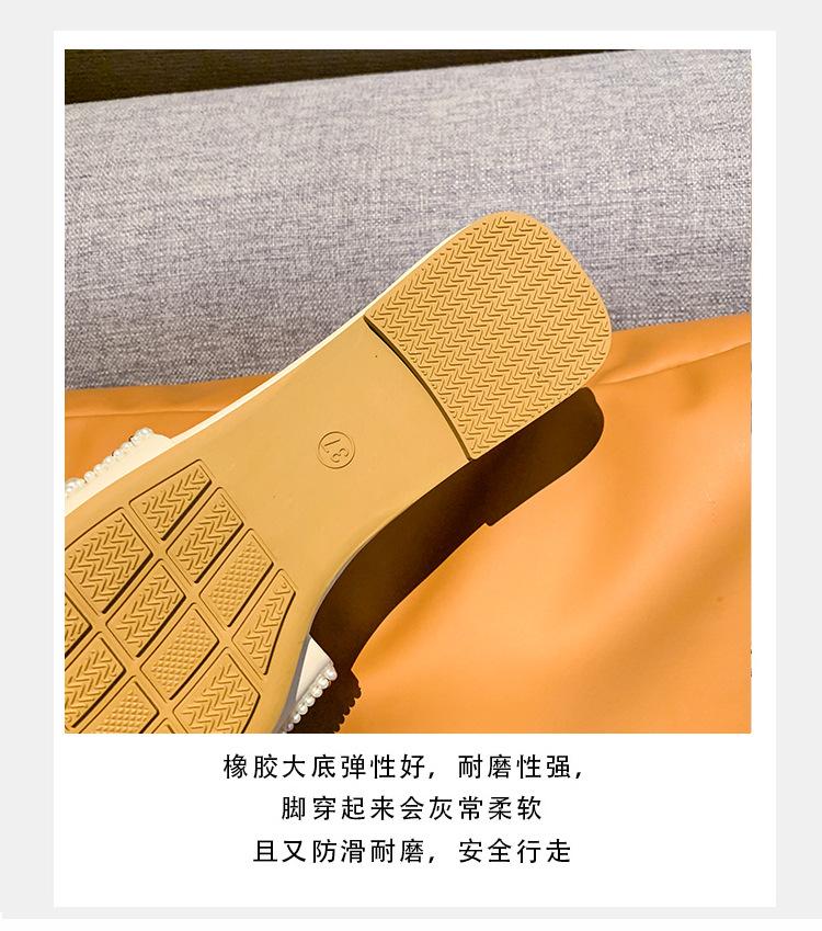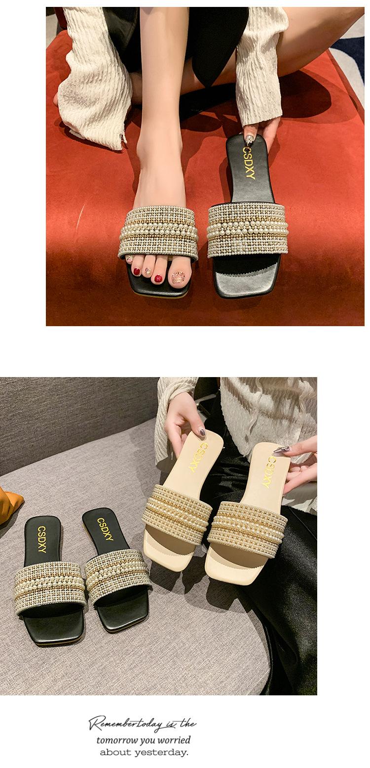 2025 Verano Nuevo Transfronterizo Talla Grande Perla Zapatillas Planas Conjunto de Mujer Punta Cuadrada Punta Abierta Diapositivas Sandalias de Moda